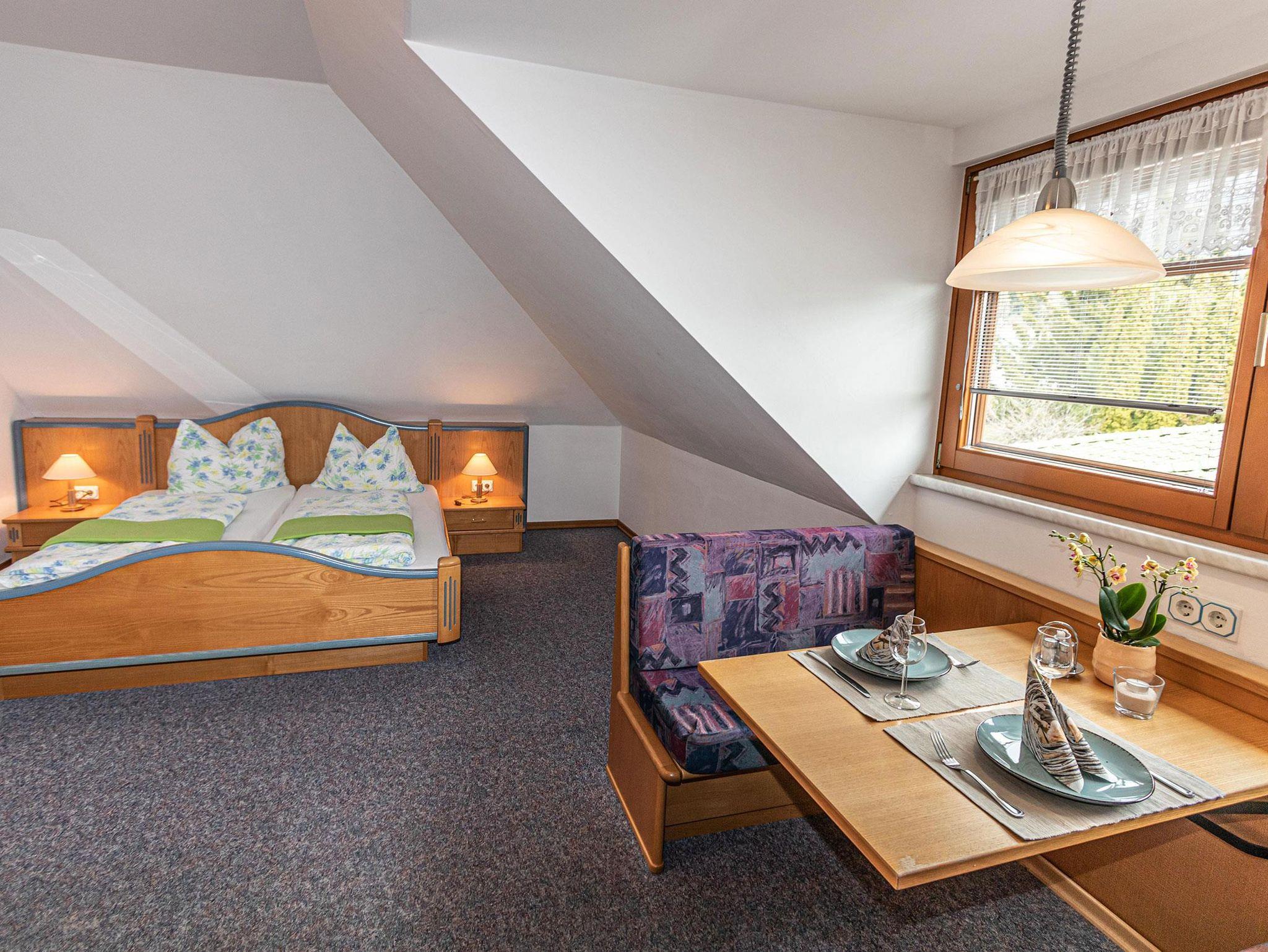 Appartement “Enzian” ca. 27 m2 Wohnung für zwei bis drei Personen im 2. Obergeschoss, 1 Wohn-Schlafraum, Kochgelegenheit, Nespressomaschine, Dusche und WC, SAT-TV, ostseitig, kein Balkon