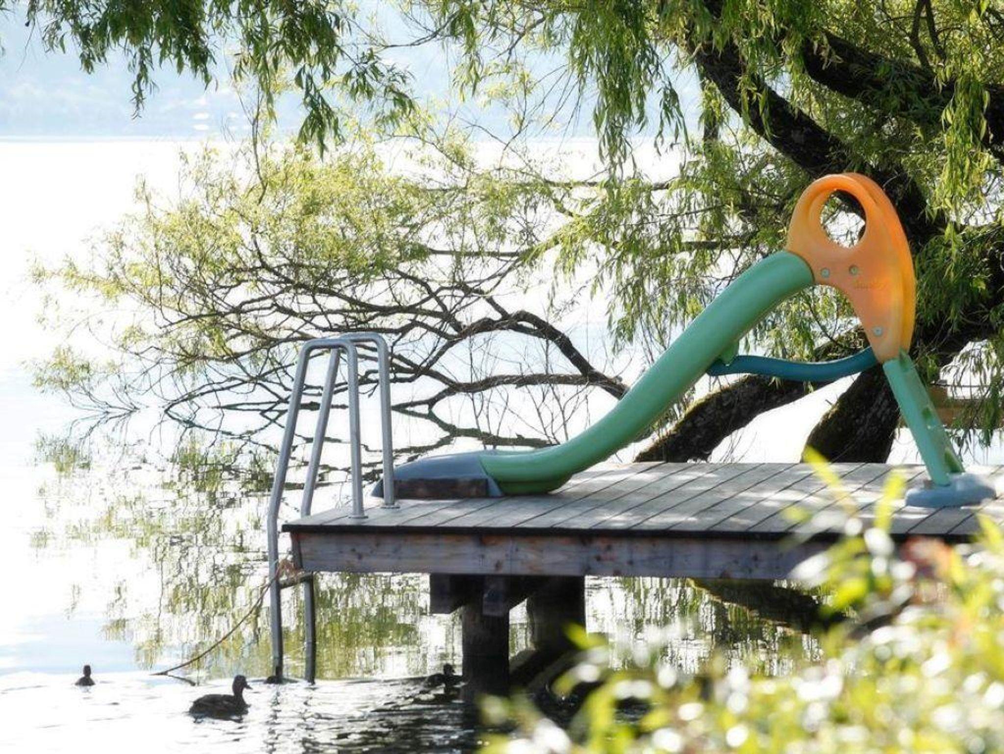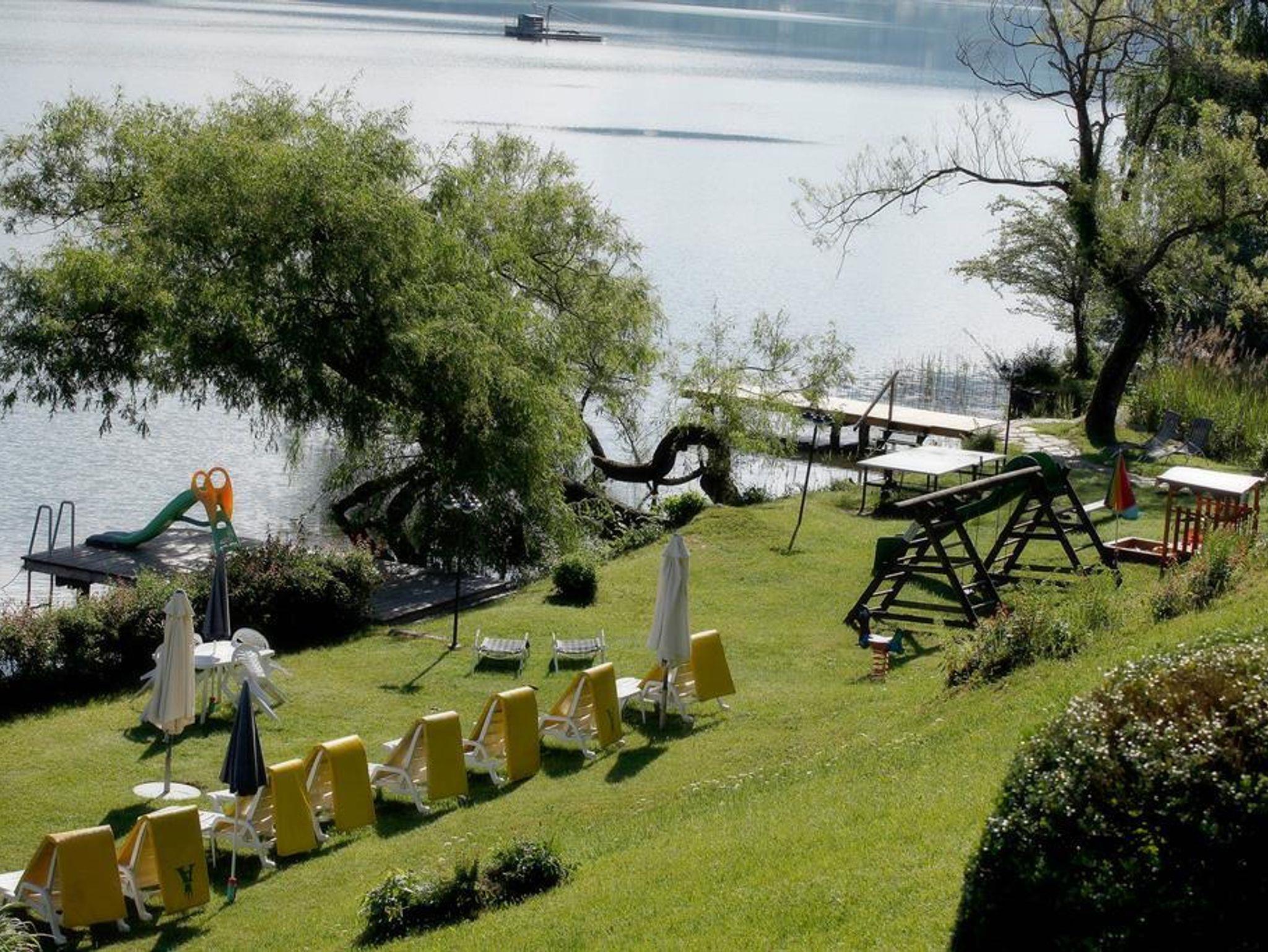 Strand: Sonnenliegen, Sonnenschirme, Gartenmöbel, Ruderboote, Tretboot, Tischtennis, Kinderspielplatz, kl. Wasserrutsche, Sprungbrett