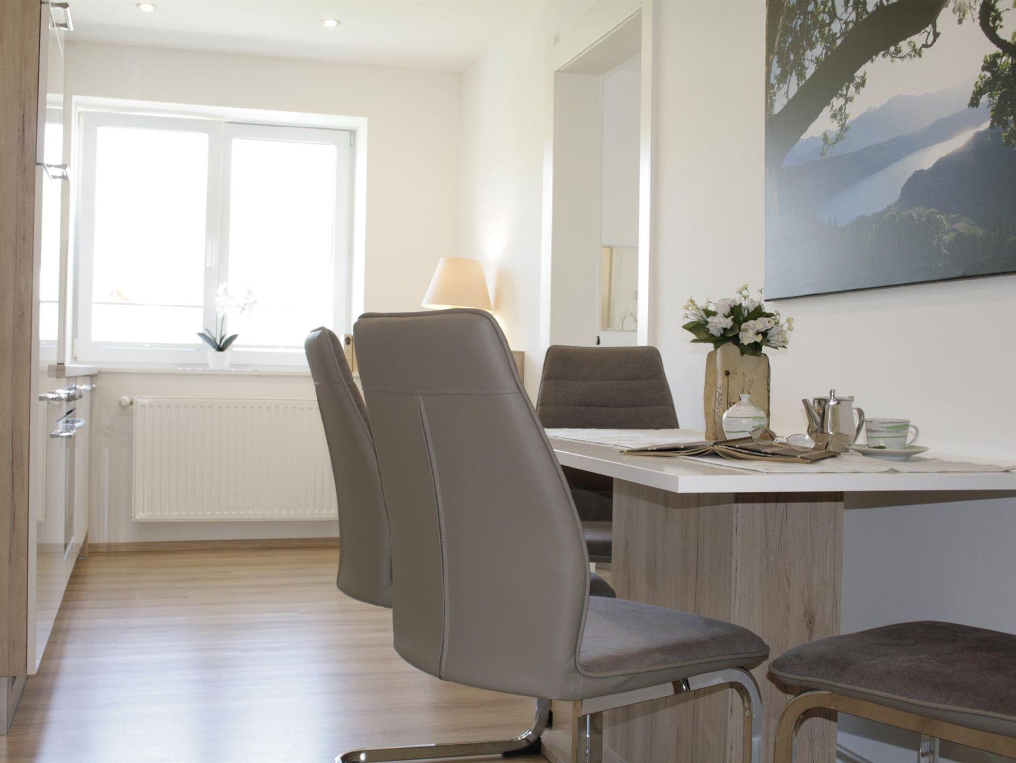 Ferienwohnung bestehend aus 2 Schlafzimmer( Boxspringbetten) mit jeweils Dusche/WC und TV/Sat, Küche voll ausgestattet(Geschirrspüler, Küchlschrank mit Gefrierfach, Backofen, Herd, Wasserkocher und Filterkaffeemaschine) und Sitzplatz, Wohnzimmer, Lesezimmer mit Essplatz, Balkon mit Garten und Goldeckblick