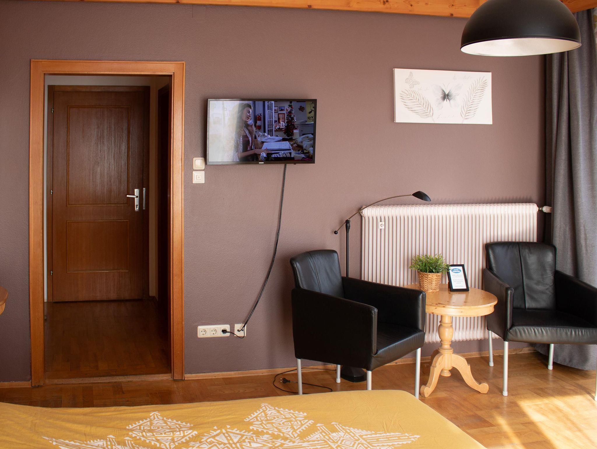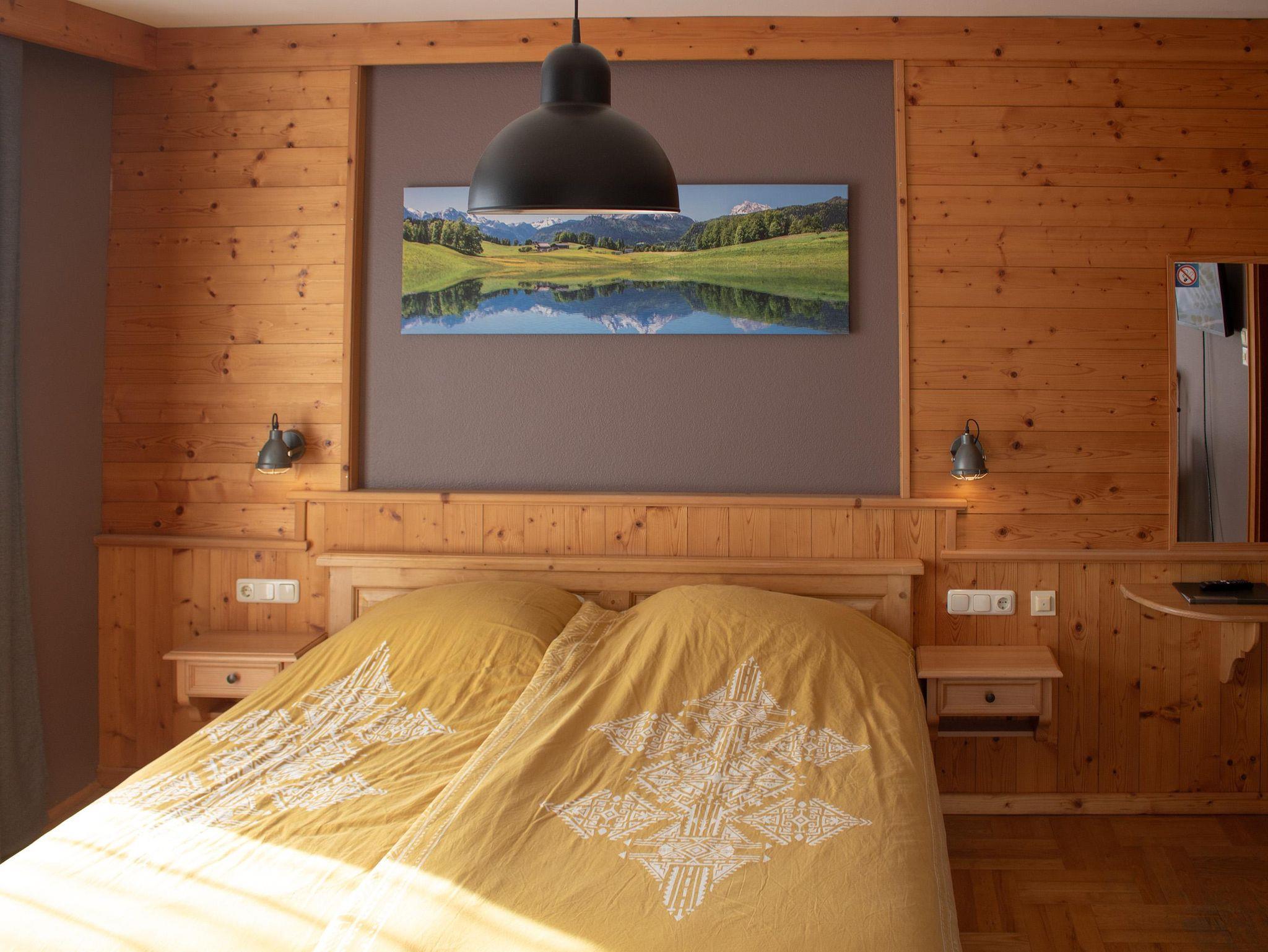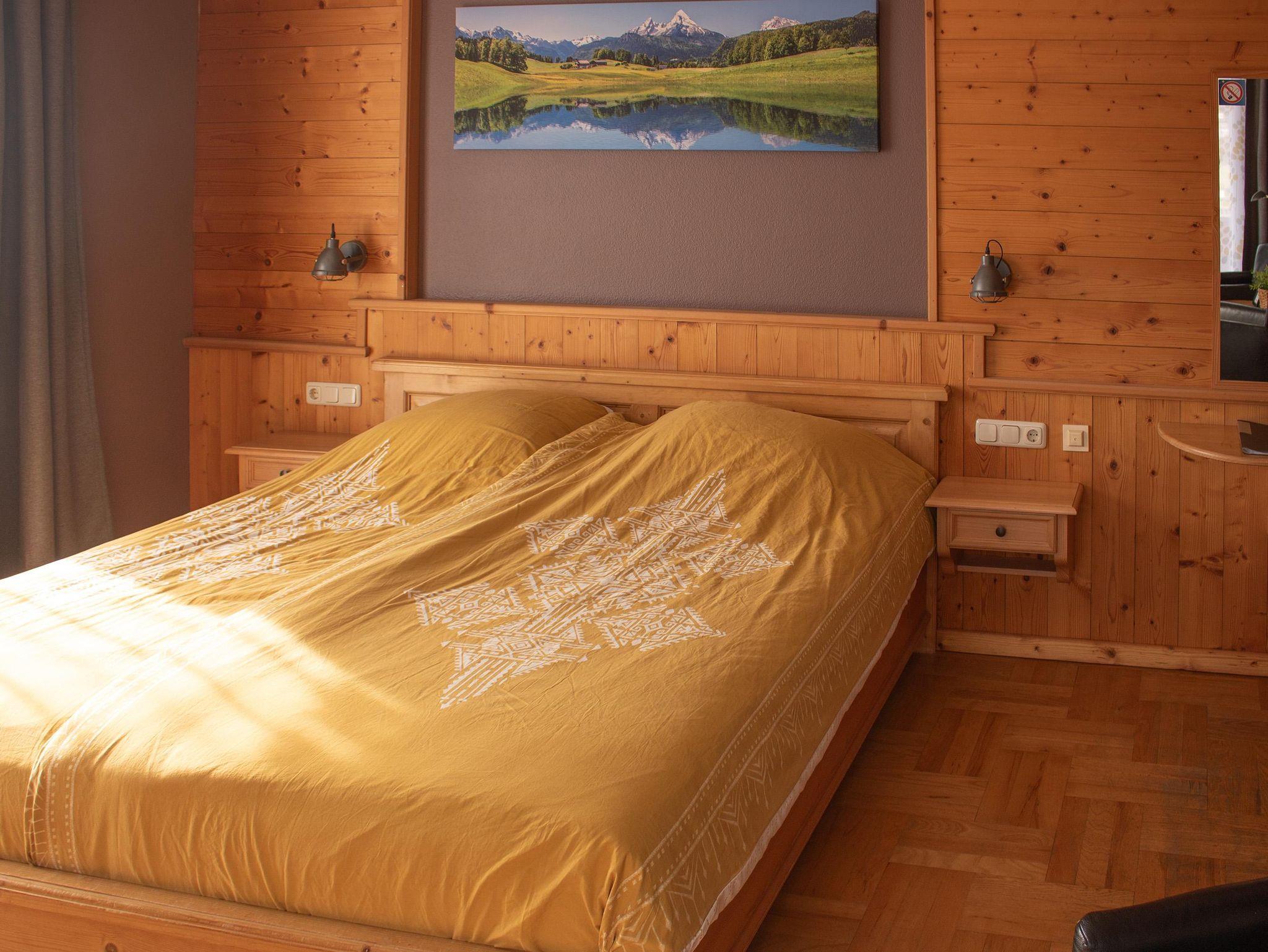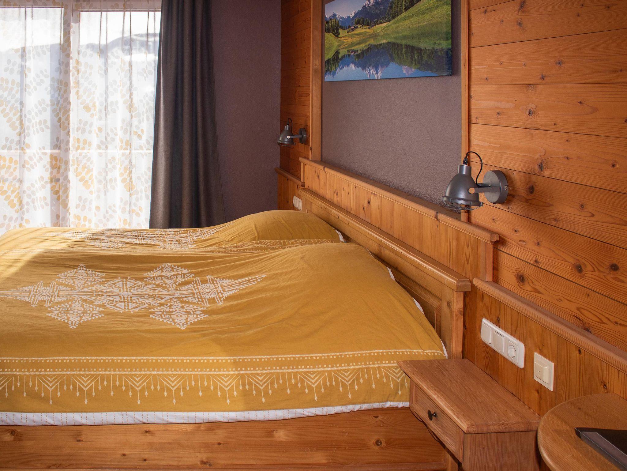 Großer Familienzimmer bestehend aus zwei Schlafzimmern und einem Badezimmer. Geeignet für bis zu 5 Personen. Mit großem Eckbalkon und herrlichem Blick auf die Burg Sommeregg und das Goldeck.
