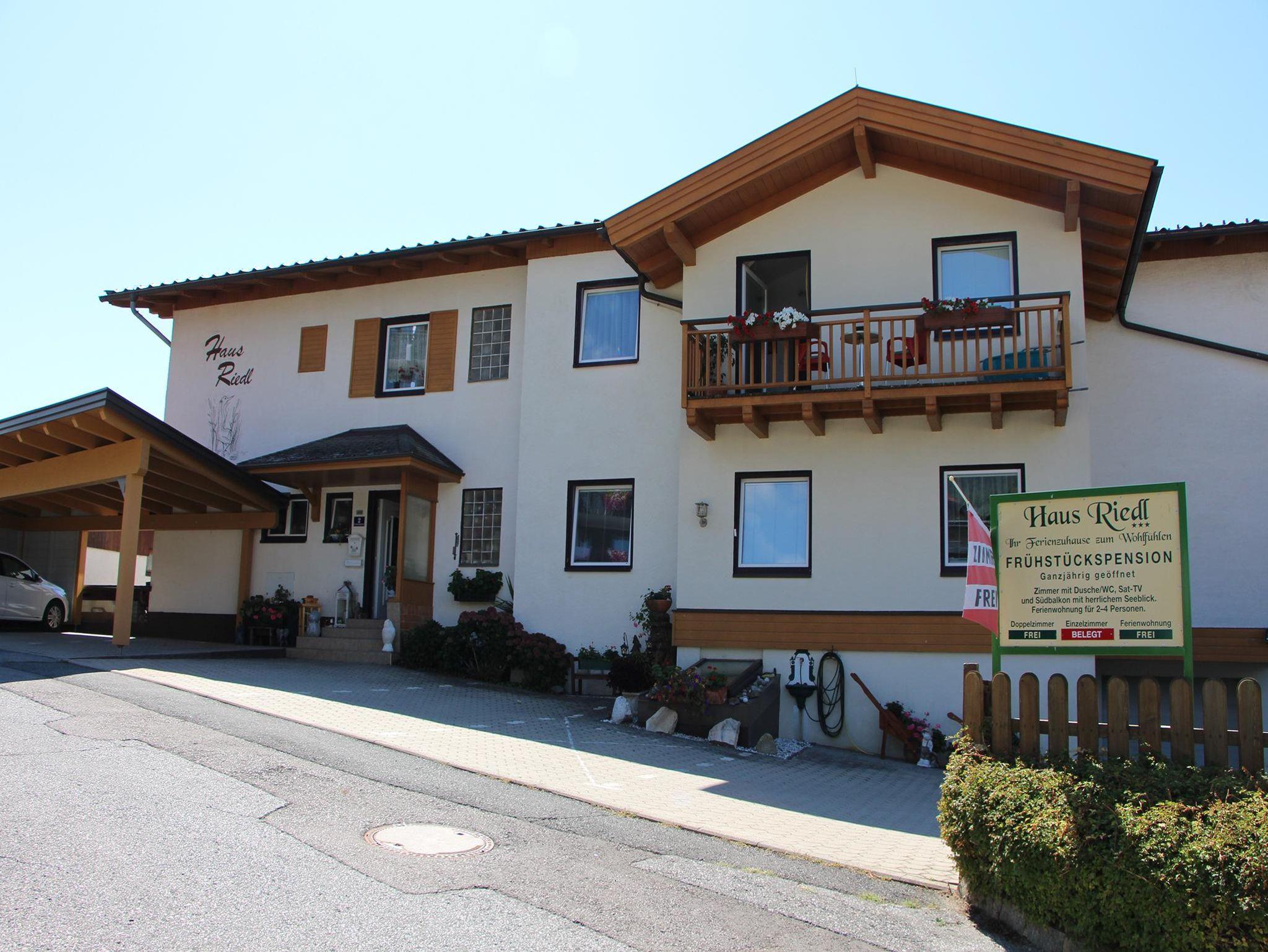 Frühstückspension Riedl *** Gepflegter Familienbetrieb in sehr ruhiger, sonniger Lage, auf einer kleinen Anhöhe mit herrlichem Blick über den Millstätter See. Reichhaltiges Frühstücksbuffet. Weiters bieten wir unseren Gästen: Sonnenterrasse, Liegewiese und einen gemütlichen Aufenthaltsraum. In ca. 5 Gehminuten erreicht man die Seepromenade und den Naturpark. Direkt vor dem Haus beginnen schöne Wanderwege in die umliegende Bergwelt.