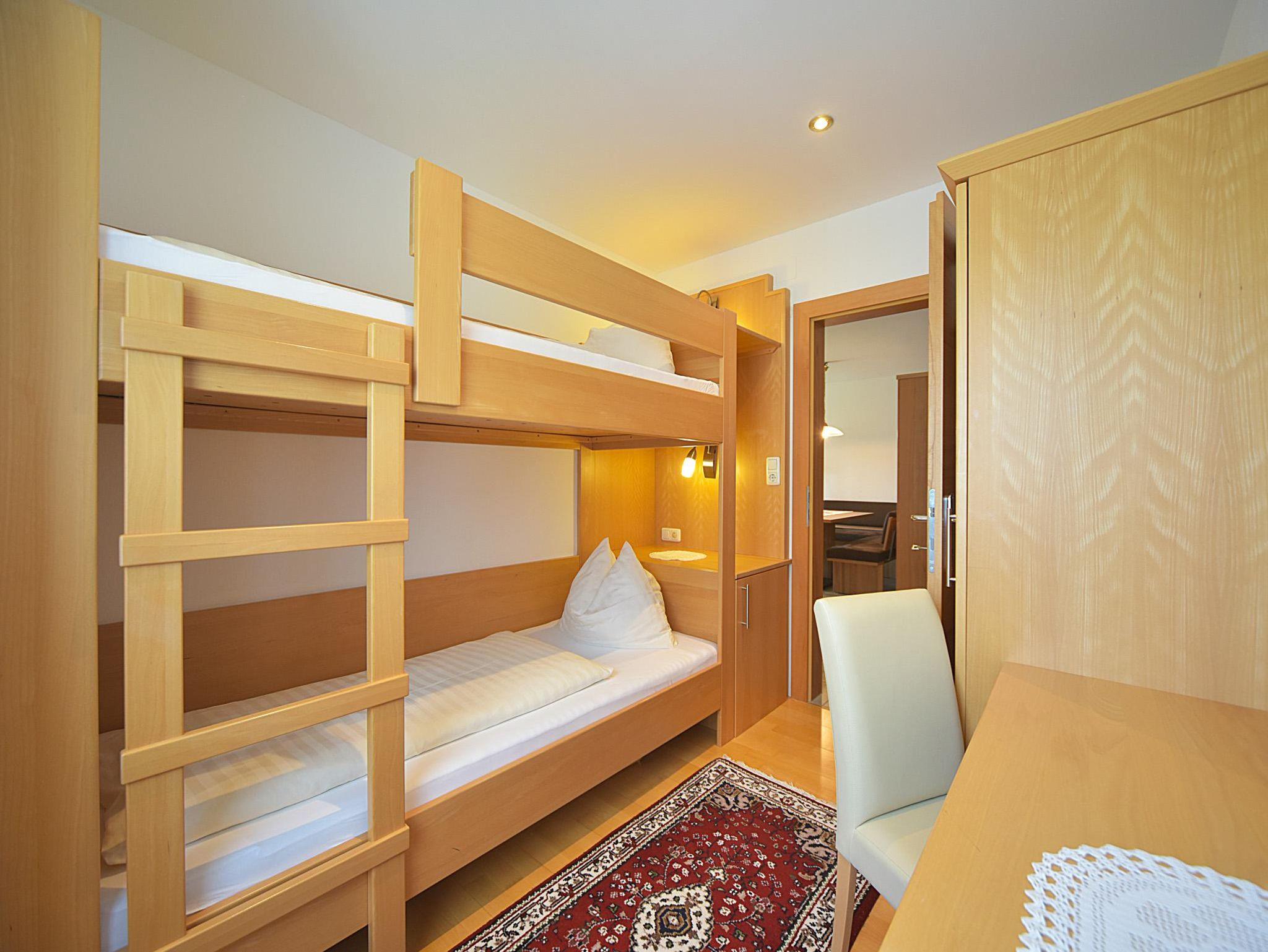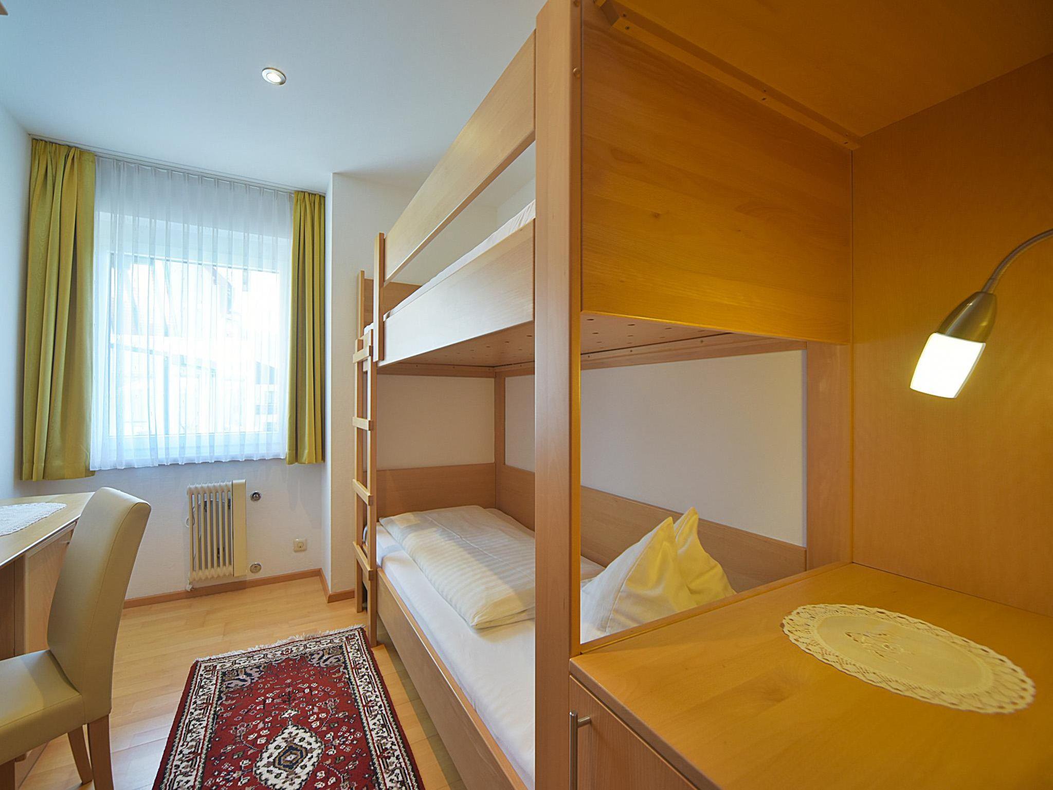2 Zimmer mit Doppelbett, 1 Zimmer mit Etagenbett, DU, WC, Südbalkon