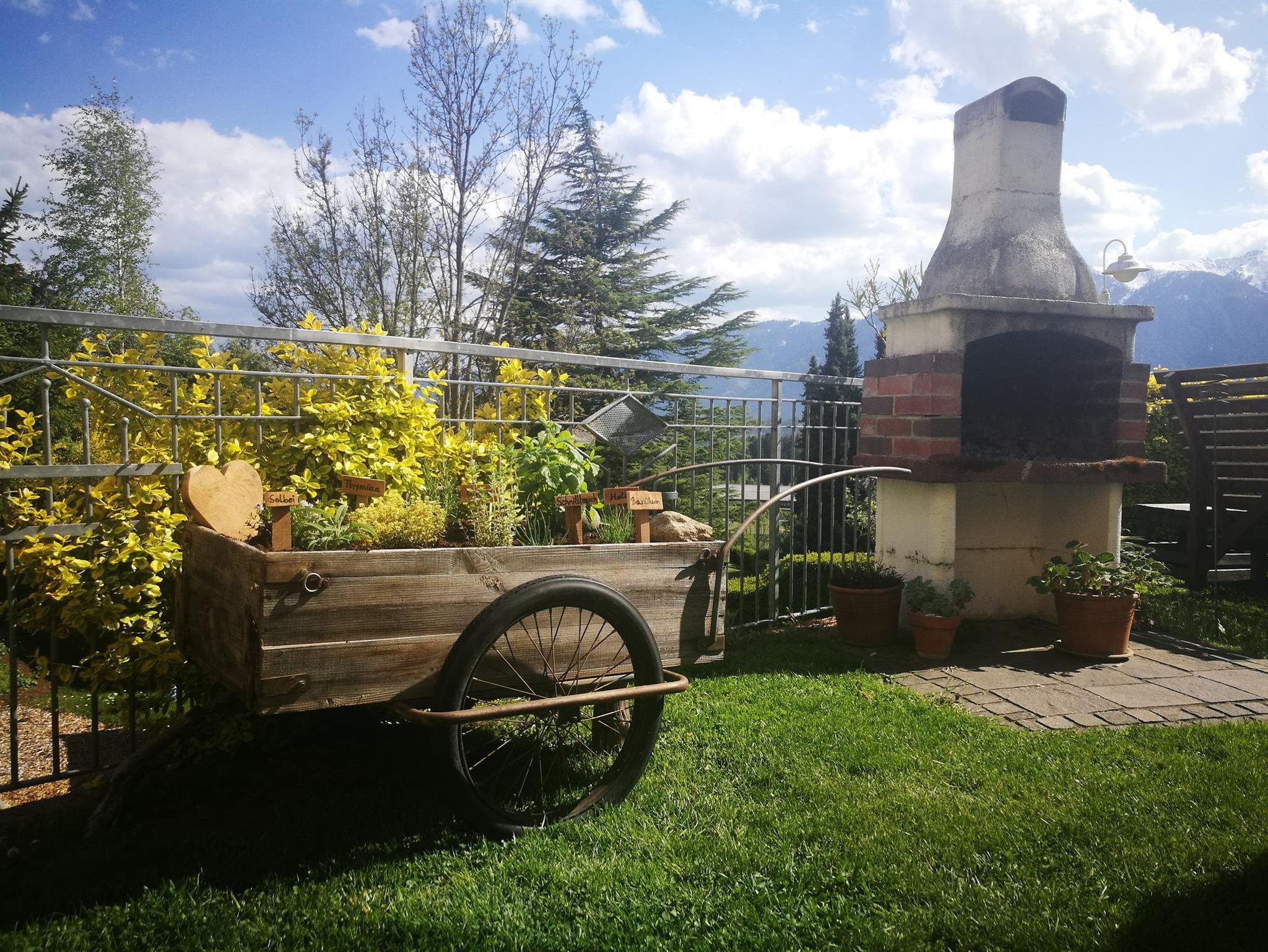 Auf der großen Terrasse befinden sich unser Lieblingsplatzl, das mobile Kräuterwagerl, die Millstätter See Liege und unser Grillkamin. Wenns schnell gehen soll können wir auf unseren großen Gasgriller ausweichen. Im Garten können Sie im Pavillon unter dem großen Kastanienbaum oder auf den Liegen entspannen und die Ruhe genießen.