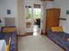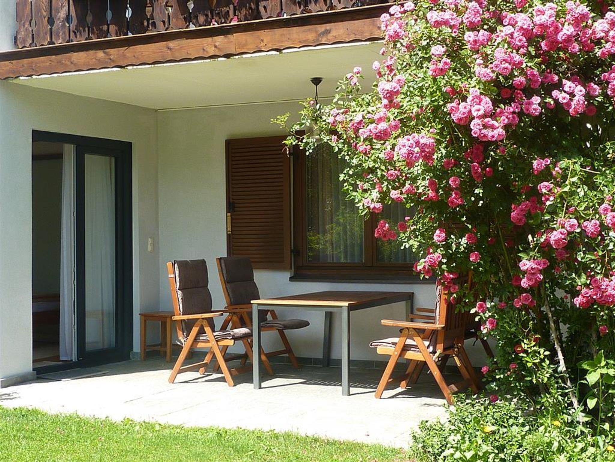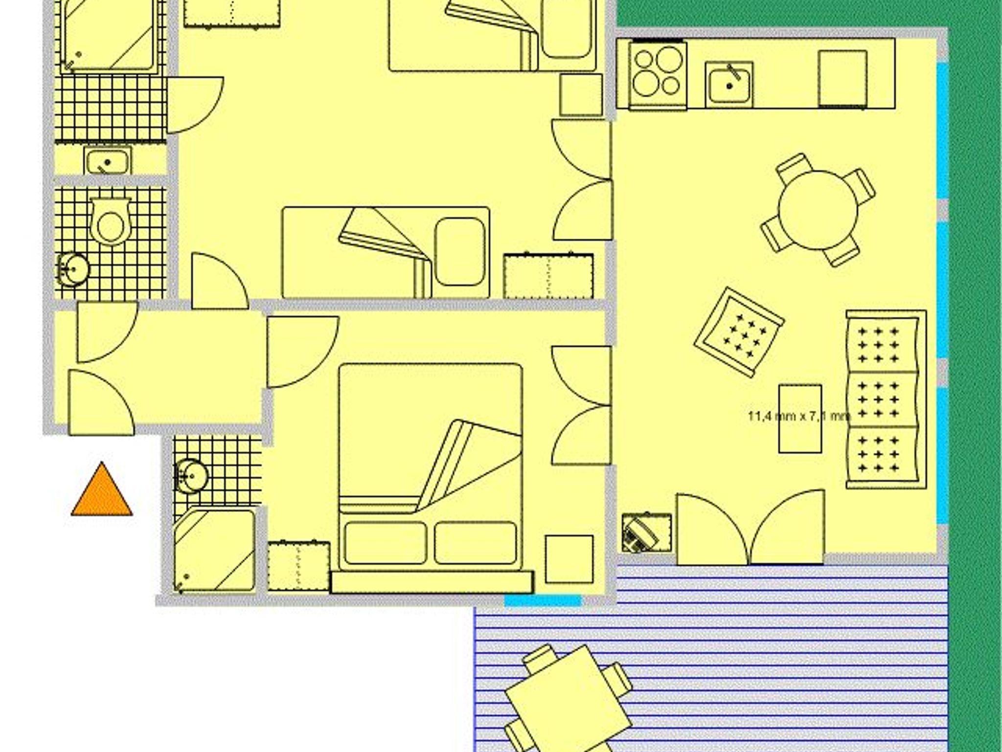 Die Wohnung (60 m²) besteht aus 2 Schlafzimmern mit je 1 Dusche, WC extra, einem schönen hellen Wohn-Essbereich mit komplett eingerichteter Küchenzeile und einem Vorraum. Auf der teilweise überdachten Terrasse mit Gartenmöbeln und Sonnenschirm können Sie mit Blick auf den weitläufigen Garten Ihr Frühstück genießen.