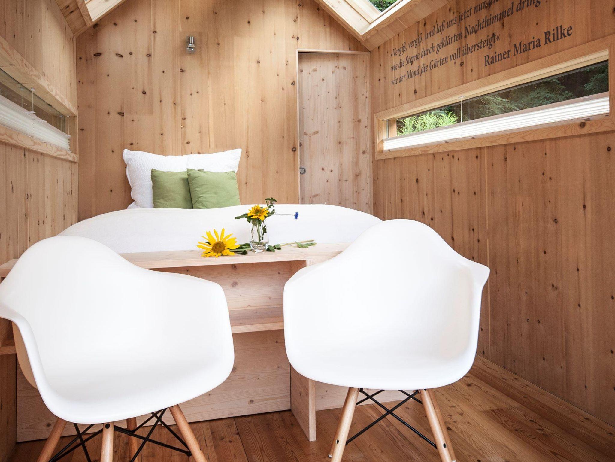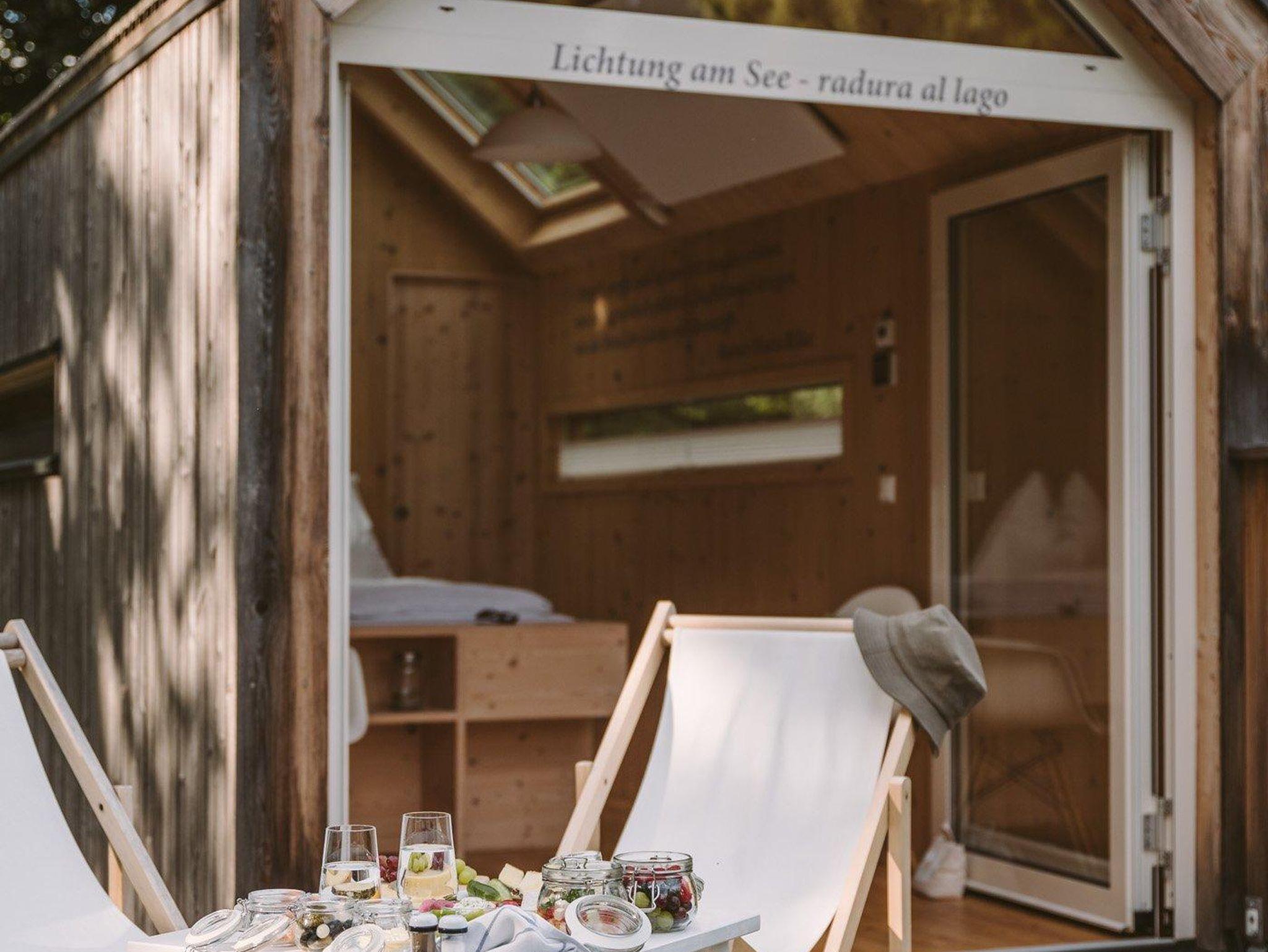 Das refugium am see ist der ultimative Rückzugsort für zwei Personen. Es liegt direkt am See, inmitten einer naturbelassenen Wiese. Obwohl so minimalistisch muss man auf den Komfort nicht verzichten. Im refugium gibt es Warmwasser und eine Warmwasser-Außendusche sowie einen Kühlschrank auf der Terrasse. Nespressomaschine und Wasserkocher gehören auch zur Ausstattung. Sonnenschirm und Liegen befinden sich ebenso beim refugium.