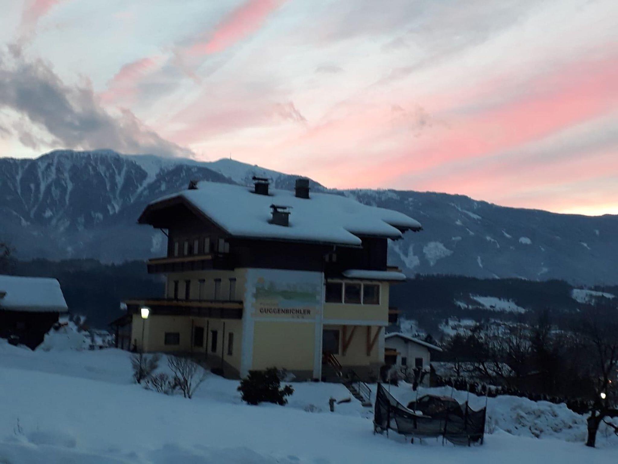 Wenn man morgens auf den Balkon geht, hat man die Chance auf einen wunderschönen Sonnenaufgang über der Millstätter Alpe.