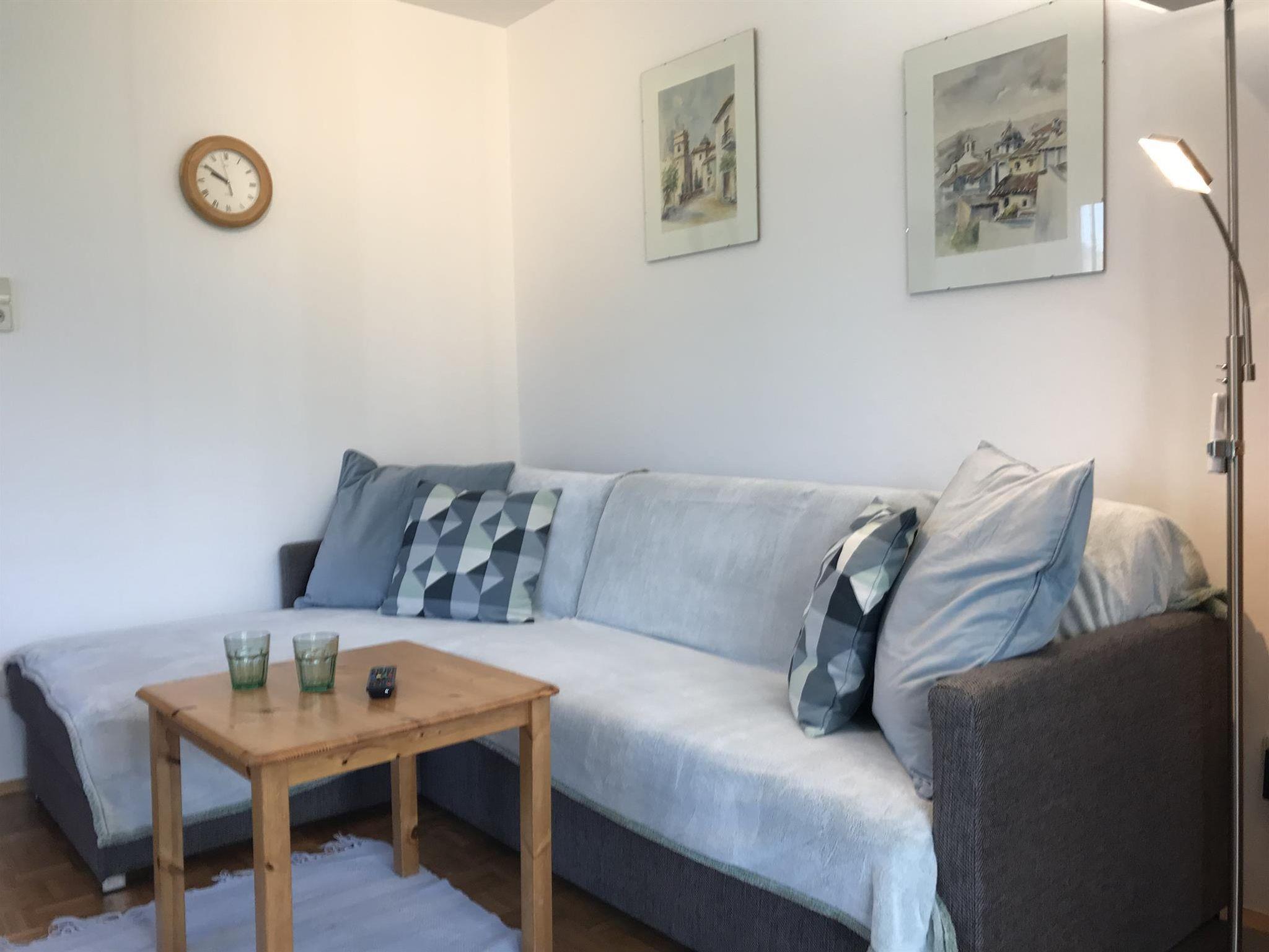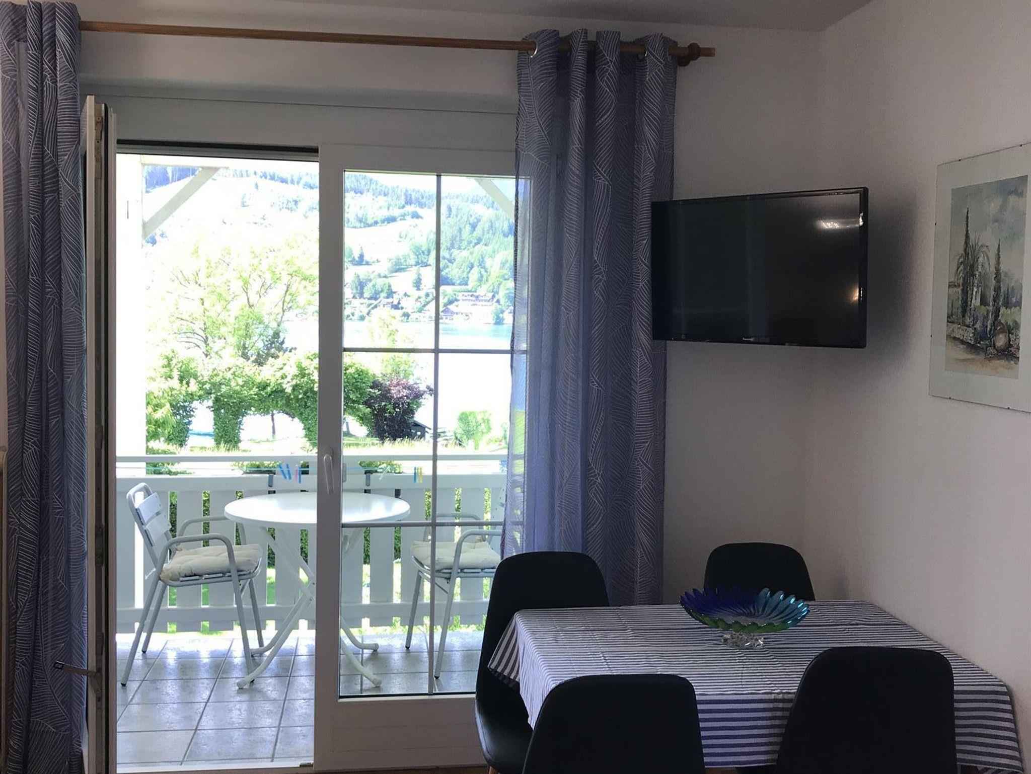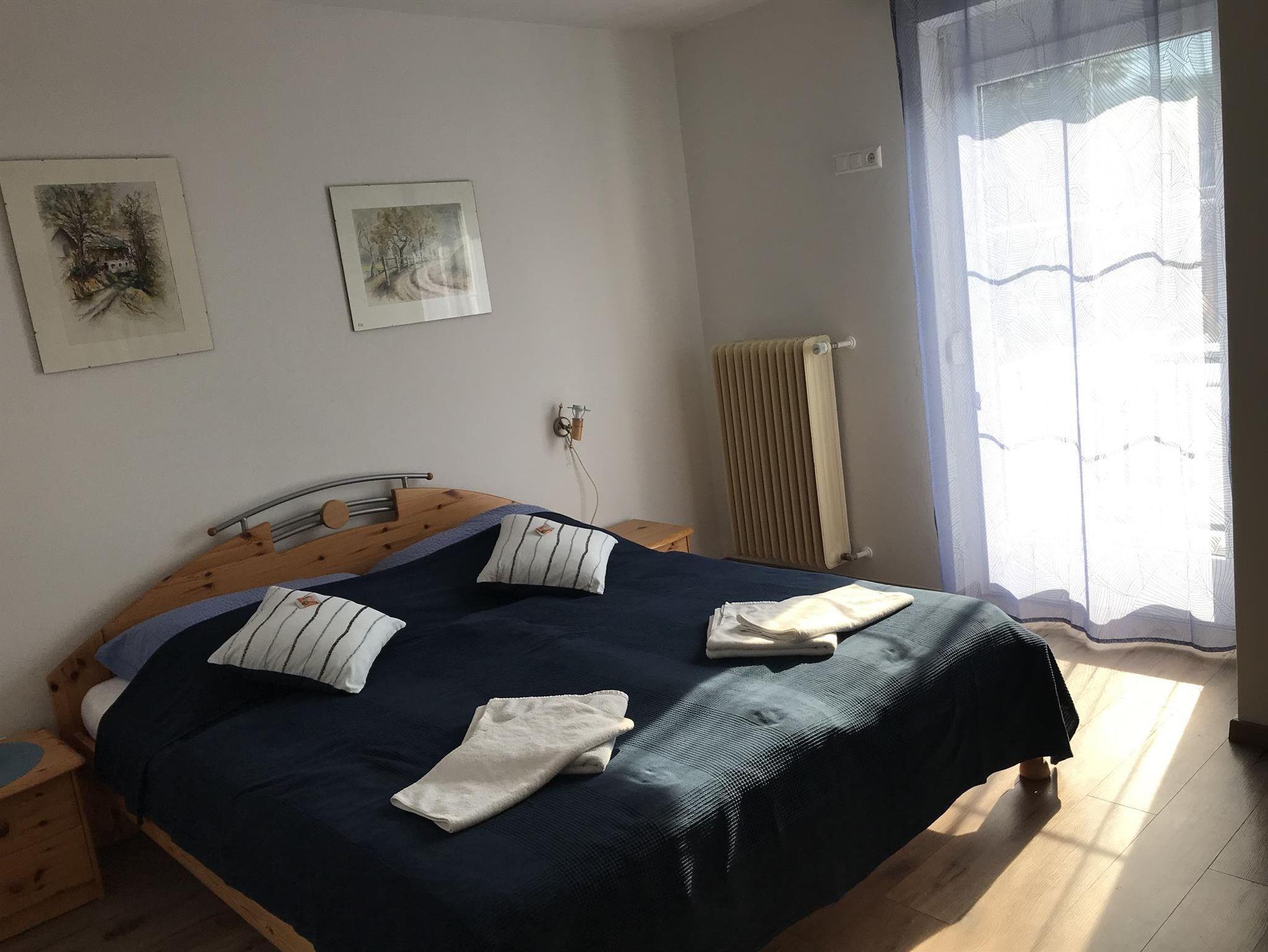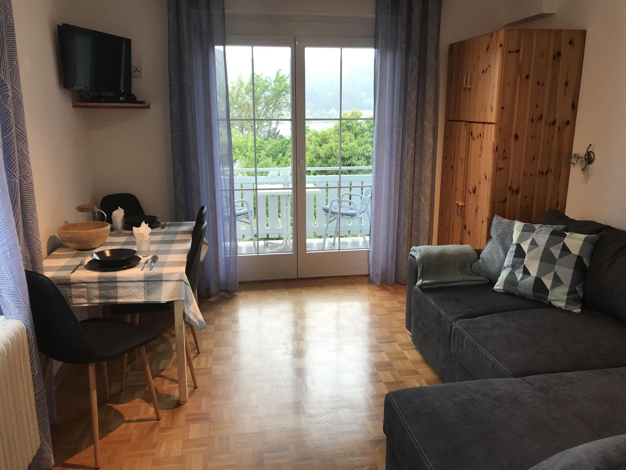 Unsere Appartements im ersten Stock verfügt über ein Schlafzimmer (Doppelbett), einen Wohn-/Schlafraum mit ausziehbarer Doppelcouch, DU/WC, Kochnische, Sat-TV, WLAN und 2 Balkone mit herrlichem Blick über den See.