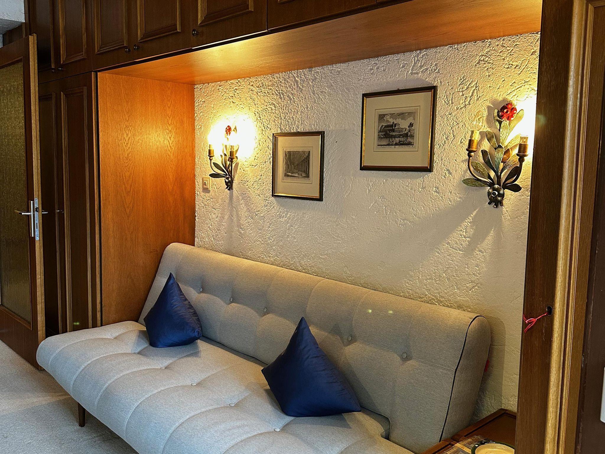 Das etwa 35 m² große Appartement ist ideal für bis zu 2 Personen und bietet einen kombinierten Wohn- und Schlafbereich, eine Küchenzeile, ein Badezimmer und einen Balkon.