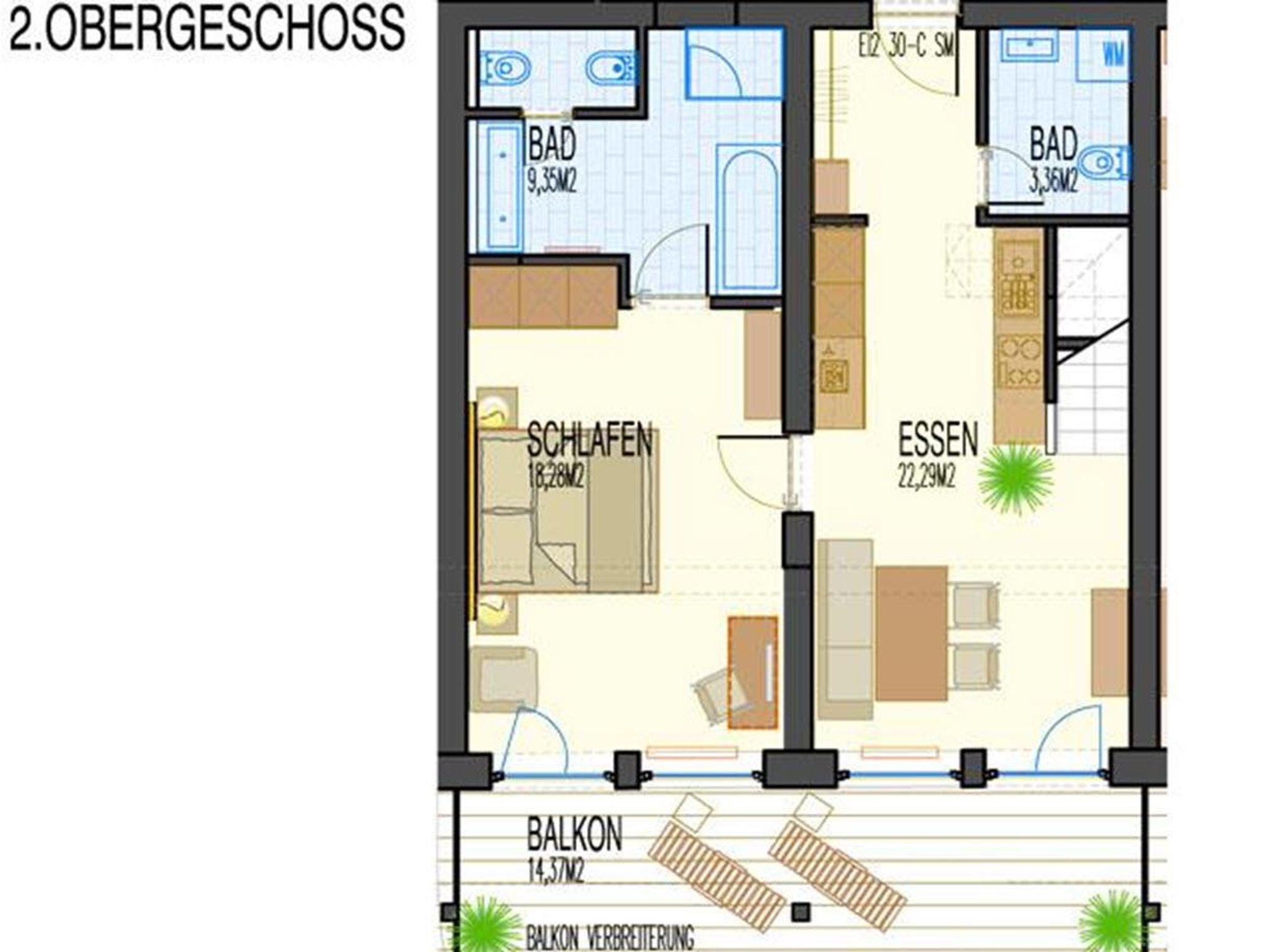 *ca. 115m² *1-6 Personen *Wohnung über 2 Etagen unten: *1 Schlafzimmer *1 Küche mit Essbereich *1 Badezimmer mit Doppelwaschtisch, Badewanne, Dusche und separatem WC/Bidet *1 WC extra *großzügiger Balkon oben: *1 Schlafzimmer mit großem Wohnbereich *1 Badezimmer mit Badewanne und WC *ein weiterer großzügiger Balkon