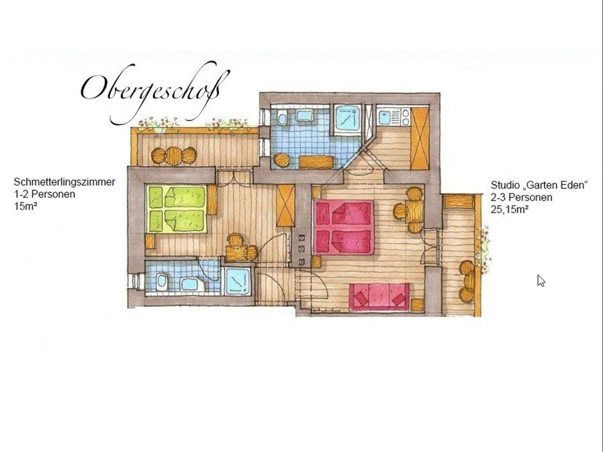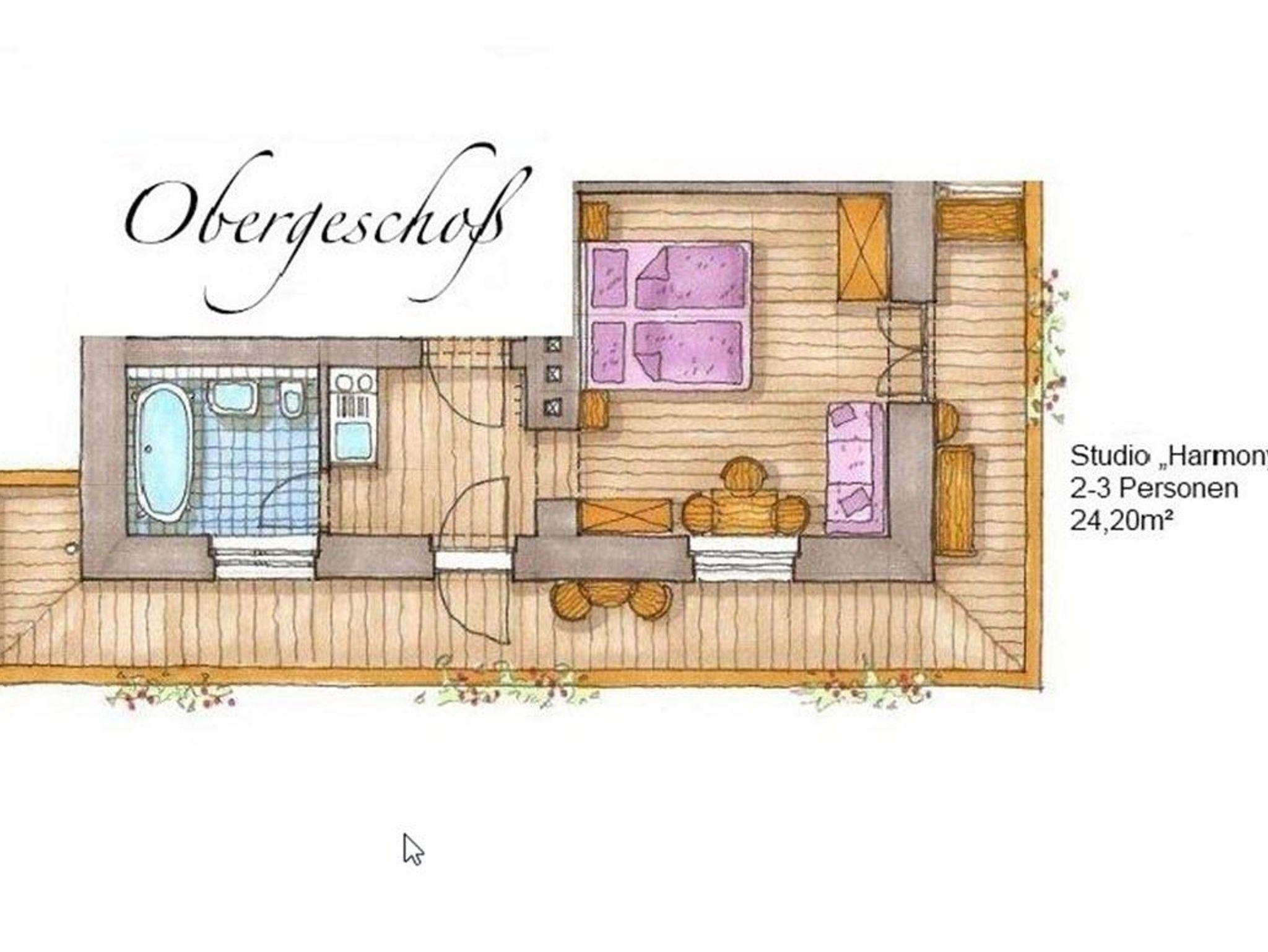 Hannas Alpengruss, Appartement, Wohn-Schlafraum, Dusche/WC