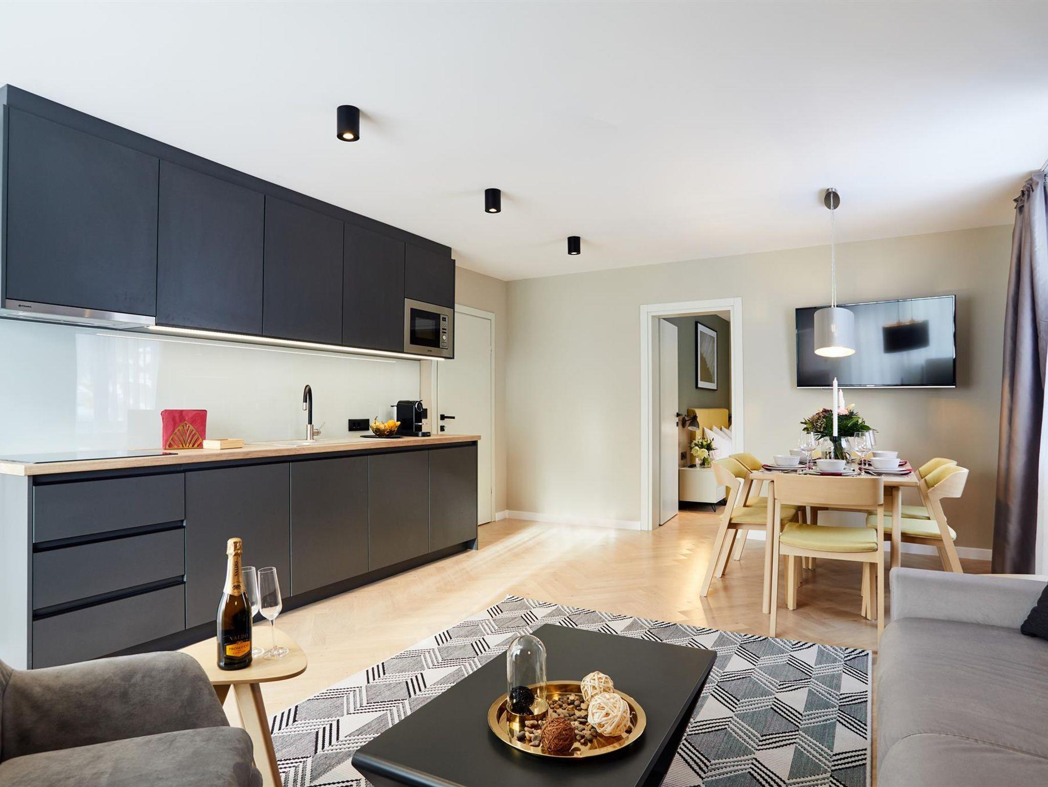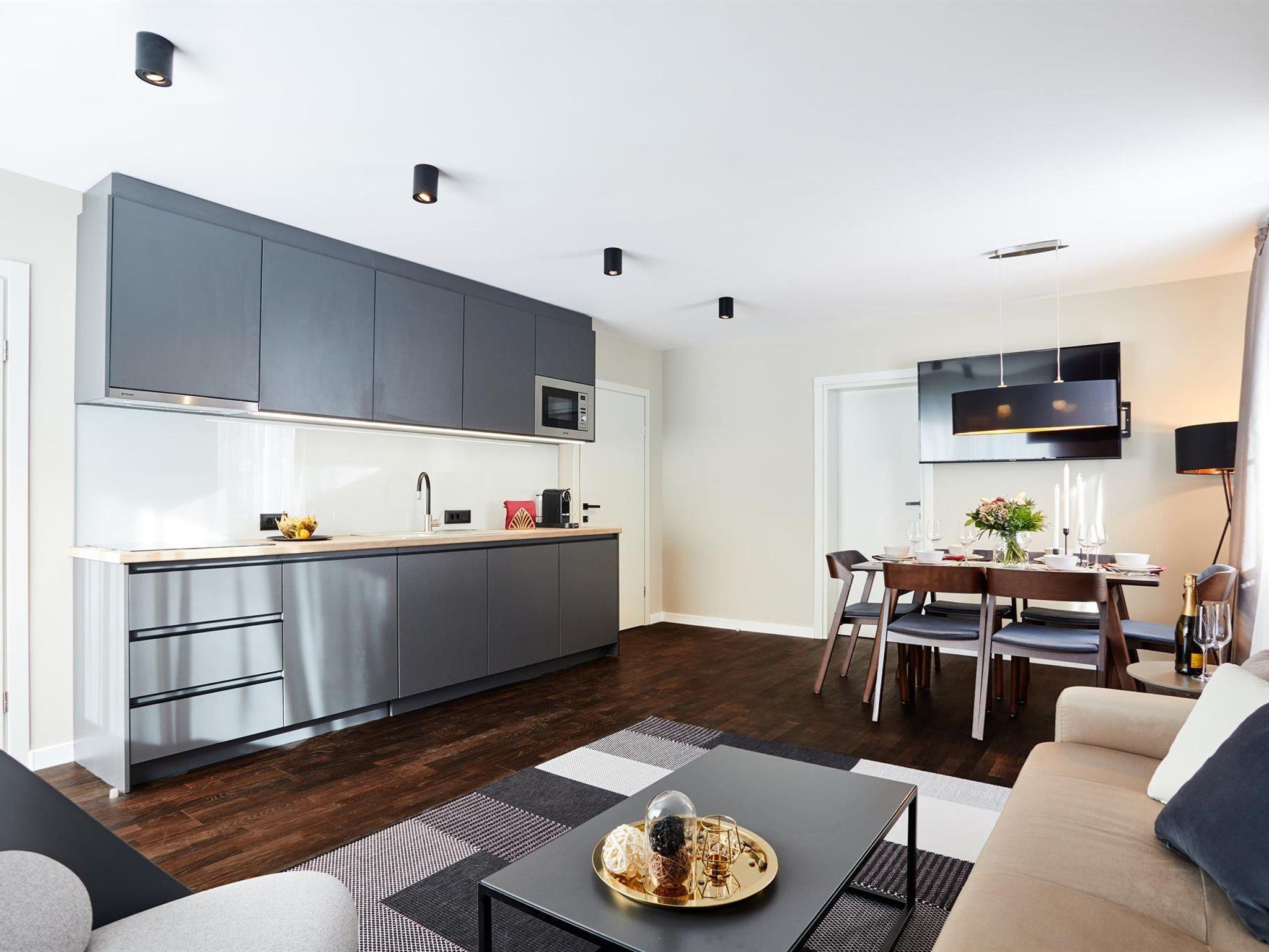Im Apartment Water verfließen modernes, individuelles Design mit höchstem Komfort. Der direkte Zugang zum Garten lädt zum verweilen an sonnigen Tagen ein.