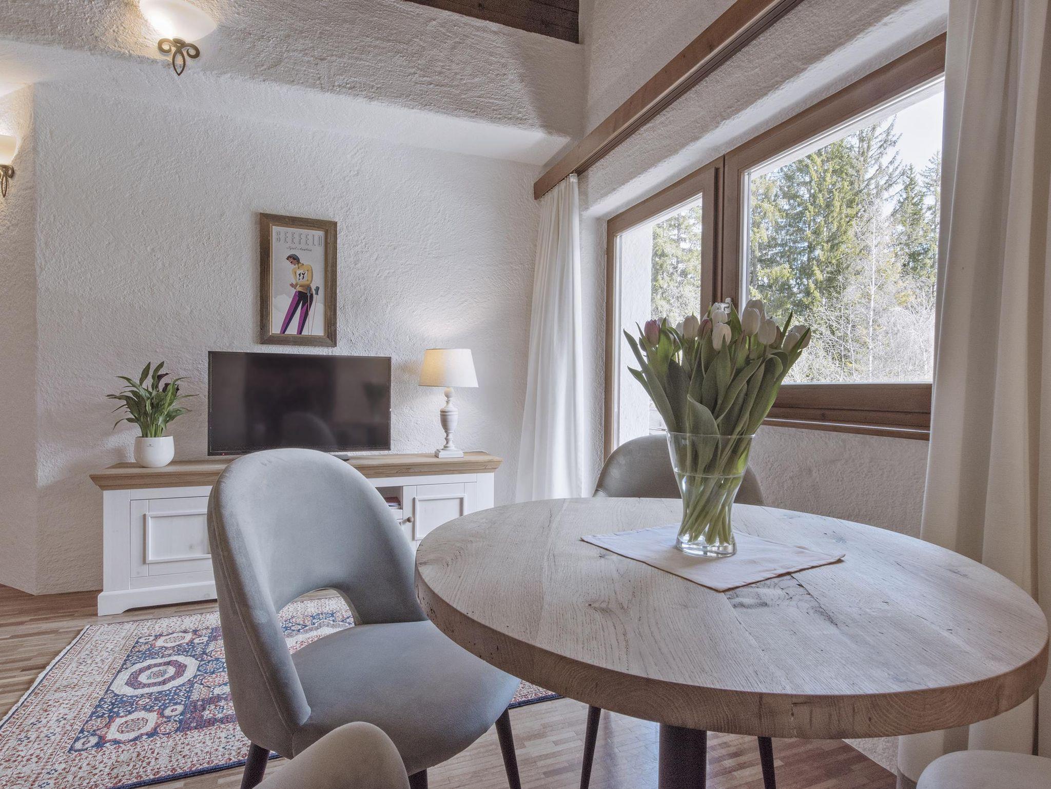 Das Haus und alle Ferienwohnungen liegen in angenehmer Ruhe inmitten der Natur, direkt an der beliebten Seefelder Seepromenade und trotzdem sind es nur ca. 8 Gehminuten bis ins Ortszentrum oder zu den Liften des Gschwandtkopfskigebietes.