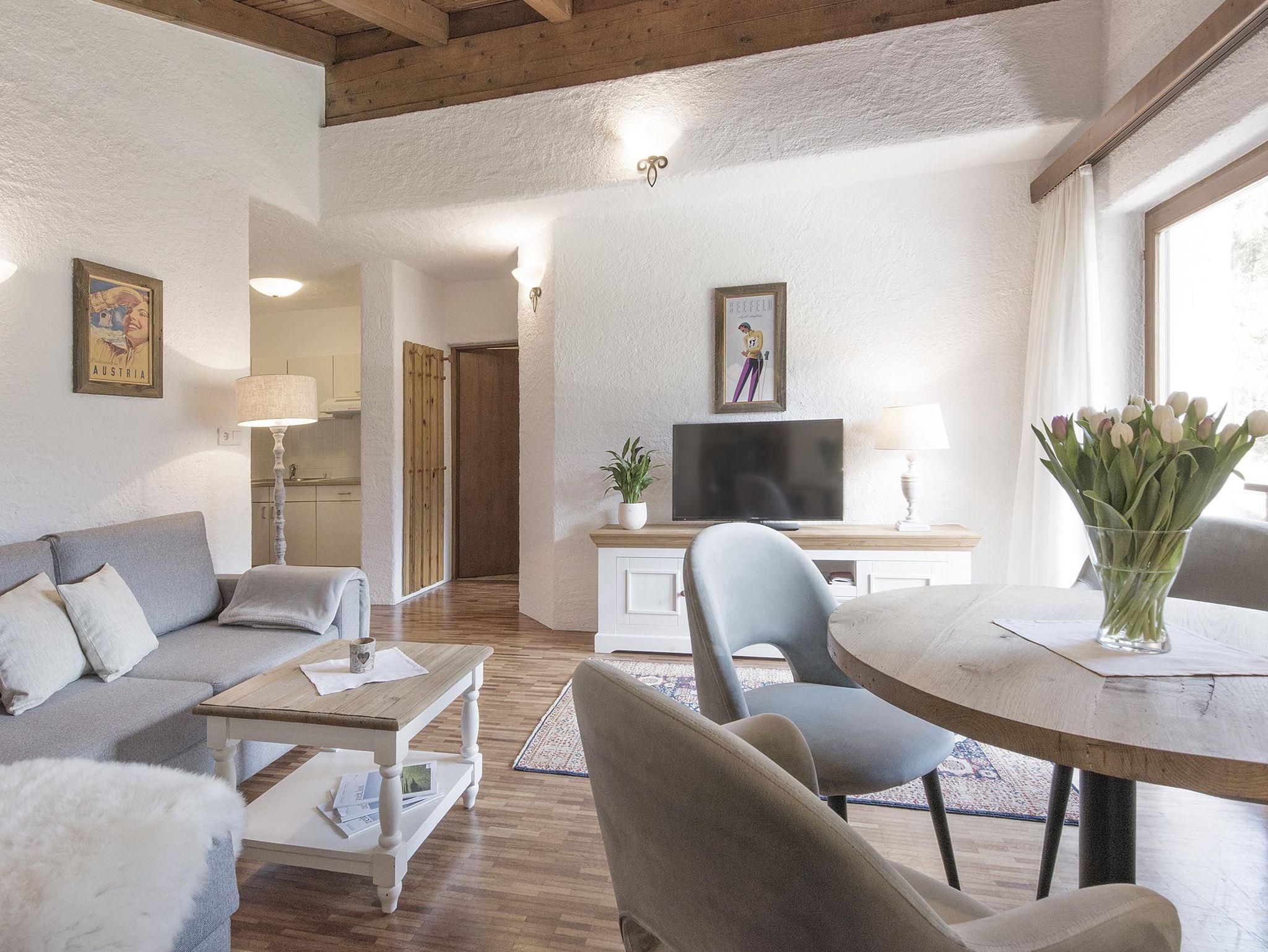 Schöne 2-Raum-Ferienwohnung für 2-3 Personen, sehr gemütlich und komfortabel eingerichtet. Voll ausgestattete Küche mit Kochutensilien, Bettwäsche, Bade- Hand- und Geschirrtücher, Filterkaffeemaschine, Haarföhn, Kabel-TV, TV-Programm, Radio, gratis W-LAN. Fußboden aus schönem Holzparkett, sichtbarer Holzdachstuhl. Alle Appartements sind ruhig gelegen mit Balkon oder Terrasse mit faszinierendem Seeblick oder idyllischem Garten- und Waldblick. Mehr Informationen auf www.appartement-tirol.at