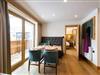Familien Appartement Wohnraum mit Küche, Essplatz, 2 Schlafzimmer, 2 Bäder mit Dusche, WC separat, Flat TV, Balkon