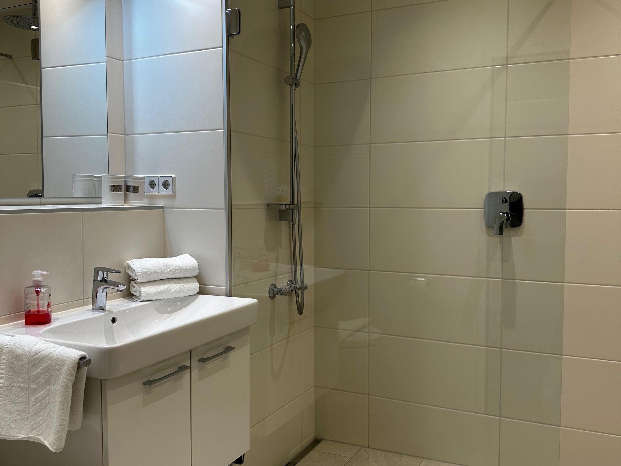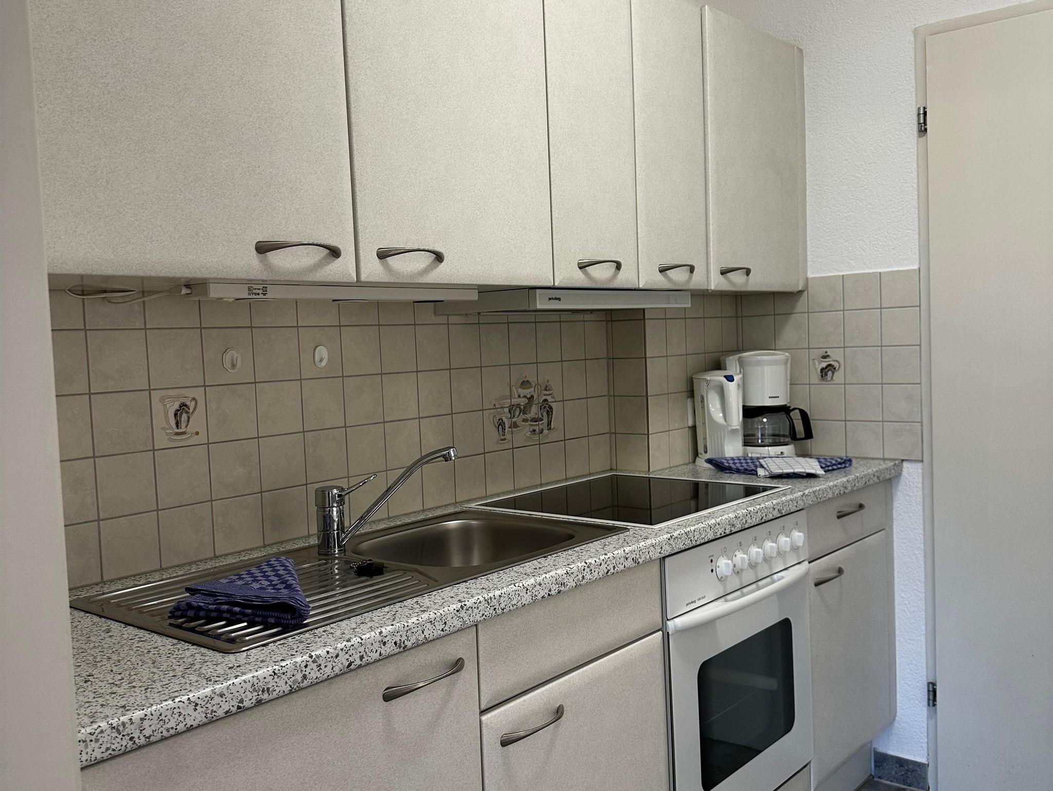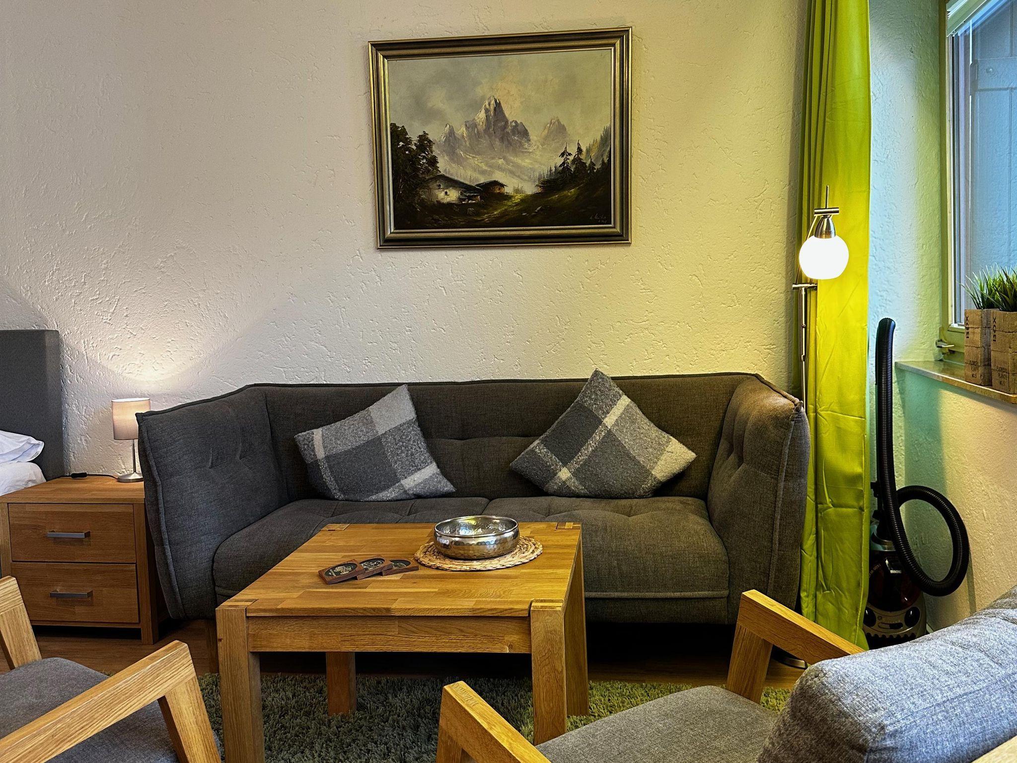 Das etwa 35 m² große Appartement ist ideal für bis zu 2 Personen und bietet einen kombinierten Wohn- und Schlafbereich, eine Küchenzeile, ein Badezimmer und einen Balkon.