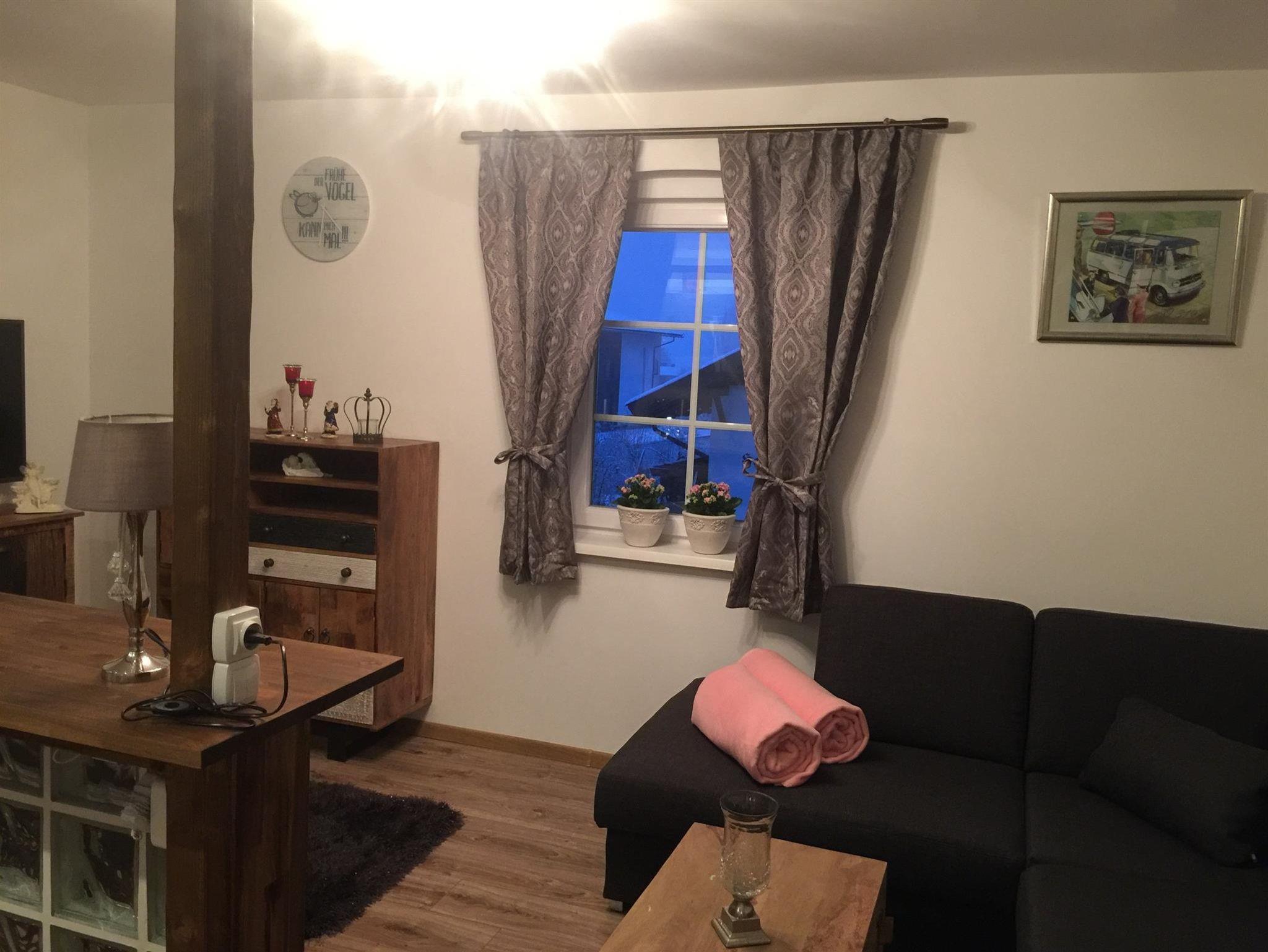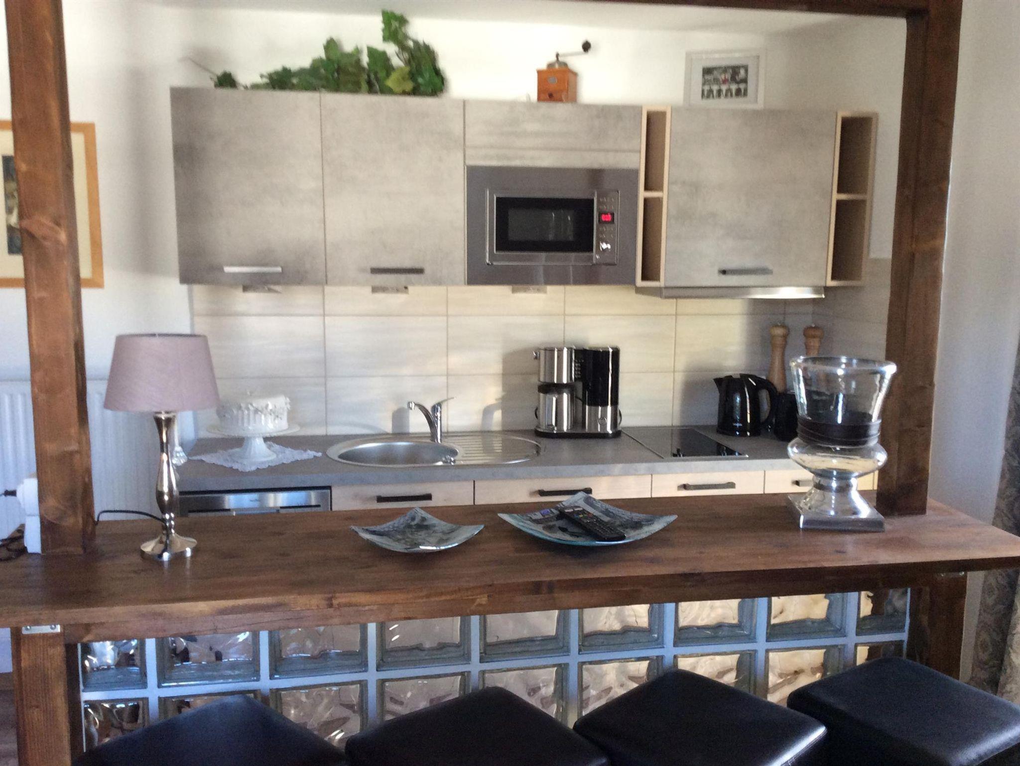 Appartement II: ca. 60 m² mit überdachtem Balkon, Wohnküche mit Theke und komfortabler ausziehbarer Schlafcouch, separates Schlafzimmer mit Zugang ins Badezimmer. Haustiere dürfen nur nach Rücksprache mitgebracht werden, hierfür wird ein Aufschlag von € 15,- pro Tag verrechnet.