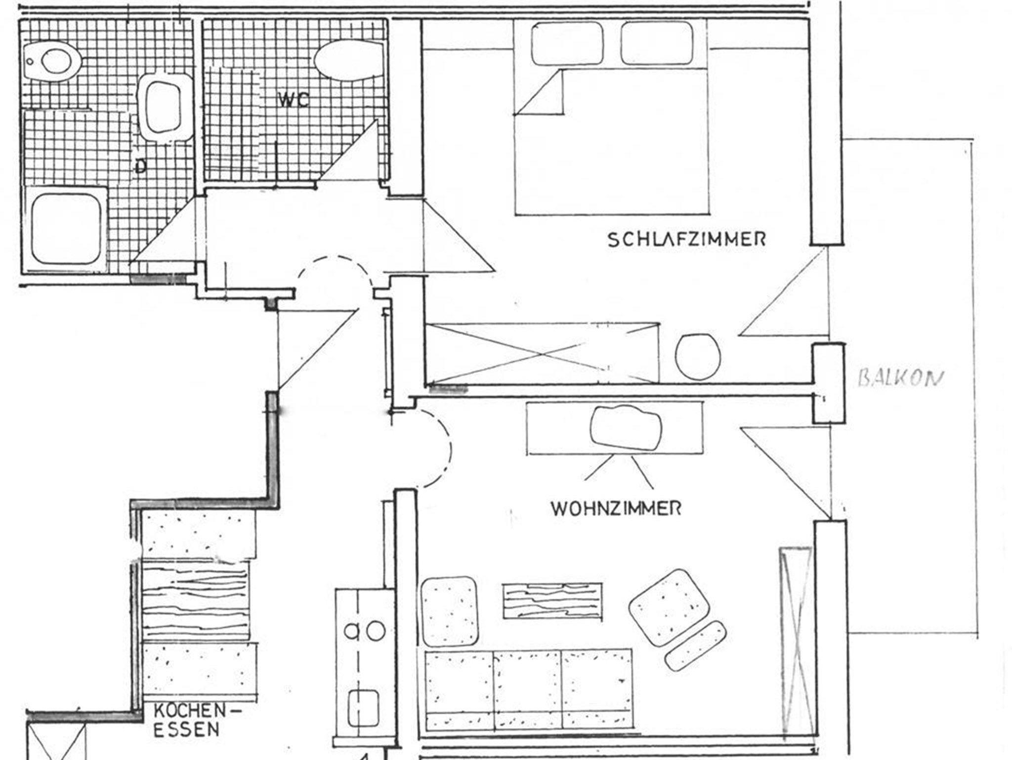 2-Zimmerapp., D/WC, Balkon, Küche mit Essecke, gratis WIFI