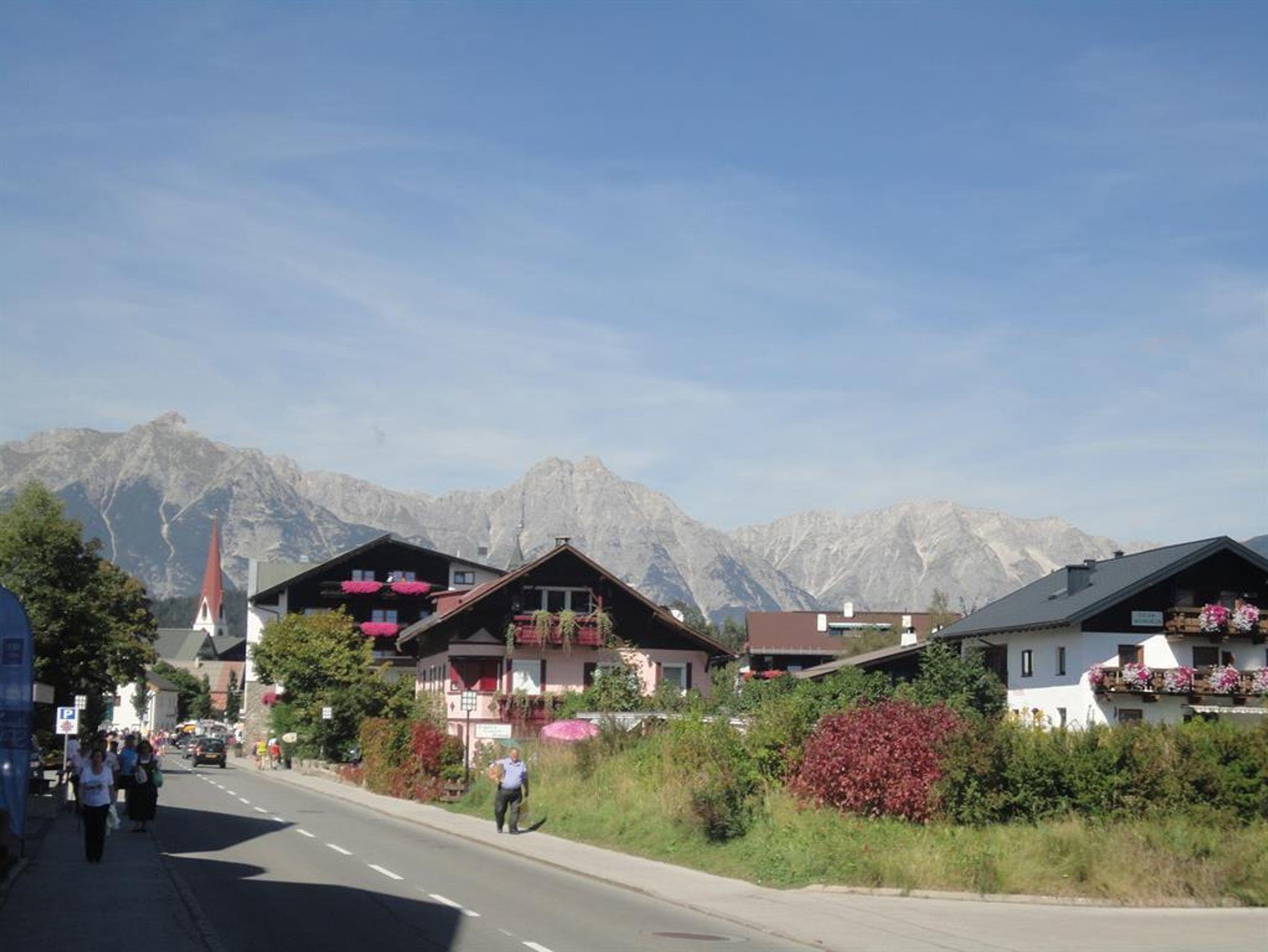 • einen Balkon mit Blick auf das Kalkkögelgebirge