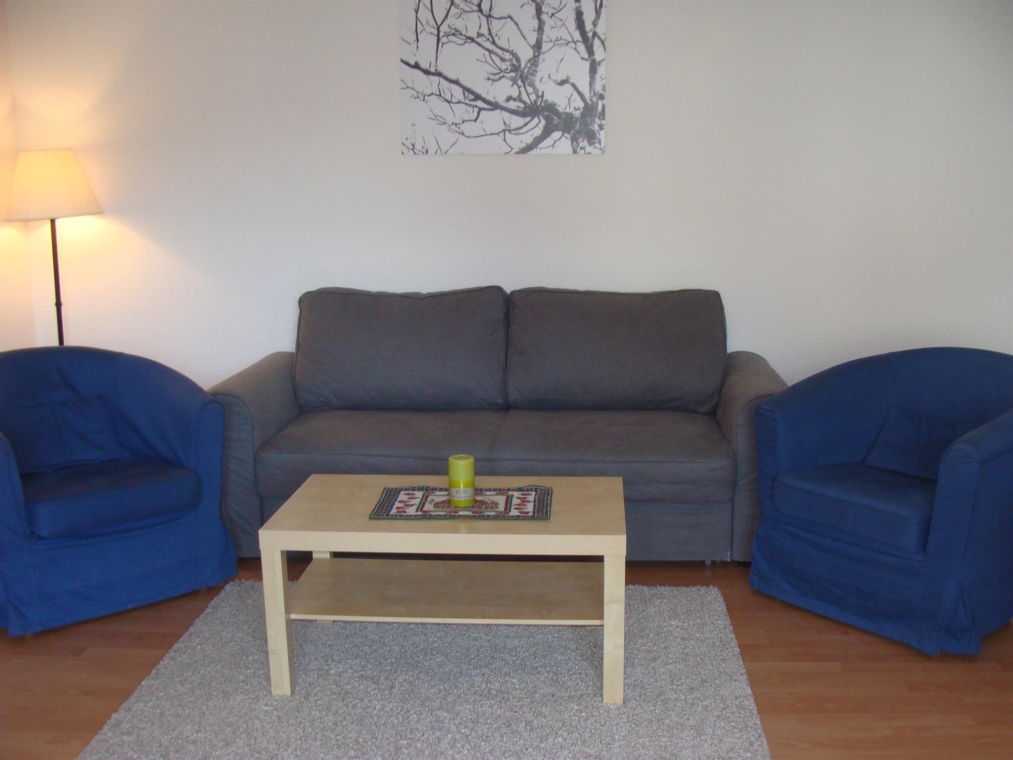 Das Apartment (55m²) im Erdgeschoß, besteht aus einem Eingangsbereich, einem Schlafzimmer mit einem Doppelbett und einem Stockbett, einem Wohnzimmer mit einem Schlafsofa, Esstisch, Kabelfernseher und W-LAN. Die neue separate Küche ist mit einer Spülmaschine, Ceranfeld, Backofen, Kühlschrank mit Gefrierfach ausgestattet. Das Badezimmer hat eine Badewanne mit Duschwand. Durch die Glasfront gelangen Sie direkt auf die Terrasse.