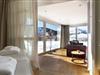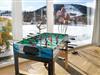 Große Panoramafenster spenden Licht und bieten einen schönen Blick auf die Bergwelt.