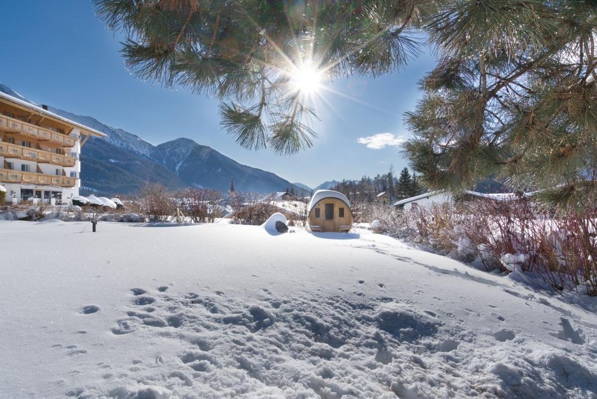 Genießen Sie klassisches Saunieren in unserem Outdoorbereich. Unserer Fasssauna ist definitiv ein echter Blickfang in unserer Outdoor – Oase. Genießen Sie pure Entspannung in Ihrem eigenen privaten Wellnessbereich – mit Blick auf die grandiose Bergkulisse von Wetterstein und Karwendel.