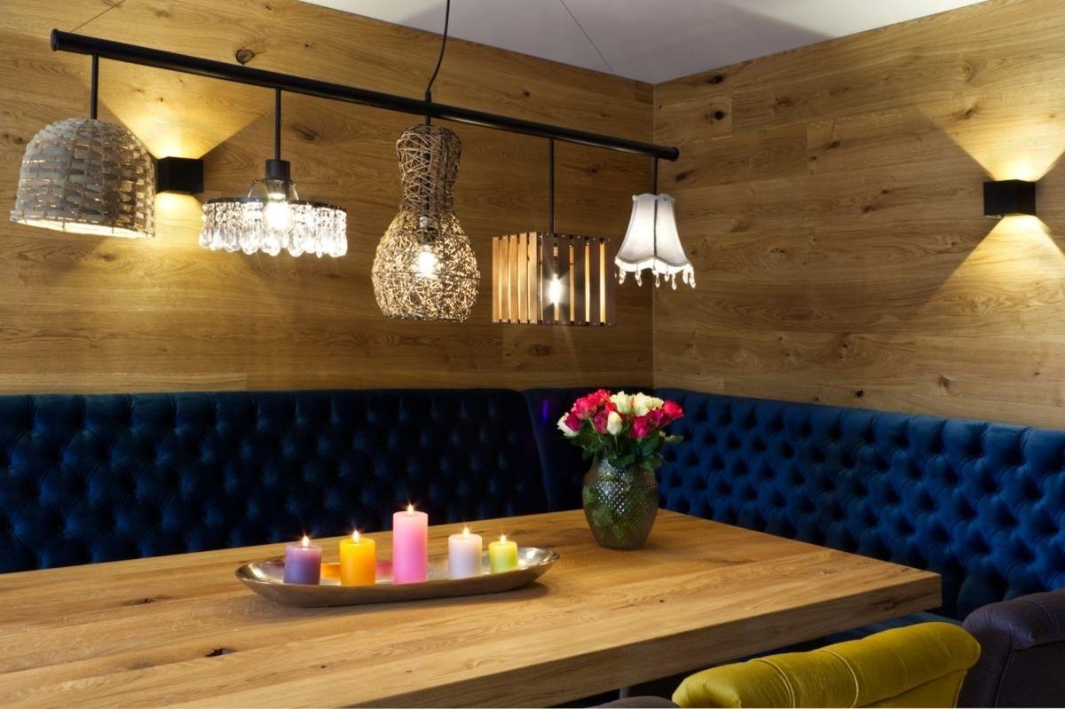 Angrenzend lädt der exklusive holzvertäfelte Essbereich zum Speisen und gemütlichen Beisammensein ein.