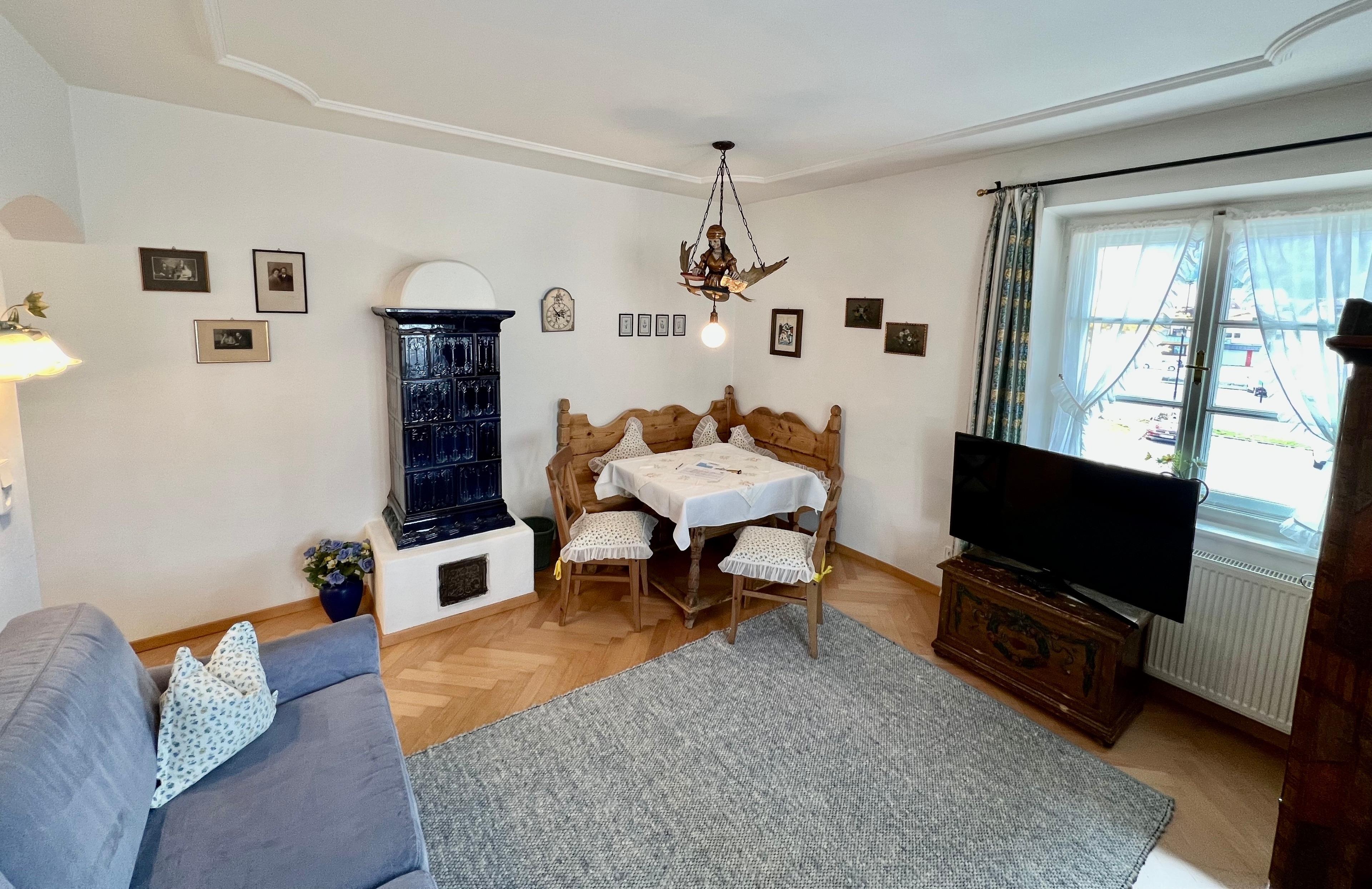 Beide Ferienwohnungen sind im ursprünglichen Stil erhalten und verfügen über Balkon, lichtdurchflutete Wohnzimmer mit Sofa bzw. Doppel-Schlafcouch, Schlafzimmer und Marmorbad sowie voll ausgestatteter Kochzeile. Die original Kachelöfen wurden jeweils erhalten, sind nun zusätzlich elektrisch bedienbar und sorgen für ein besonders gemütliches Wohnklima. High Speed WLAN steht im ganzen Haus zur Verfügung, unsere TV Geräte sind NETFLIX, APPLE TV, AMAZON... etc. tauglich.