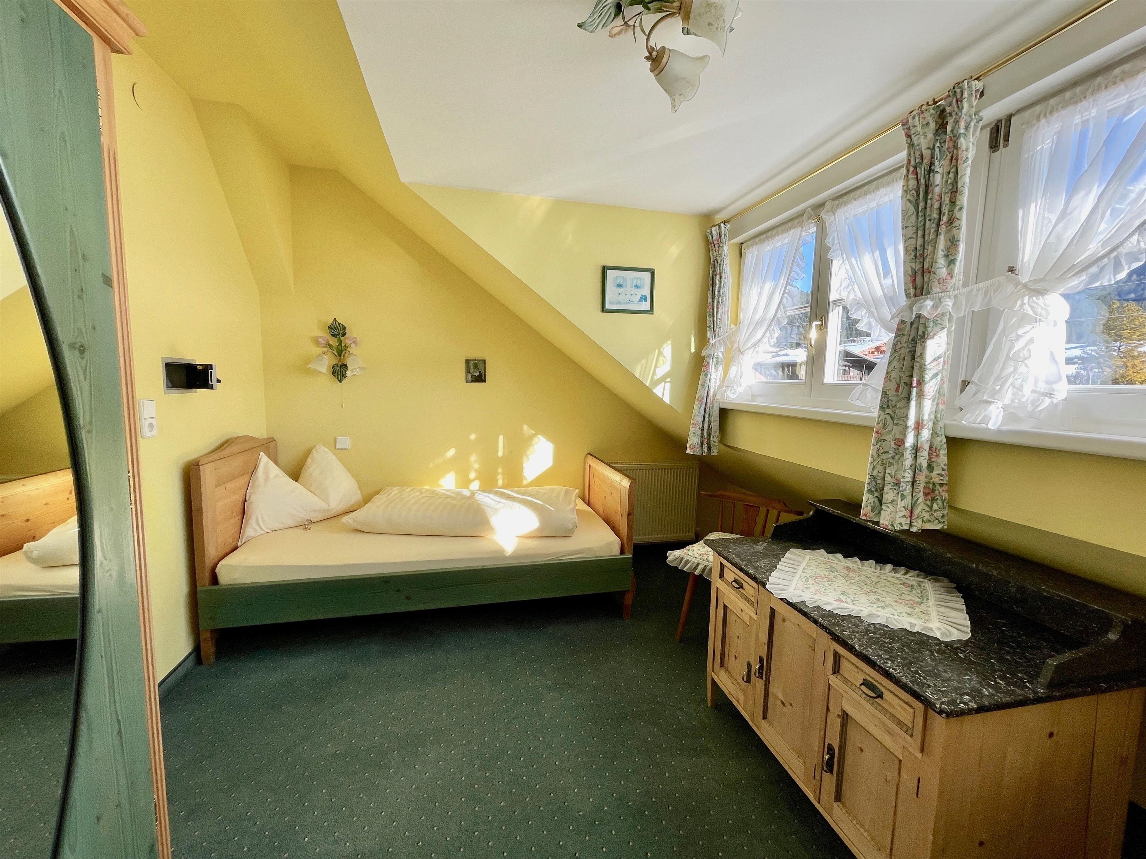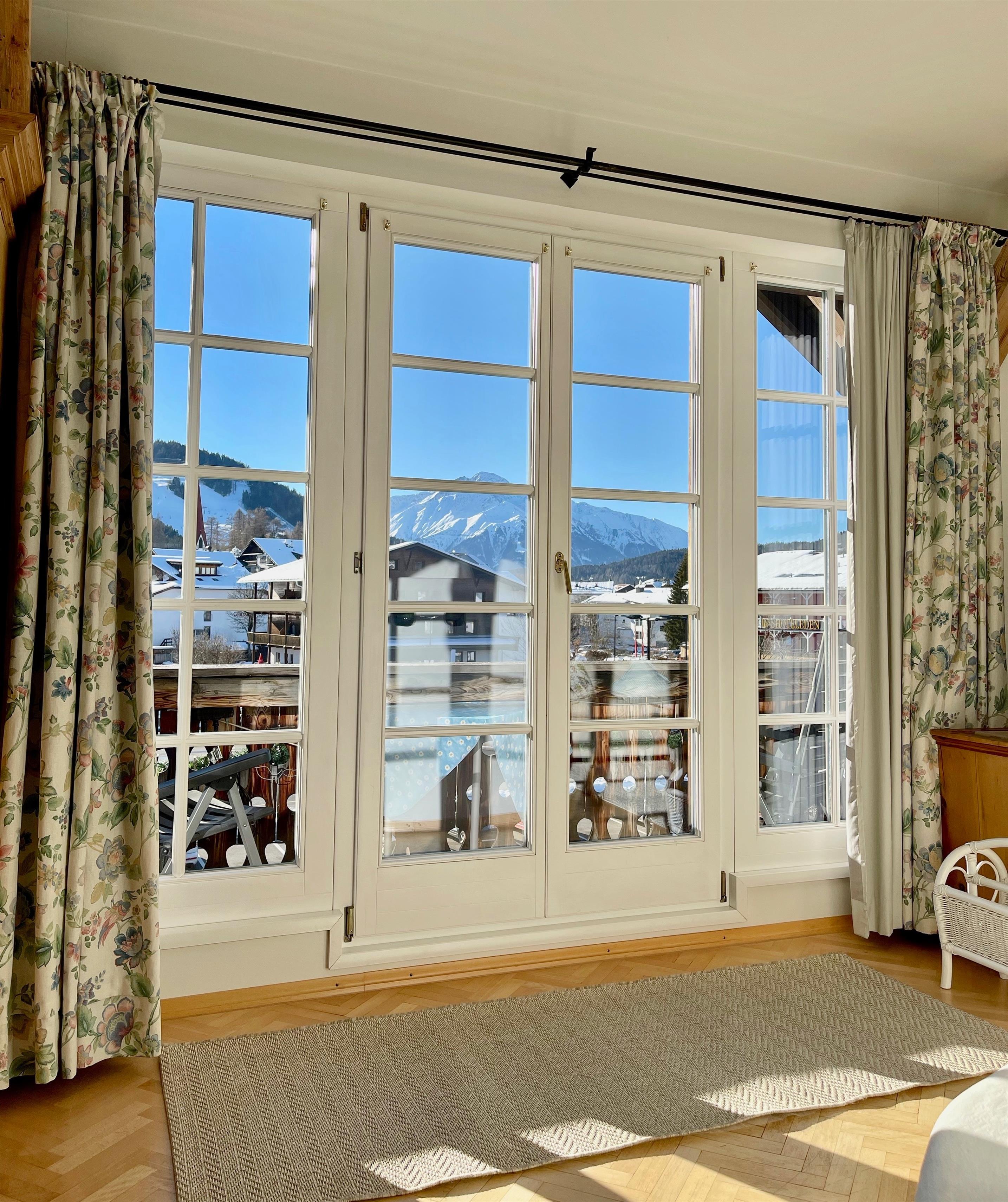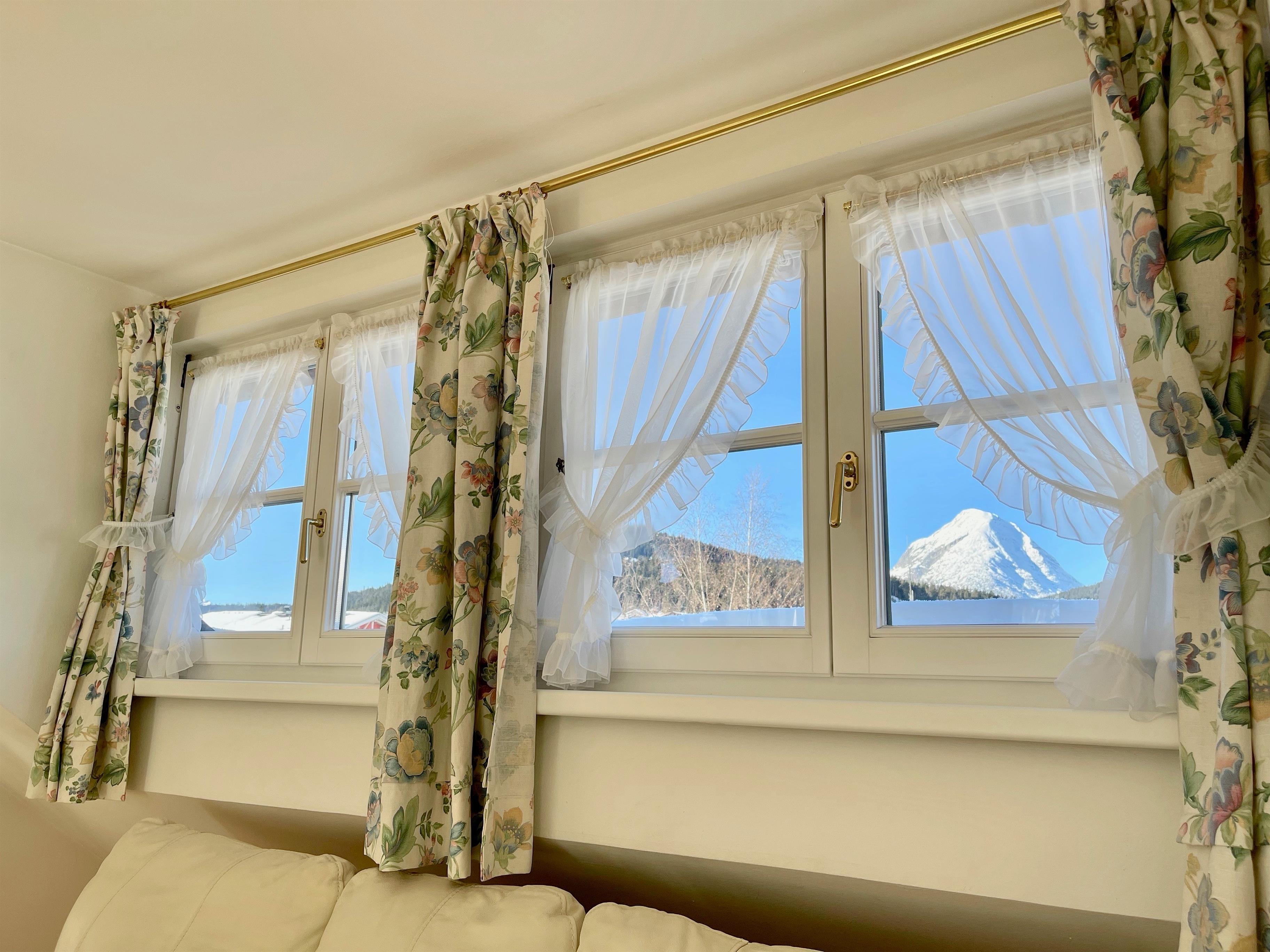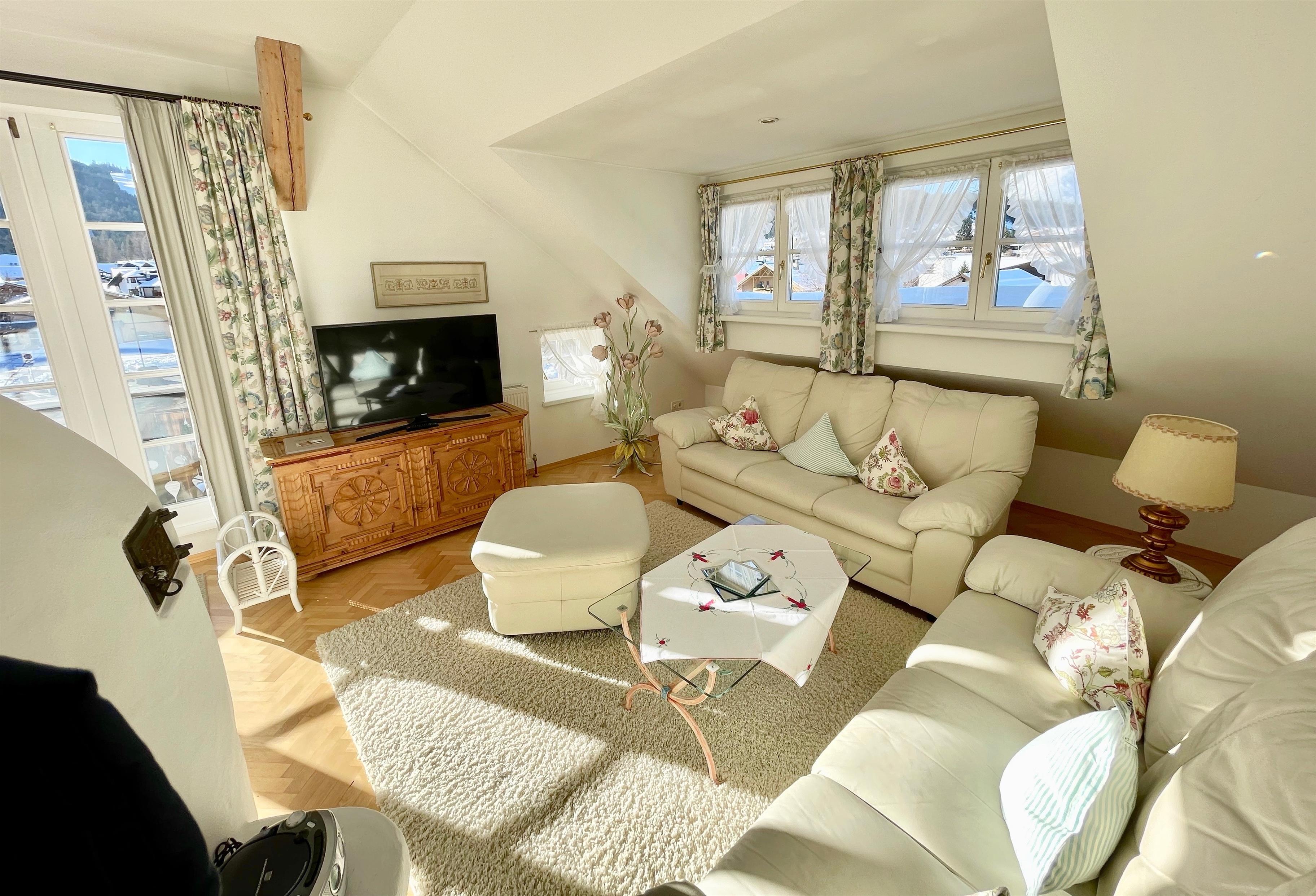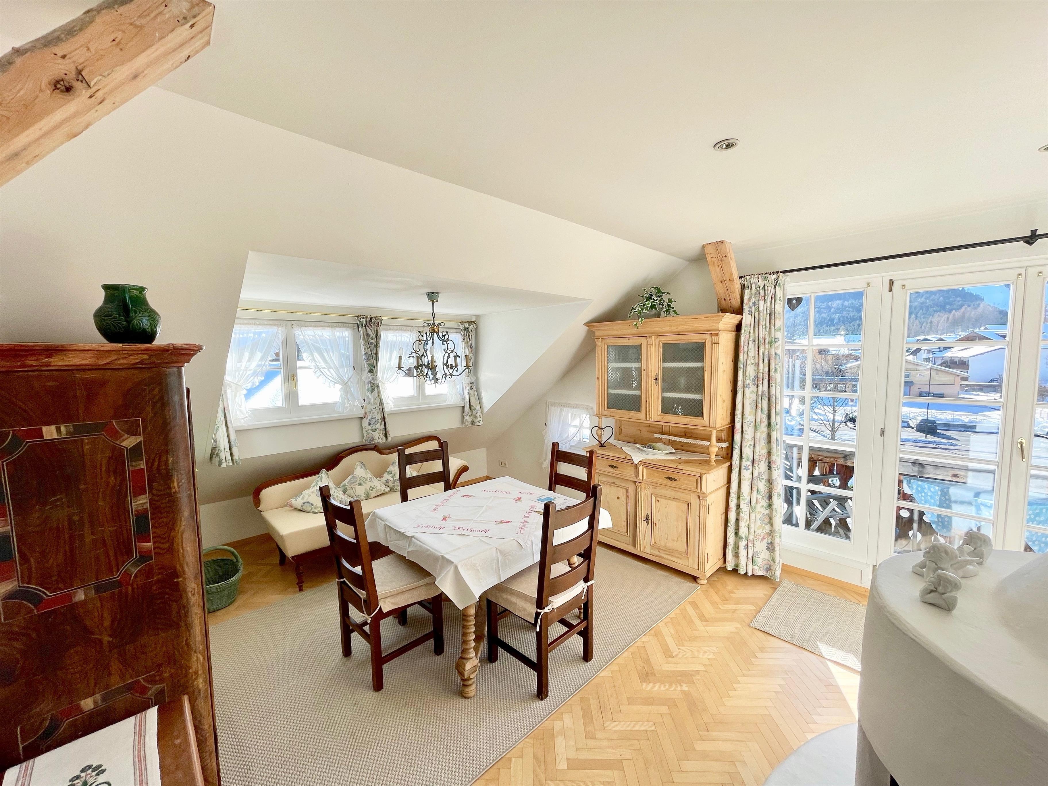 Unsere Apartment 5 liegt im 2. Stock des Hauses und bietet einen Rundum-Panoramablick. Trotz der Nähe zum Seefelder Ortszentrum ist die Lage sehr ruhig und sonnig.