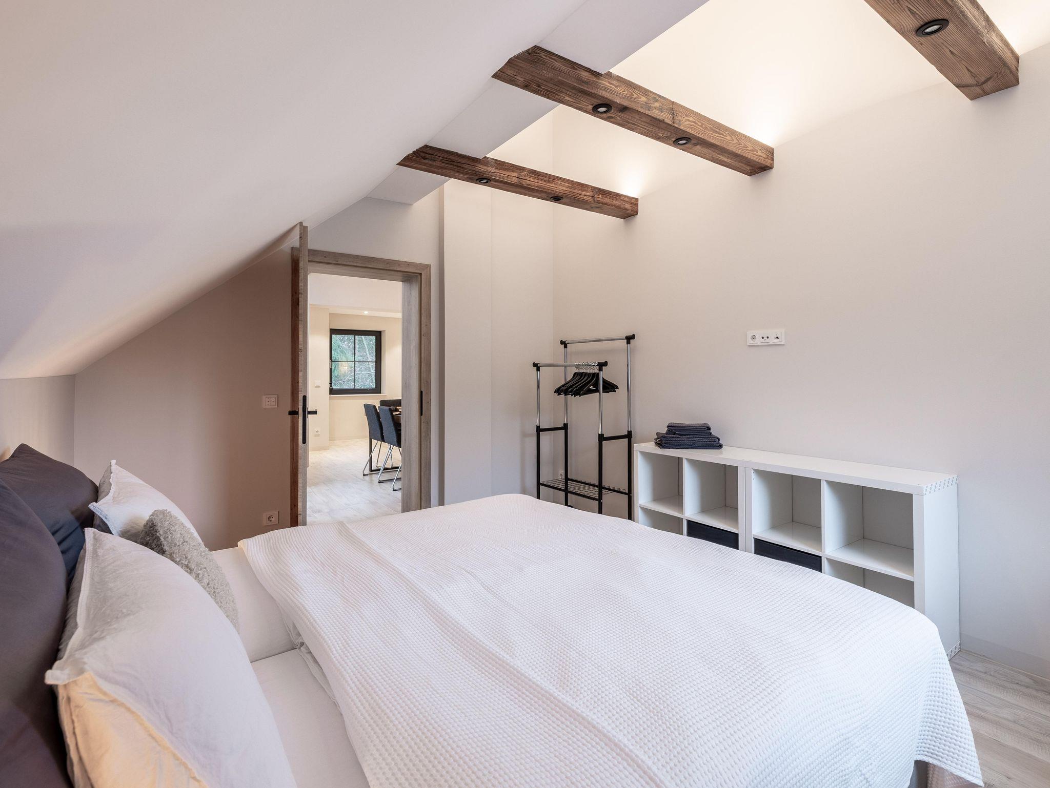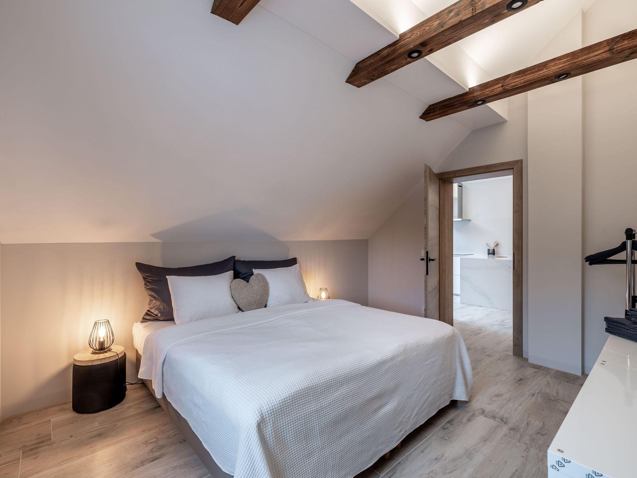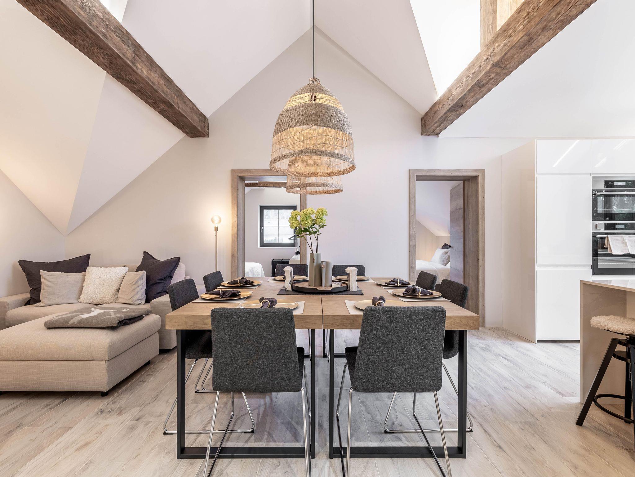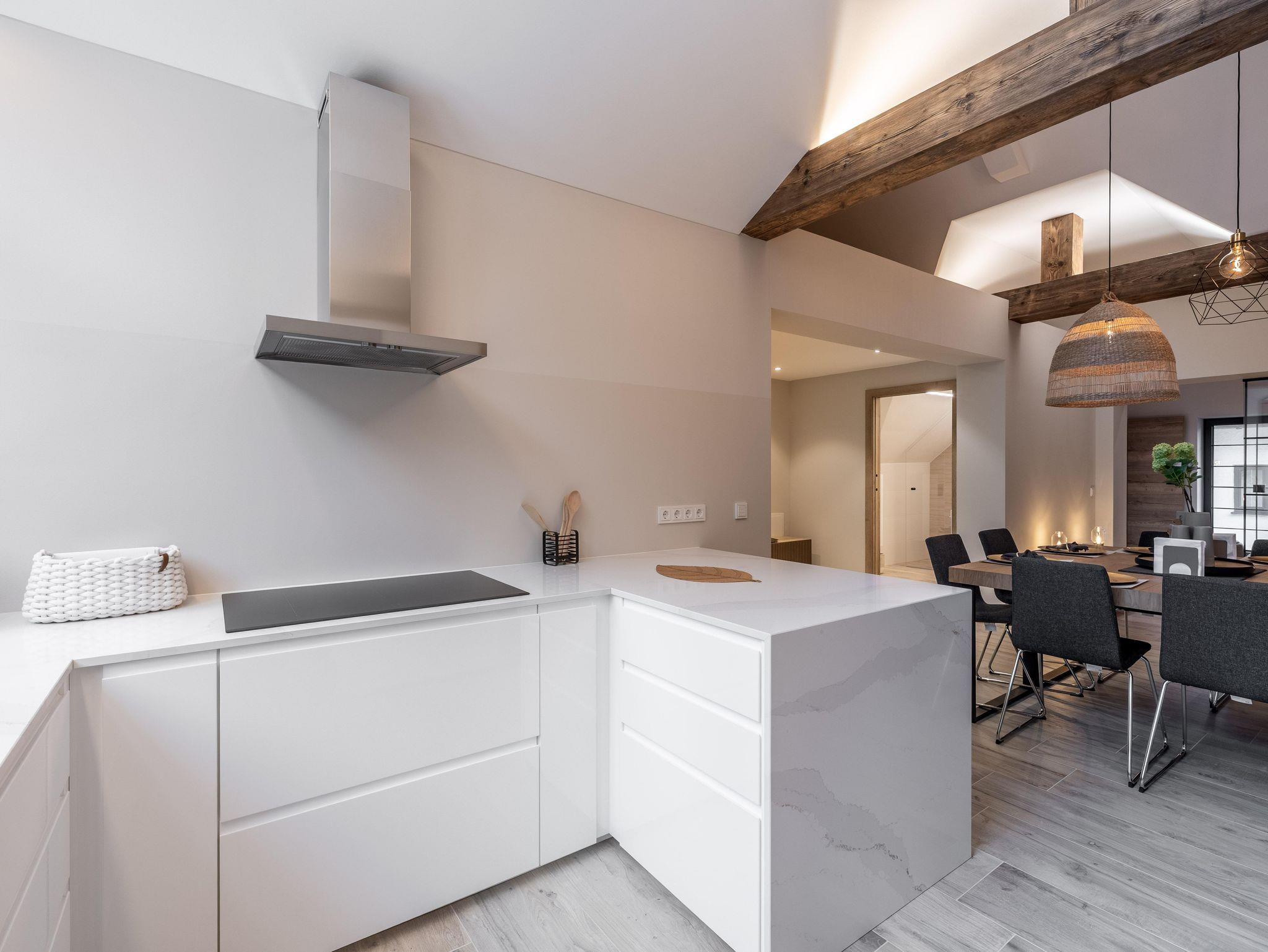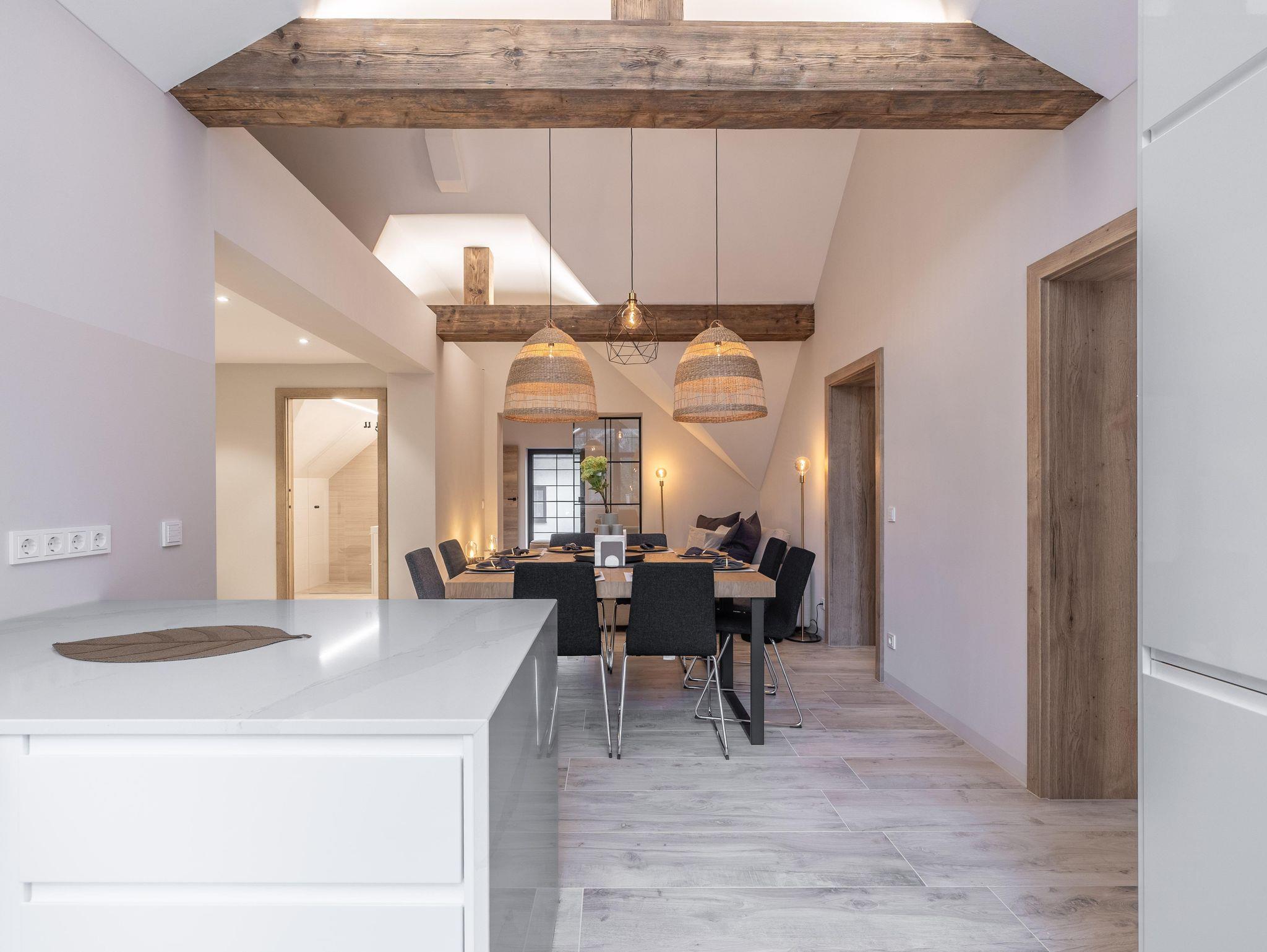 Wunderschöne Ferienwohnung mit Panoramafenstern und Blick auf den Wald. Die gesamte Wohnung wurde komplett neu renoviert und bietet auf 90 m² Platz für bis zu 8 Personen. Genießen Sie eine große, moderne Küche, ideal für gemeinsame Kochabende. Die Wohnung verfügt über zwei Schlafzimmer im ersten Stock.