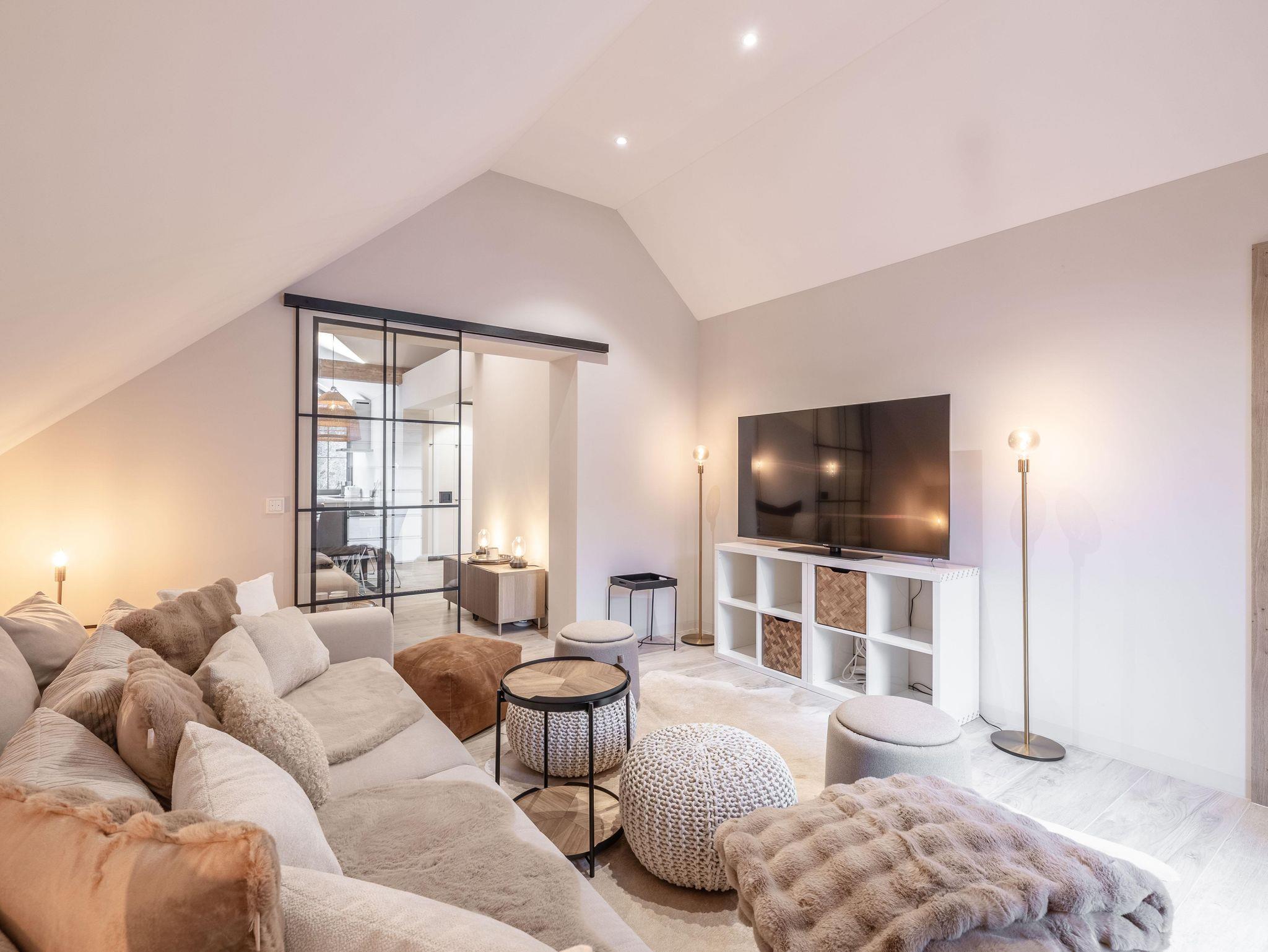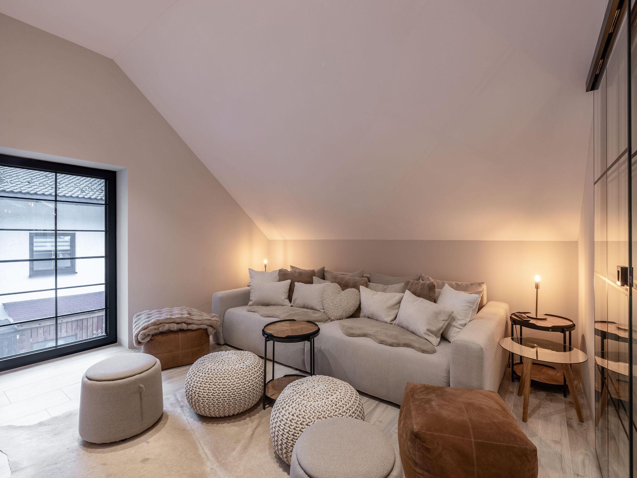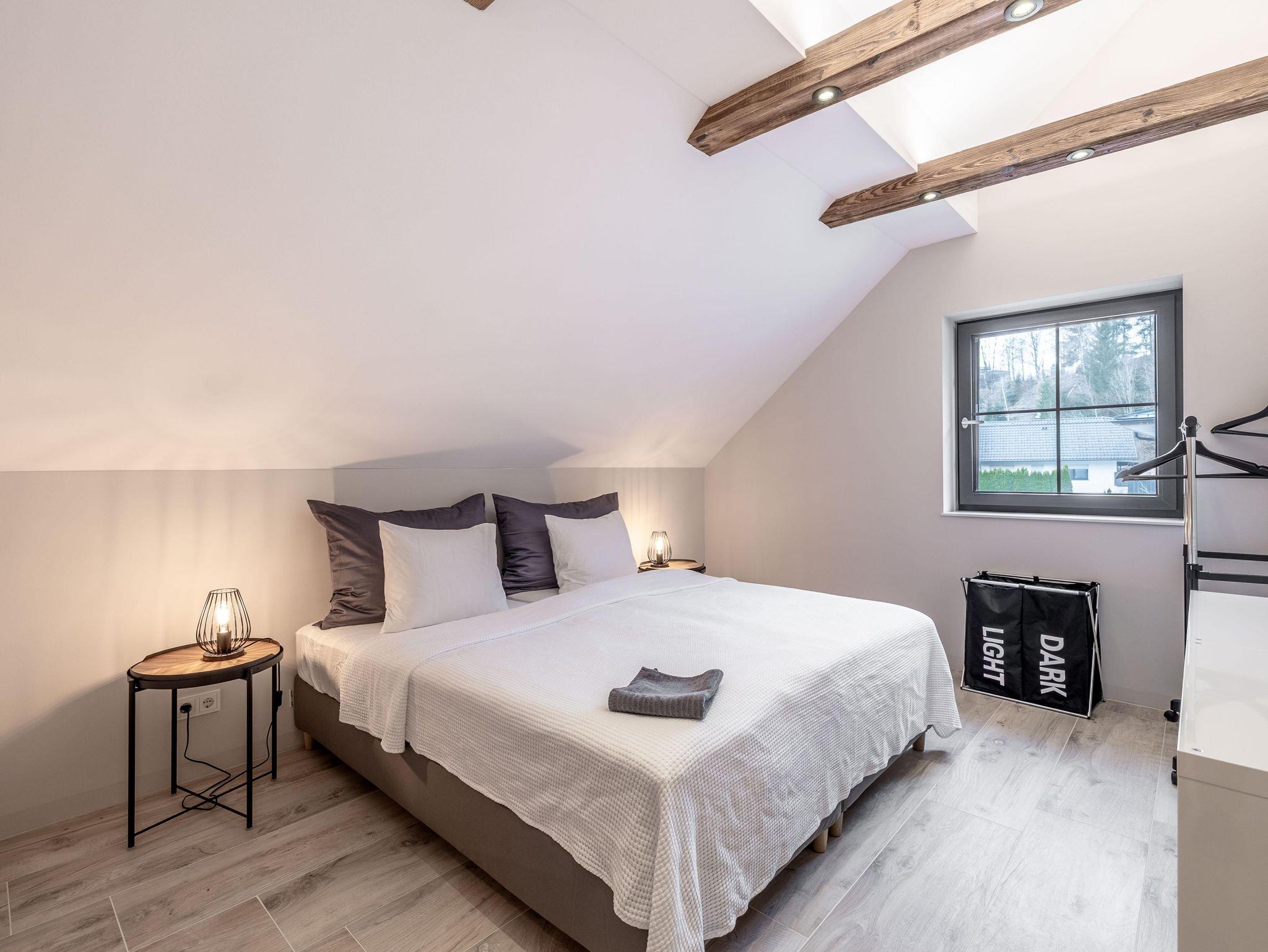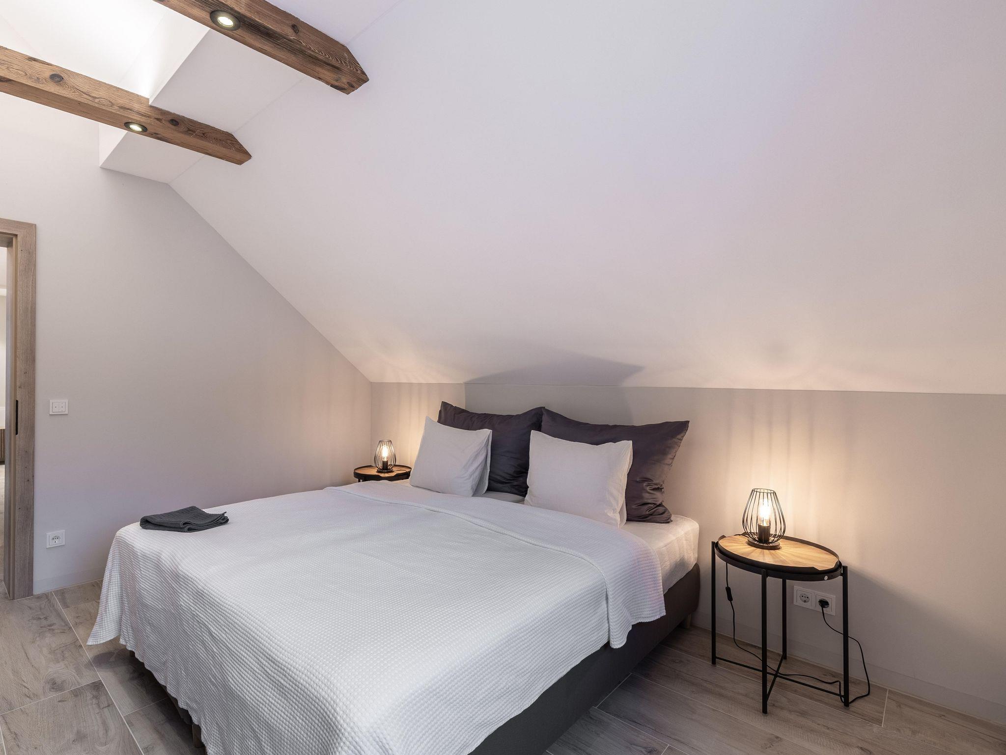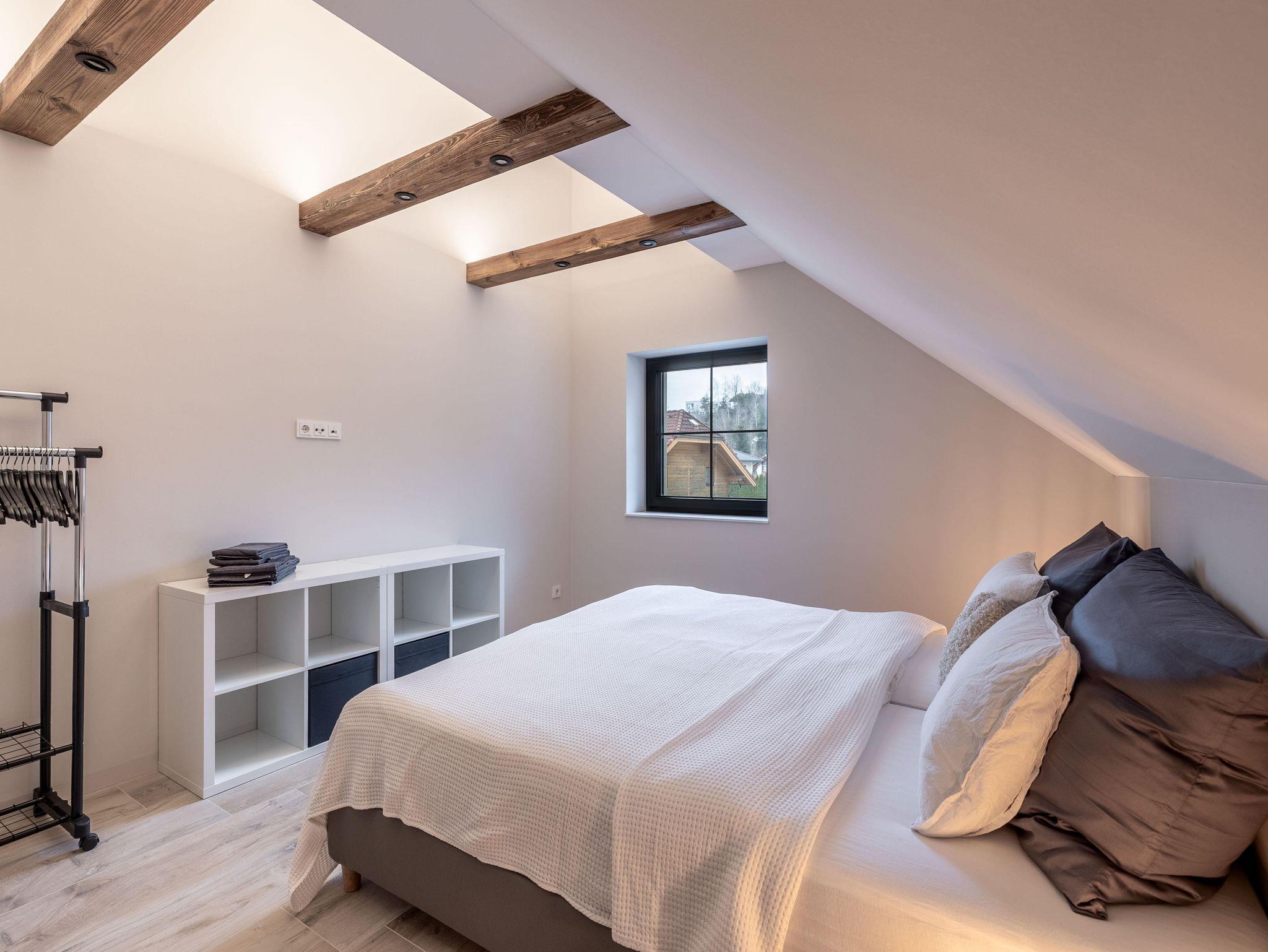 Wunderschöne Ferienwohnung mit Panoramafenstern und Blick auf den Wald. Die gesamte Wohnung wurde komplett neu renoviert und bietet auf 90 m² Platz für bis zu 8 Personen. Genießen Sie eine große, moderne Küche, ideal für gemeinsame Kochabende. Die Wohnung verfügt über zwei Schlafzimmer im ersten Stock.