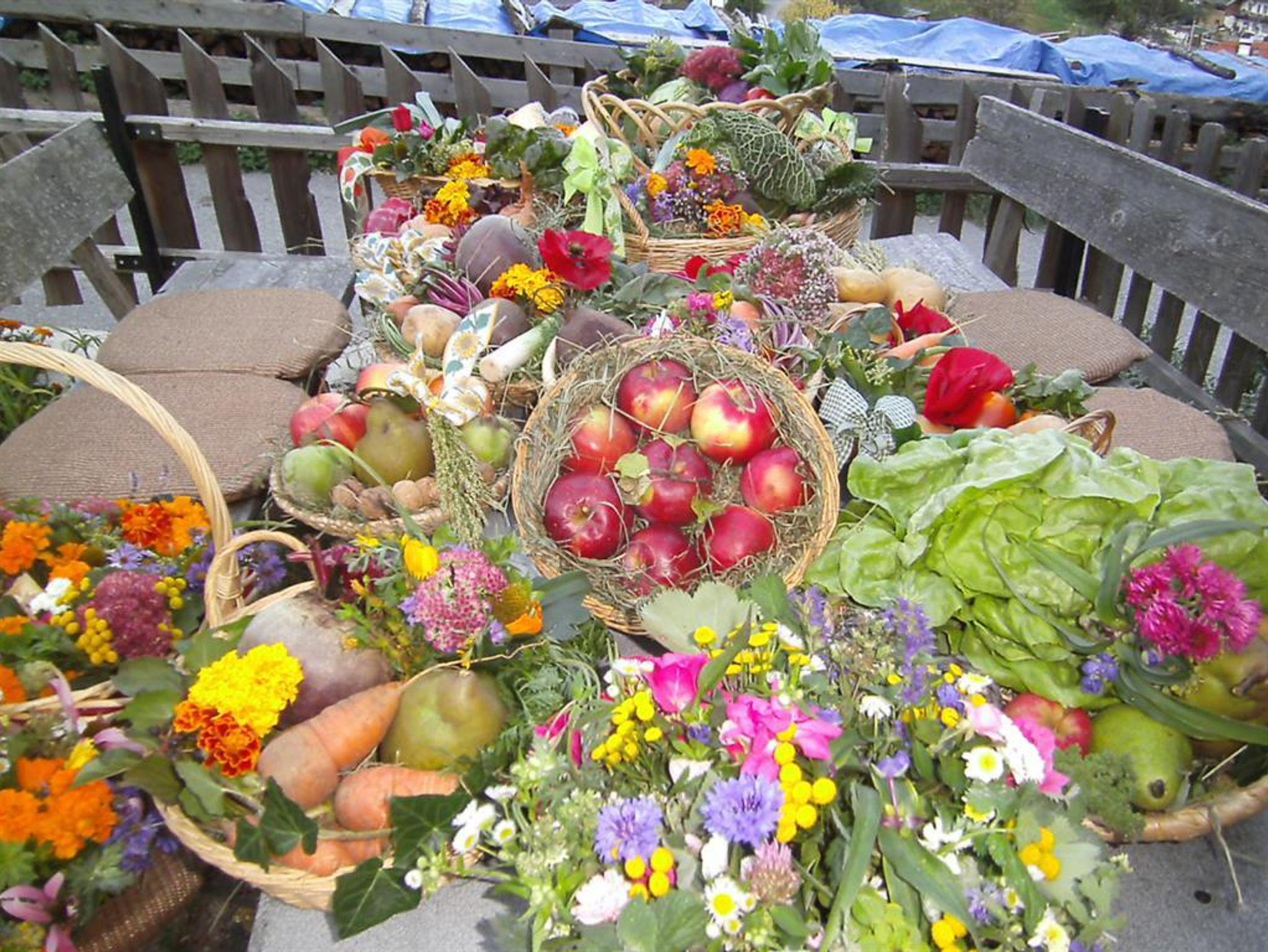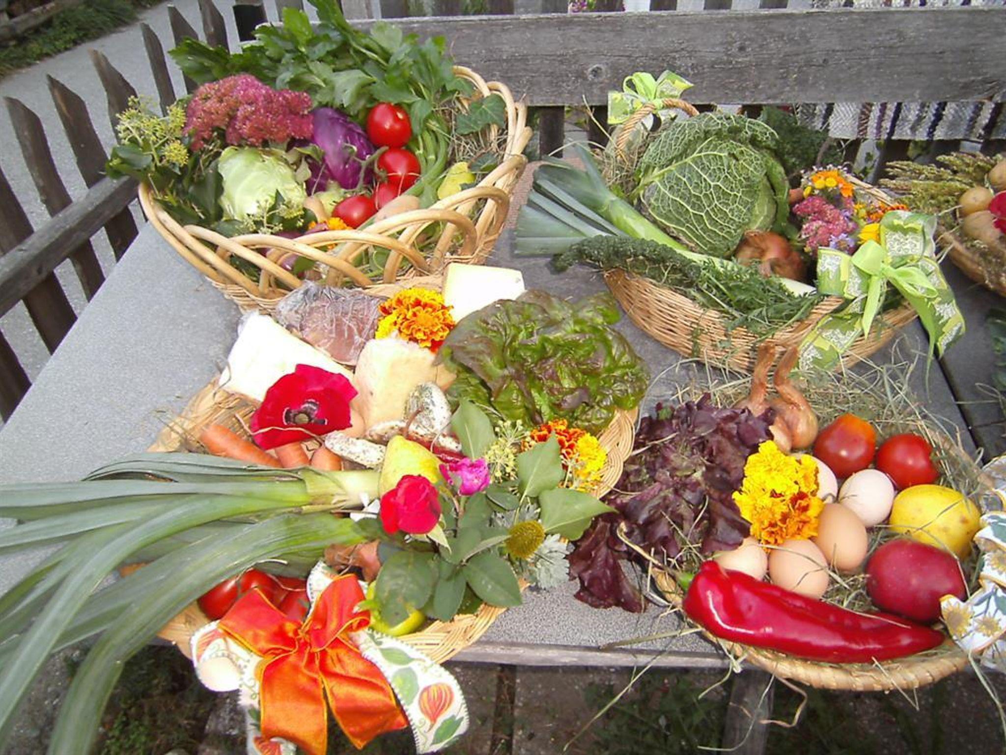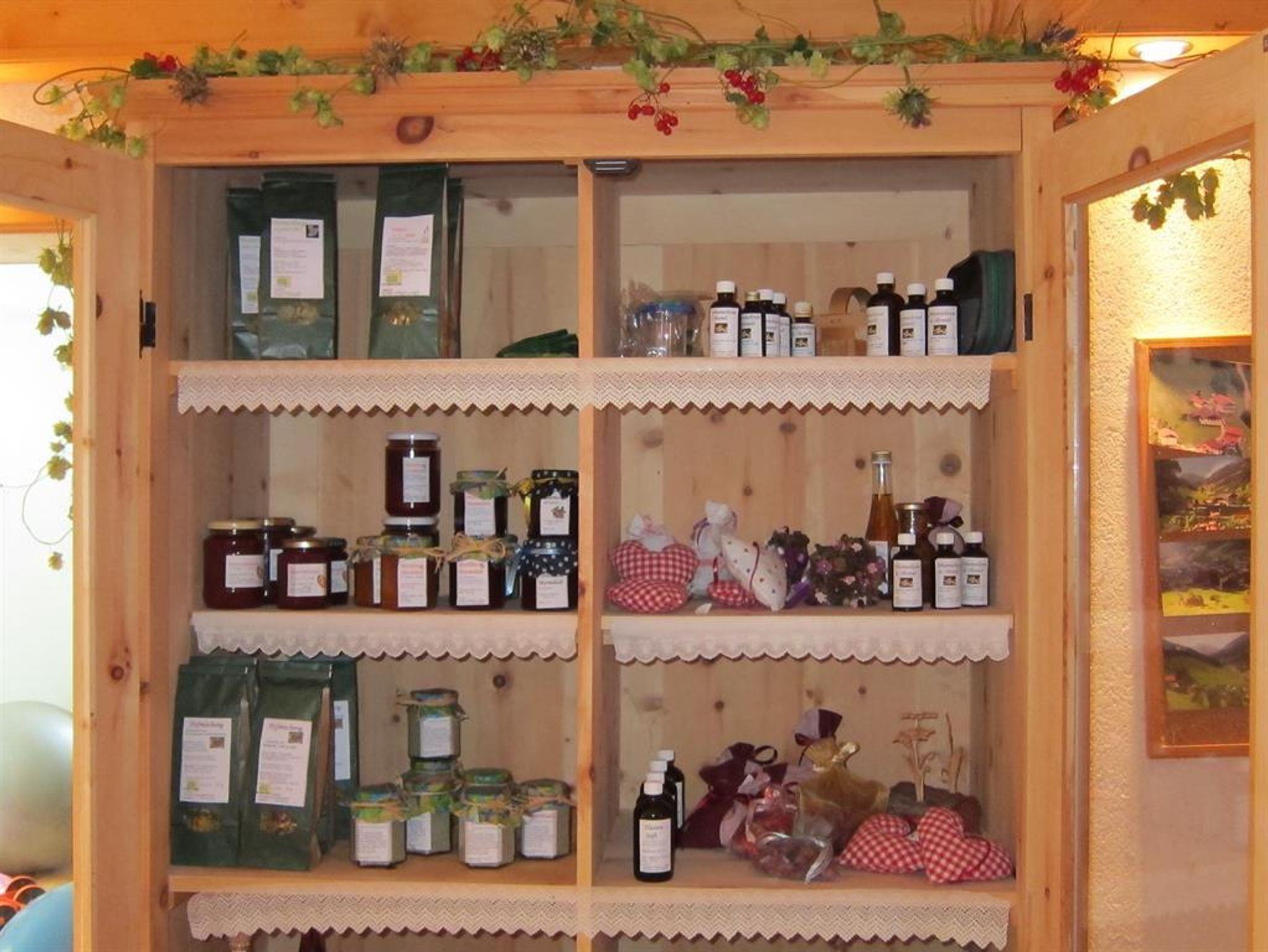 Auf Anfrage gibt es hofeigene Produkten wie Käse, Butter, Brot und hauseigenen Kräutertees und – salz.