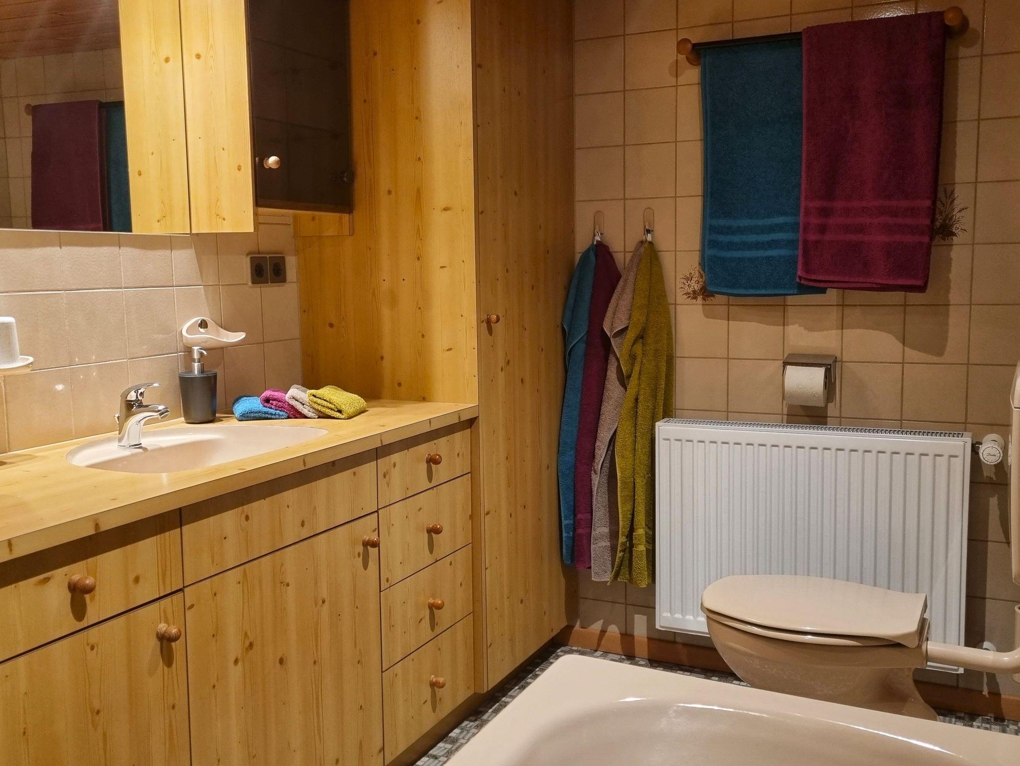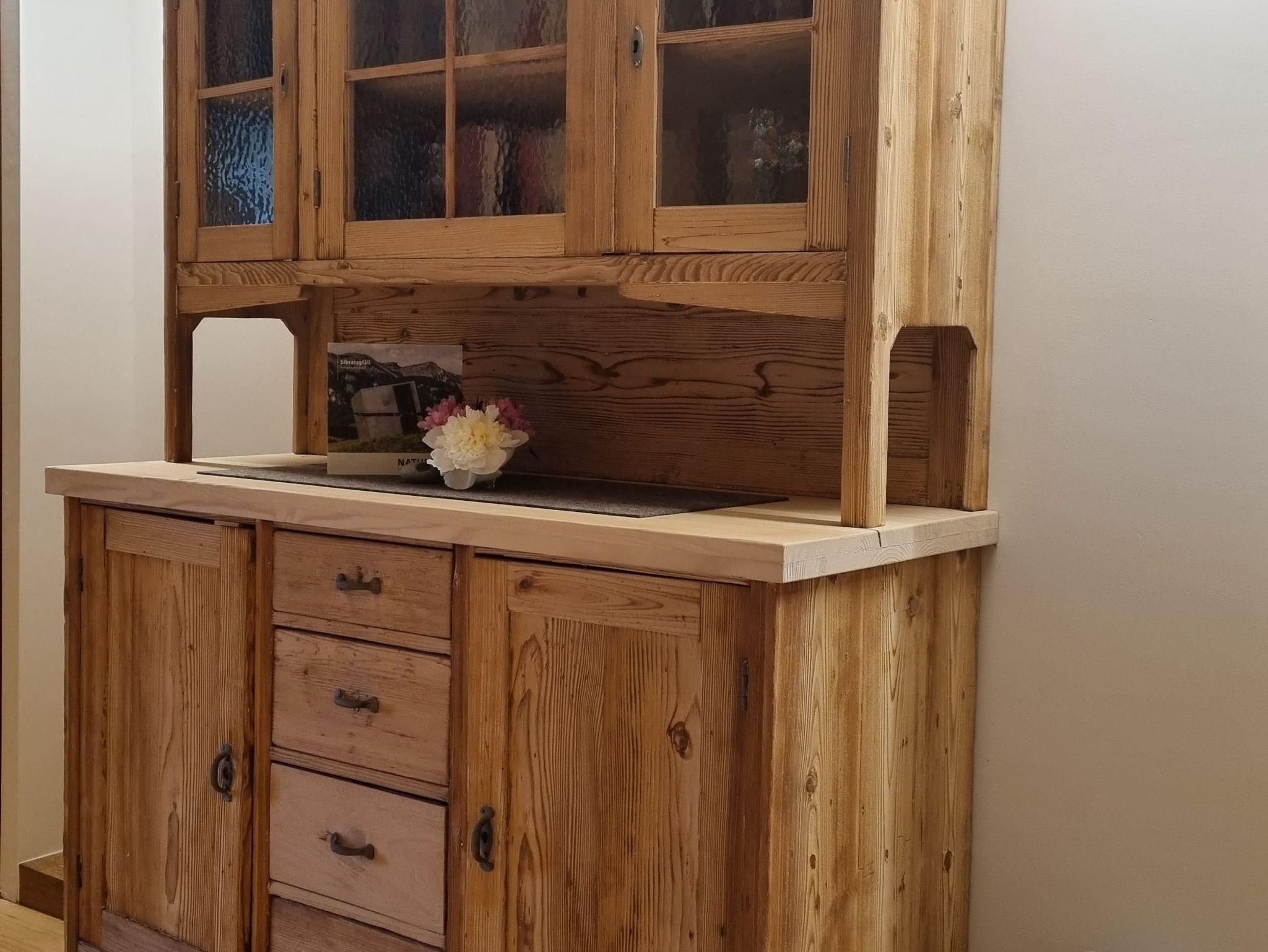 Im Erdgeschoss befindet sich eine kleine Tischlerei (Einmannbetrieb) sowie ein Schuh- bzw. Skiraum, der auch ideal zum Abstellen von Fahrrädern genutzt werden kann. Unsere beliebten Betten aus Zirbenholz, handgefertigt vom Hausherrn, sorgen für besonders erholsame Nächte und zusätzliche Entspannung.