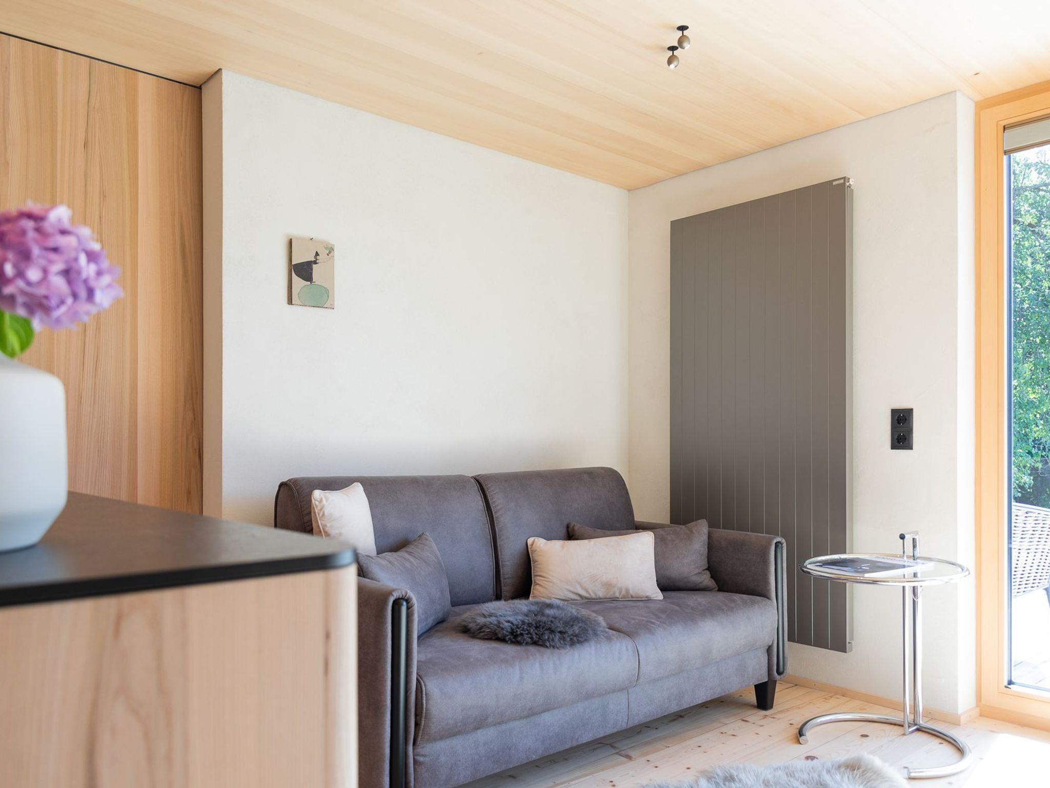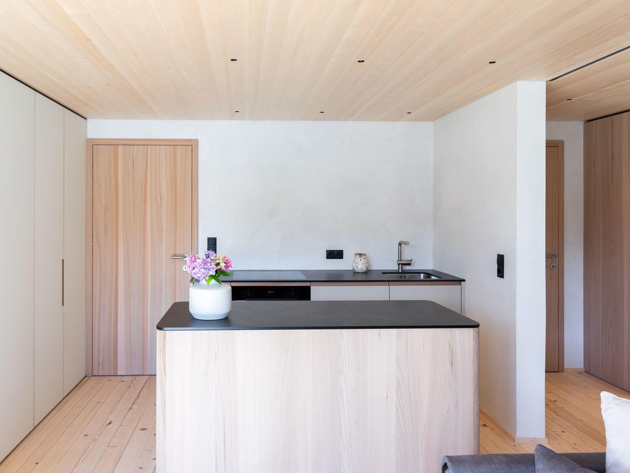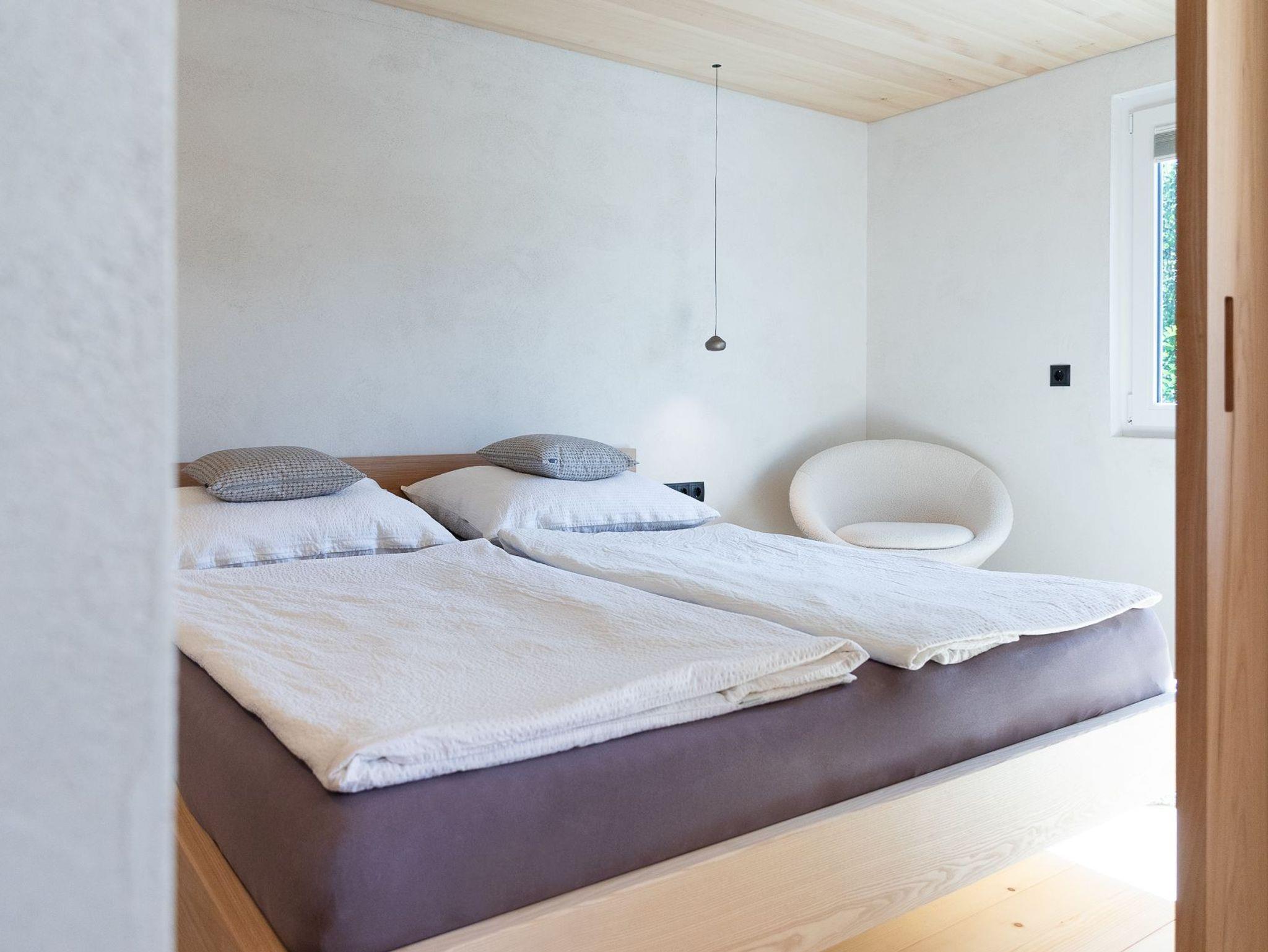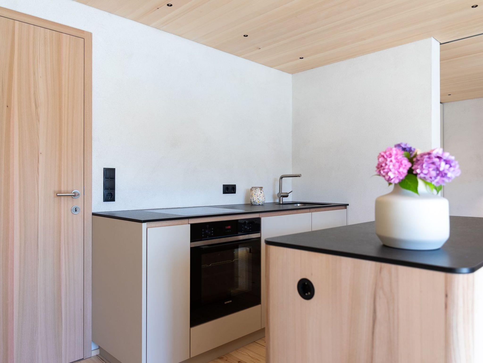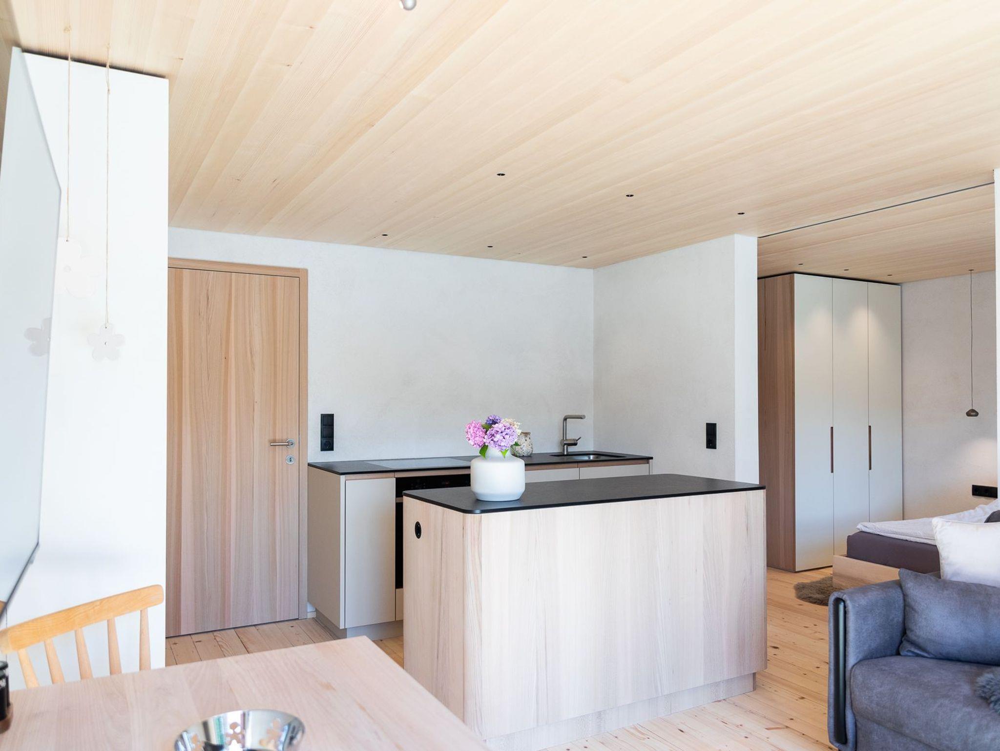 Die Ferienwohnung Berg im Erdgeschoß des Hauses Sonnenblick am Berg wurde im Mai 2025 fertig gestellt. Sie ist für zwei, maximal drei Personen vorgesehen und besteht aus einem Wohnbereich mit einer modern eingerichteten Küche und einem angrenzenden Schlafraum mit einem Doppelbett. Der Raum ist mit einer Schiebetüre abtrennbar. Im Wohnbereich steht eine Schlafcouch. Dusche und Toilette sind barrierefrei erreichbar.