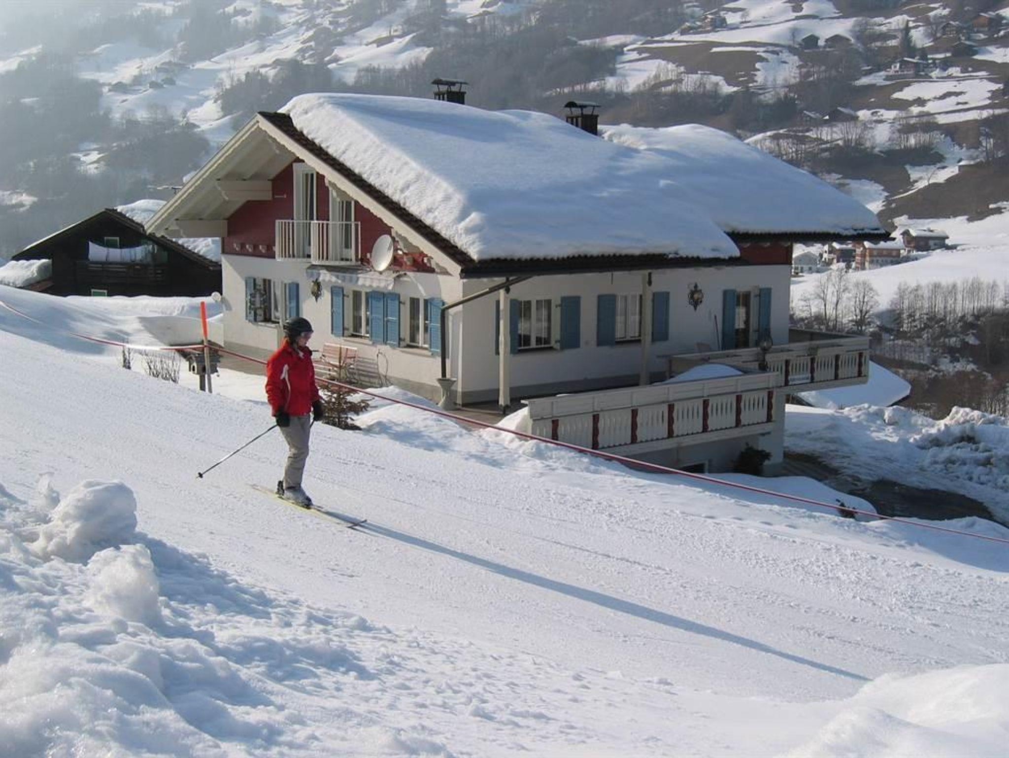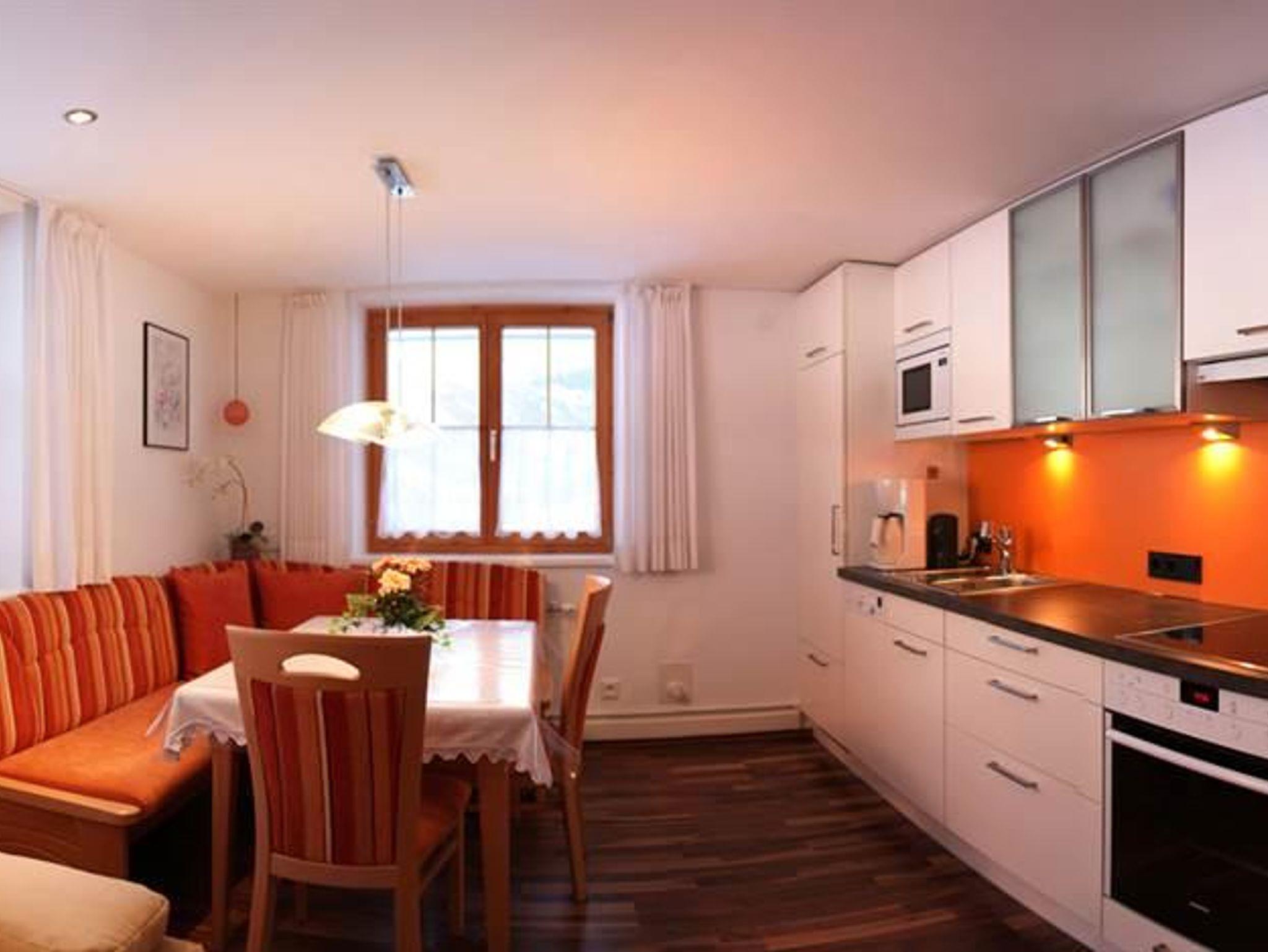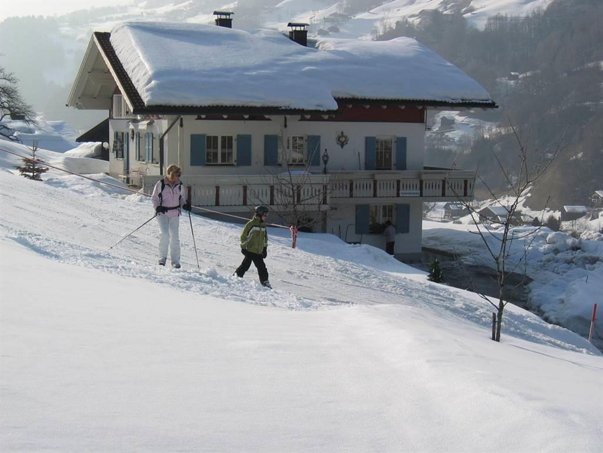 FERIENWOHNUNG für 2 - 4 Personen ( 40m² im EG). Gemütliche neue Wohnküche mit ausziehbarer Liegecouch, komplett eingerichtet mit Toaster, Wasserkocher, Filter- und Senseo Kaffeemaschine für Pads, Geschirrspüler, Radio, Sat-TV, W-Lan gratis, 1 Dreibettzimmer mit TV, Dusche mit WC und Fön. Schiraum und Schischuhtrockenraum, Liegewiese, Terrasse mit Grillmöglichkeit.