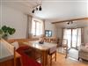 Wohnküche mit großer Eckbank, Ausziehcouch ( Doppelbett ), Sat-TV, Terrasse mit Gartenzugang.