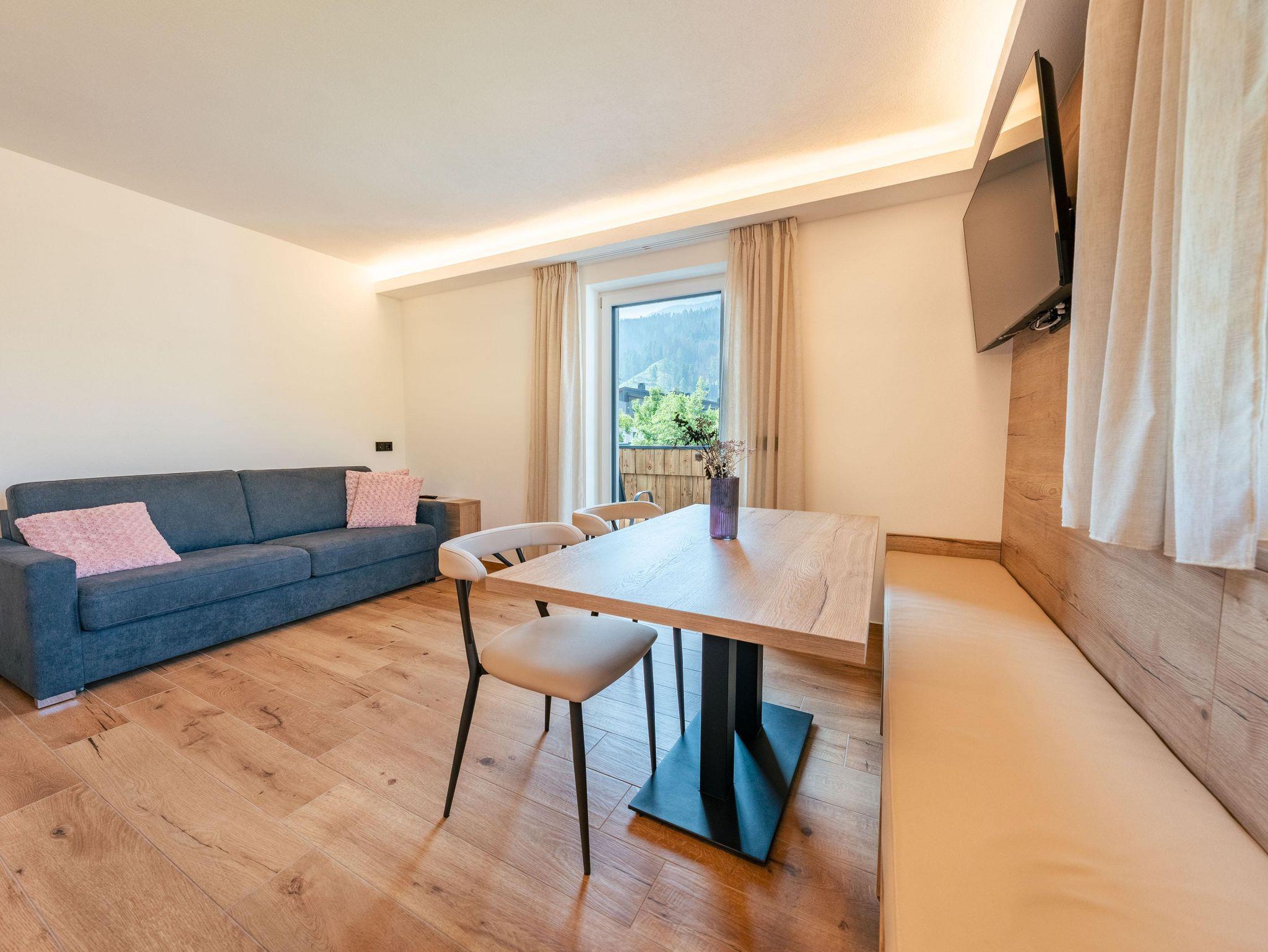 Appartement mit 1 Schlafzimmer mit Doppelbett, 1 Wohnküche mit ausziehbarer Couch für 2 Personen und 1 Dusche / WC