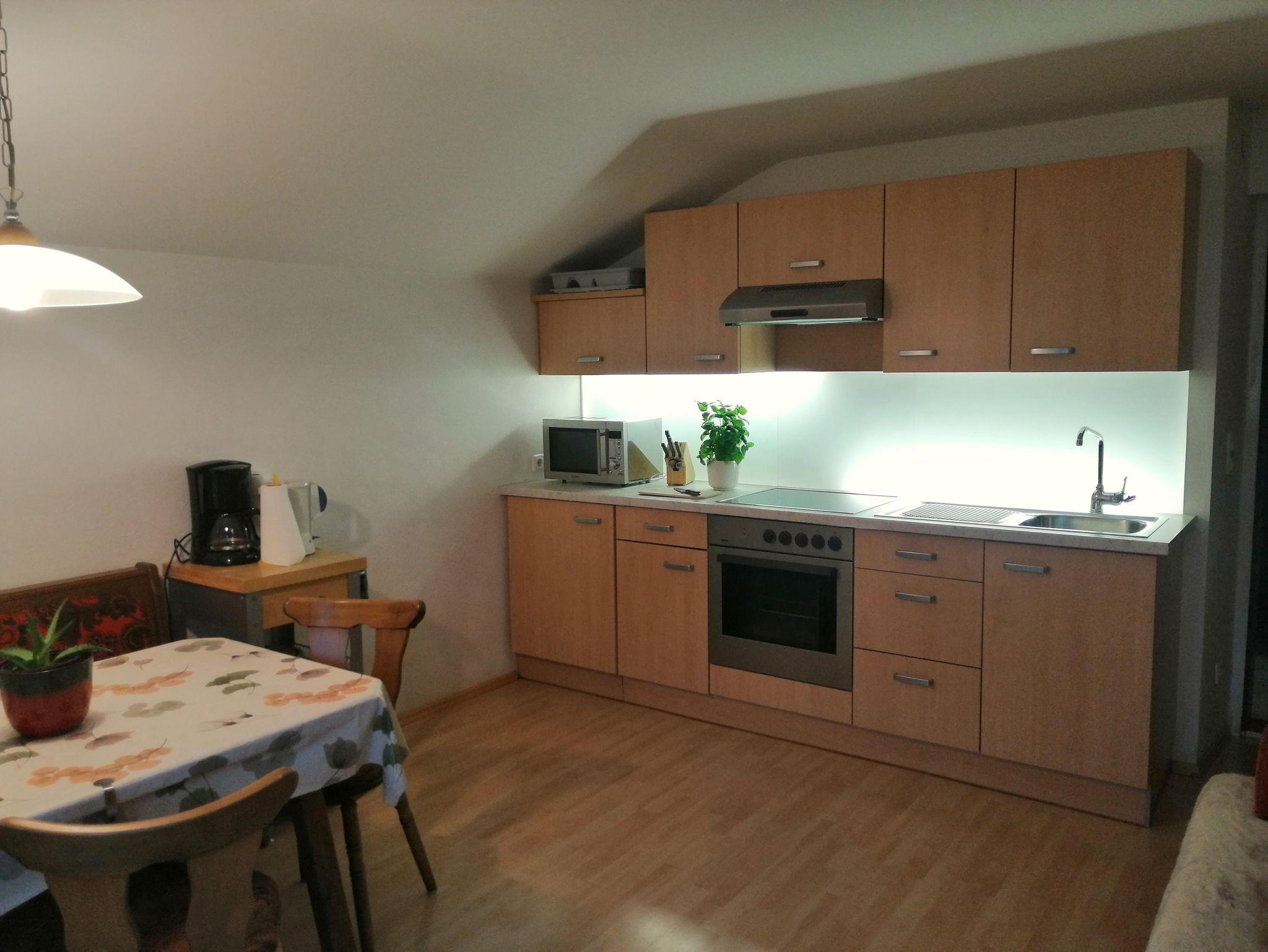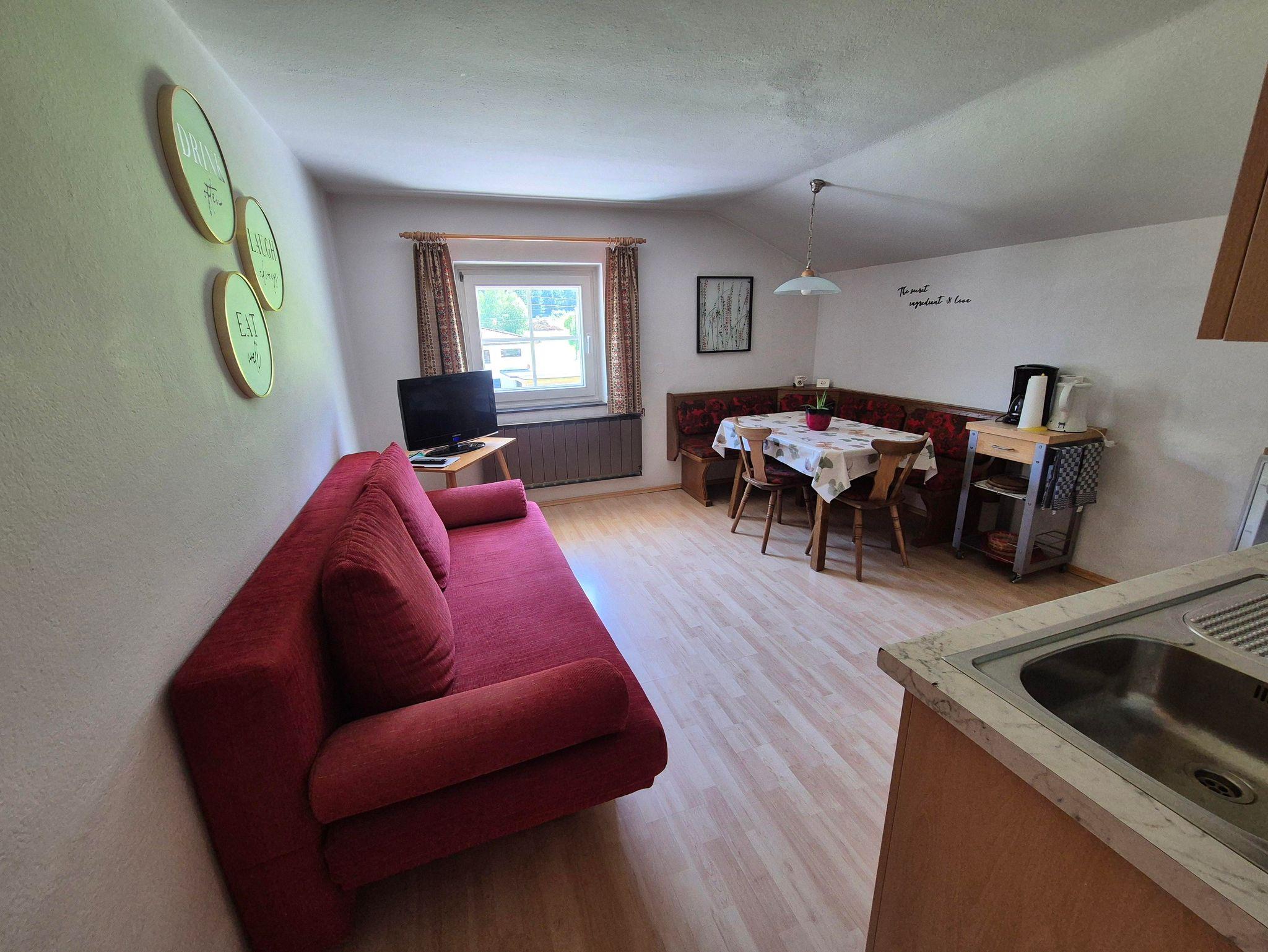 Das Appartement besteht aus Wohnküche mit Flachbild-Sat-TV, kostenfreies W-Lan, ausziehbarer Doppelbettcouch, Doppelzimmer, Vorraum, Dusche/WC und Abstellraum.