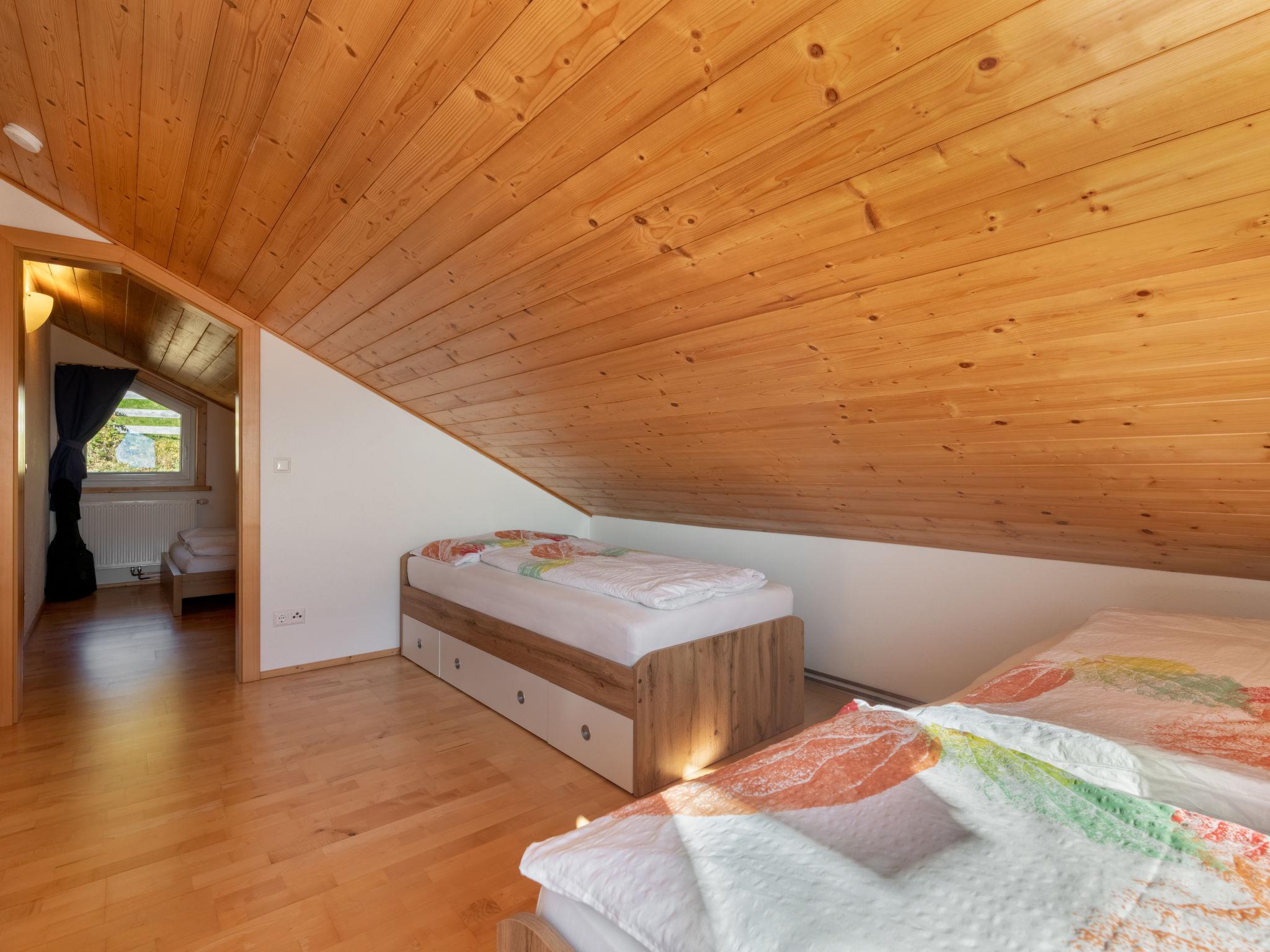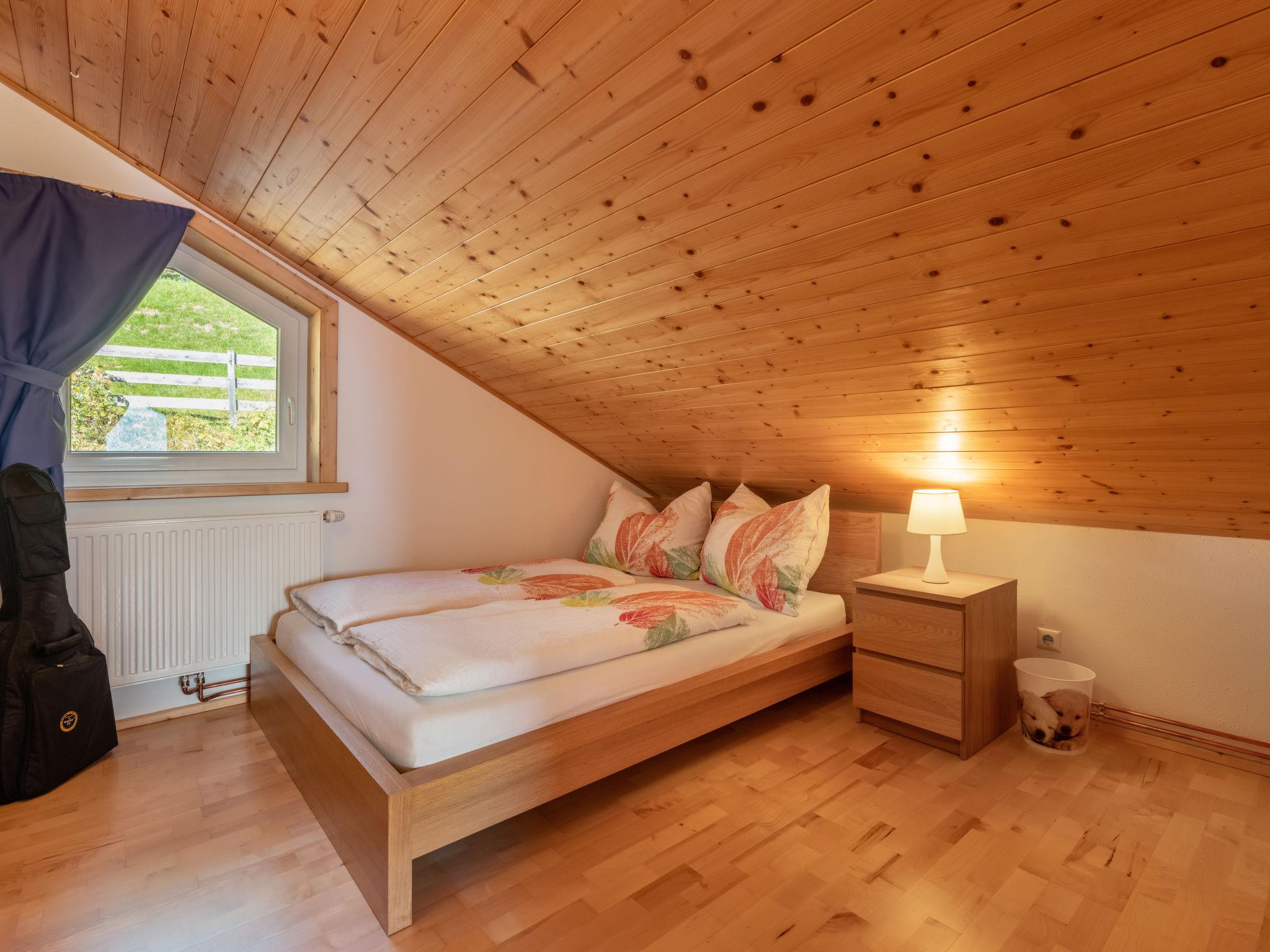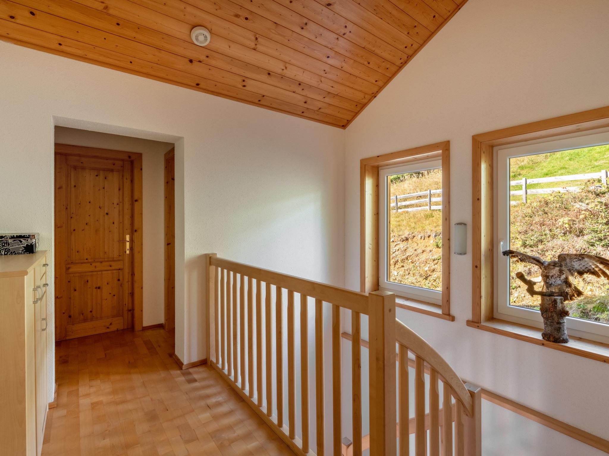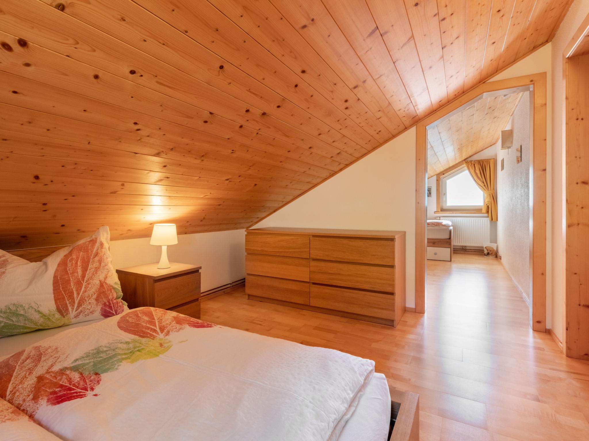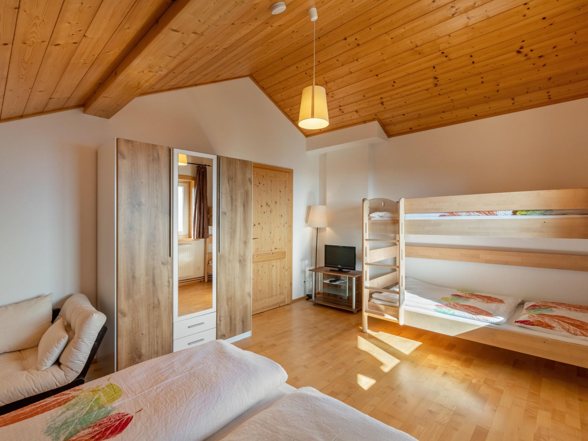"Pistenblick Gross", 4-room apartment 120 m2 on 2 levels. Spacious, partly with sloping ceilings, comfortable furnishings: entrance hall. Living room with winter garden with satellite TV. Exit to the balcony. 1 room with 1 double bed (2 x 90 cm, length 200 cm). Kitchen (oven, dishwasher, 4 ceramic glass hob hotplates, microwave, freezer) with dining table. Shower, sep. WC. Upper floor: (spiral staircase) walk-through room with 1 double bed (140 cm, length 200 cm). 1 open room with 2 beds (90 cm, length 200 cm). 1 room with 1 x 2 bunk beds (90 cm, length 200 cm), 1 double bed (180 cm, length 200 cm). Bathroom, sep. WC. Large patio. Terrace furniture. Beautiful panoramic view of the mountains and the valley. Facilities: Internet (WiFi, free). Parking at the house. Please note: suitable for families. Non-smokers only. Smoke alarm.