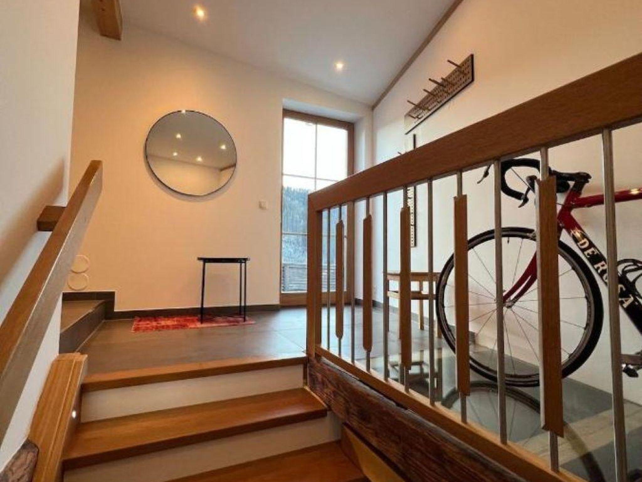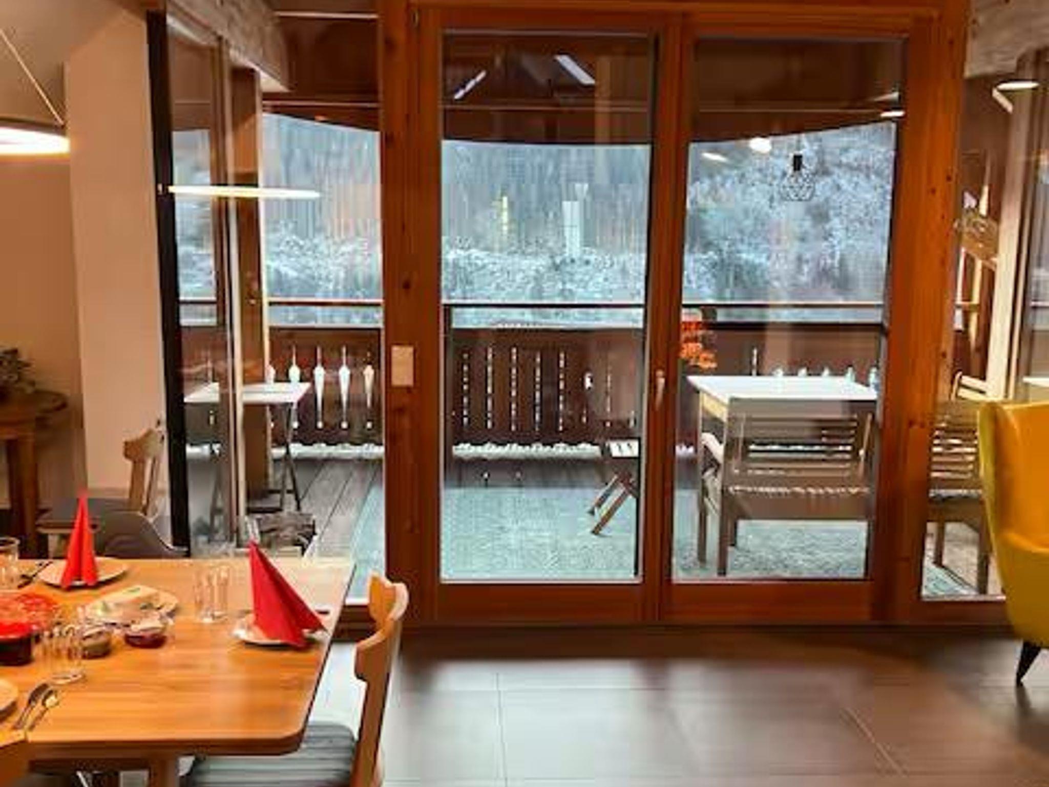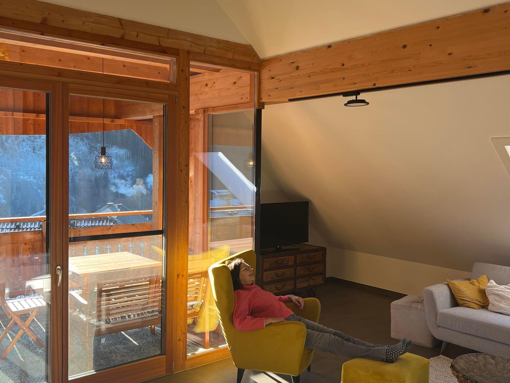 Die große Fensterfront der Wohnung öffnet den Blick ins satte Grün – oder auf die winterliche Stille schneebedeckter Bäume. Ein Ort, der das Hier & Jetzt fühlbar macht.