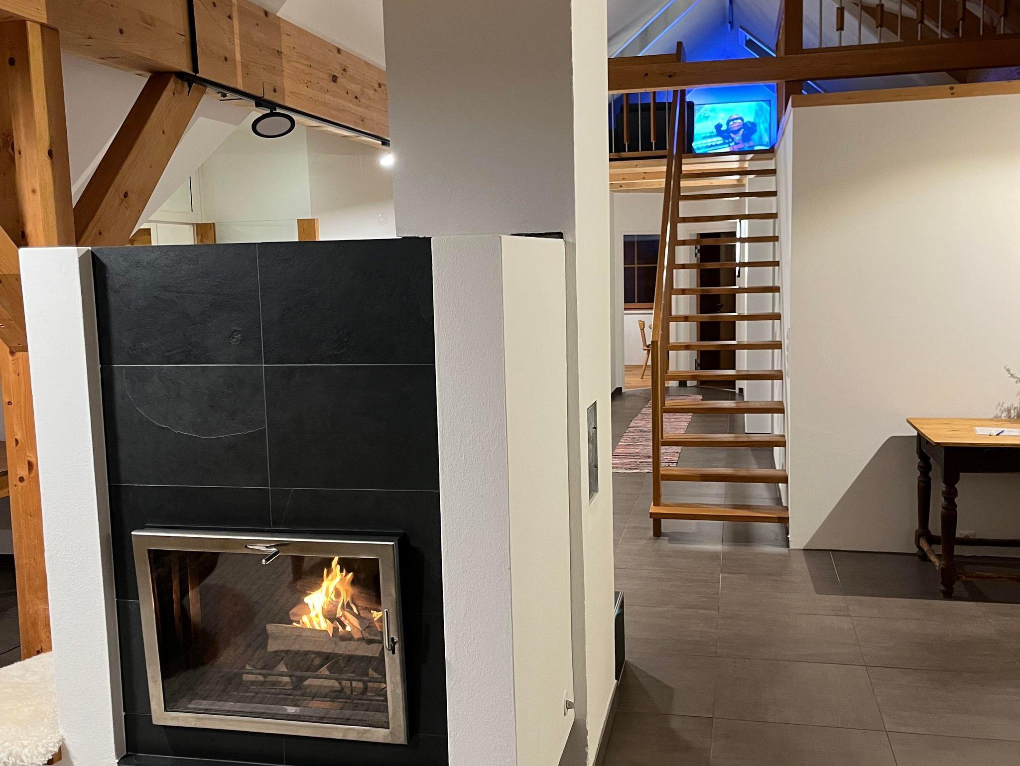 Wärme & Gemütlichkeit: Ein zentraler Kachelofen mit Glasfenster sorgt für wohlige Wärme und schafft eine ruhige, einladende Atmosphäre – ideal zum Lesen, Meditieren oder Zusammensitzen. Brennholz ist inklusive. Die Fußbodenheizung sorgt für sanfte, gleichmäßige Wärme.