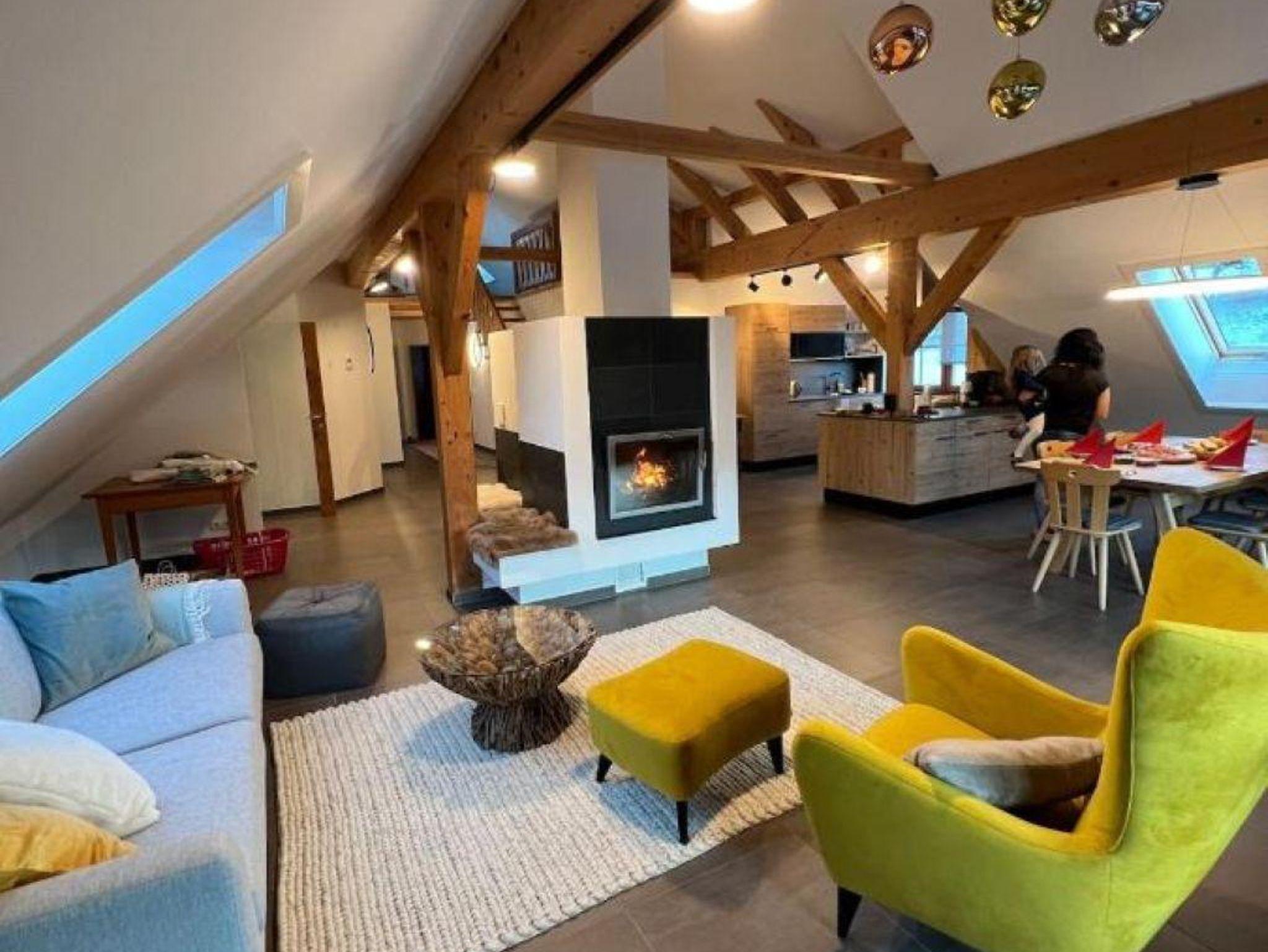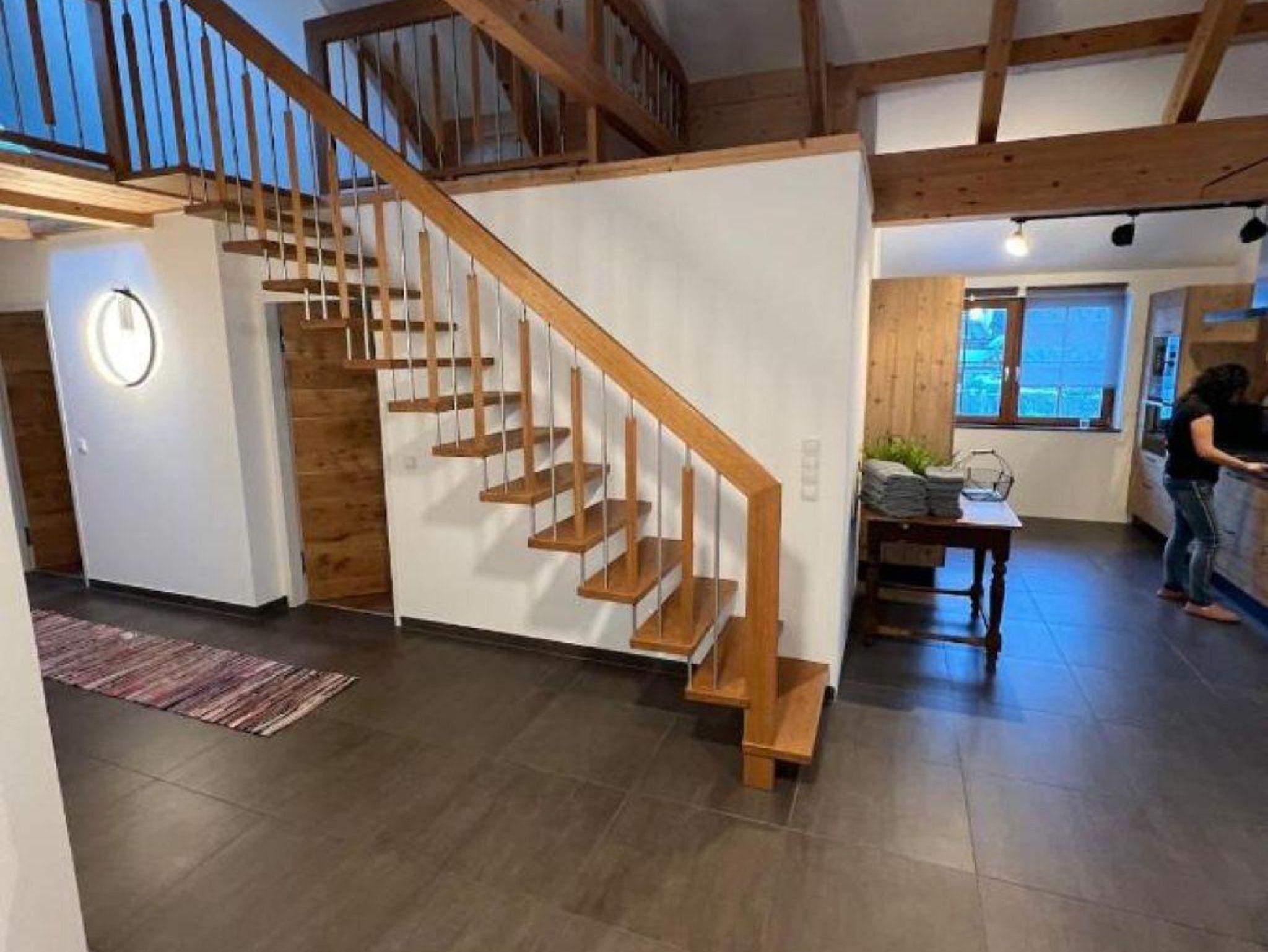 Deine Wohnung im Überblick – dein Kraftort zum Sein, Atmen & Auftanken Geräumigkeit & Ausstattung: Diese großzügige, lichtdurchflutete Dachgeschosswohnung befindet sich in einem über 300 Jahre alten, liebevoll restaurierten Haus. Sie bietet Platz für bis zu 6 Personen – mit vier Schlafzimmern (drei Doppelbetten, einer Doppel-Schlafcouch und einem Gitterbett), einer voll ausgestatteten Küche, Wohnzimmer, zwei Toiletten, Loggia und einer offenen Galerie. Das Bad verfügt über Dusche, Badewanne und Doppelwaschtisch.