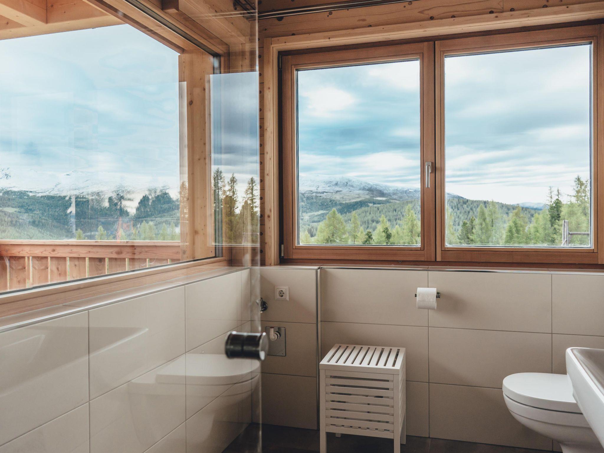 Die Almwohnung Bretthöhe im Erdgeschoss (66 m²) bietet ein komfortables Zuhause inmitten der Natur. Mit zwei Zirben - Schlafzimmern, einer Zirben - Küche und einem großen Wohnraum mit ausziehbarer Doppel-Schlafcouch und einer Panorama-Fensterbank erfüllt sie verschiedenste Bedürfnisse. Es gibt ein geräumiges Badezimmer mit Dusche, WC, Handtuchtrockner sowie ein zusätzliches WC. Auch der überdachte Balkon mit 17 m² ladet zum Verweilen ein.