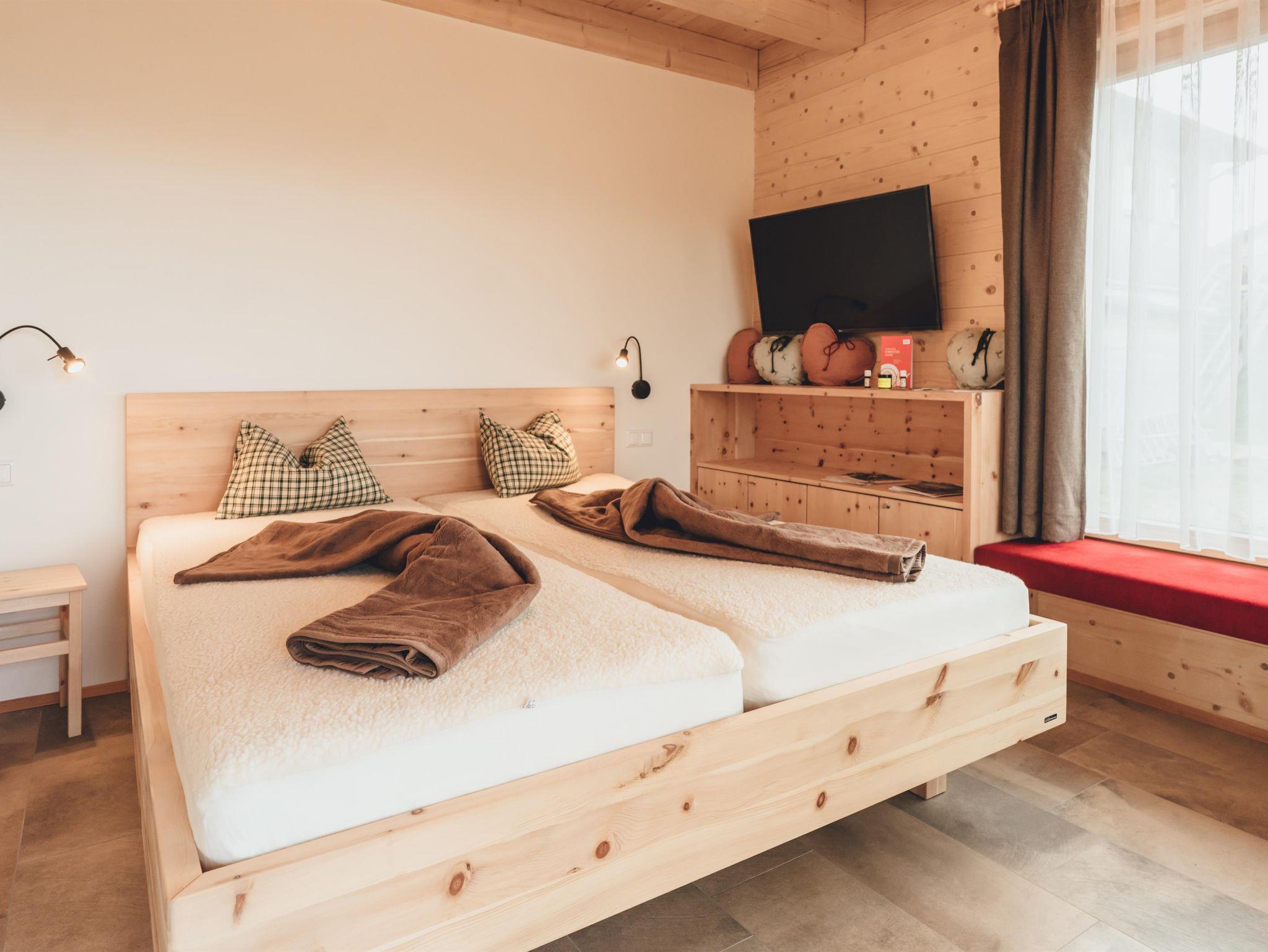 Unsere beliebte Sennerhütte mit einem Zirben-Doppelzimmer verspricht romantische Stunden auf der Alm. Vor allem für Paare ist diese Hütte ein bevorzugtes Refugium. Der private eingezäunte Garten mit Tisch, Bank und Liegestühlen bietet einen idyllischen Rückzugsort.