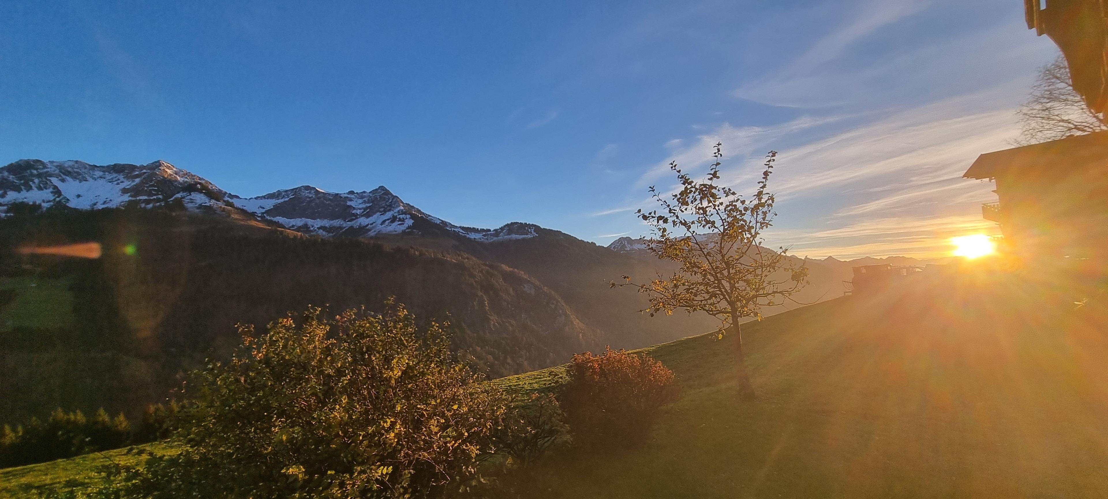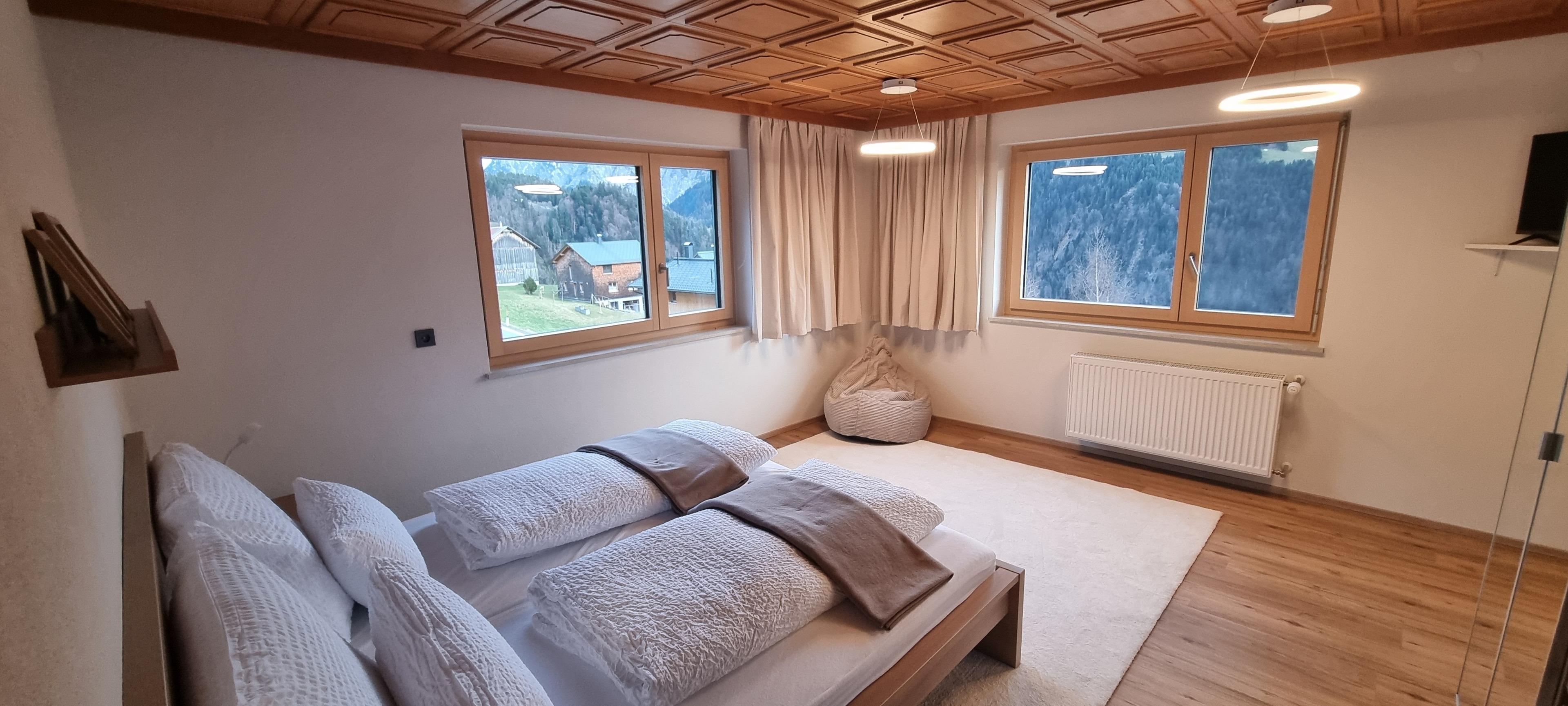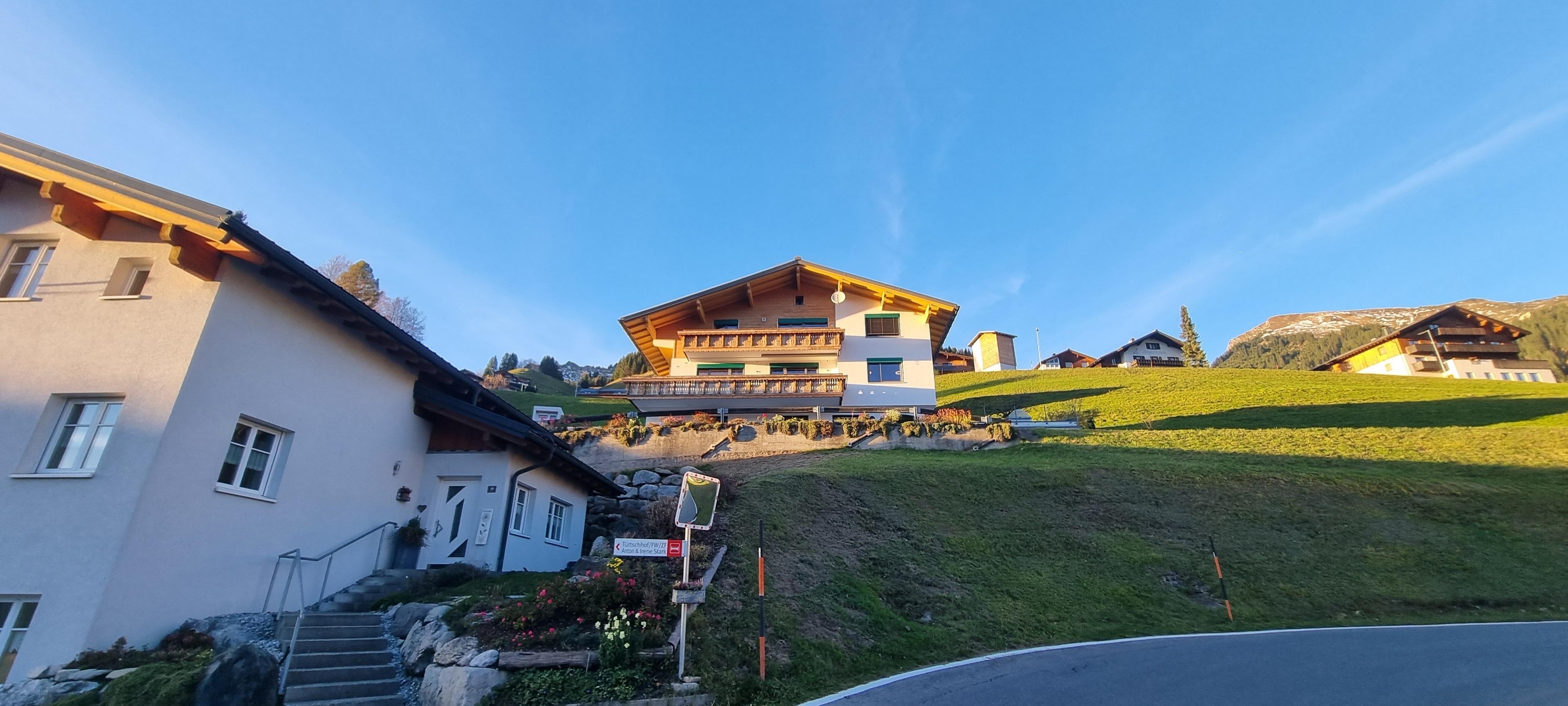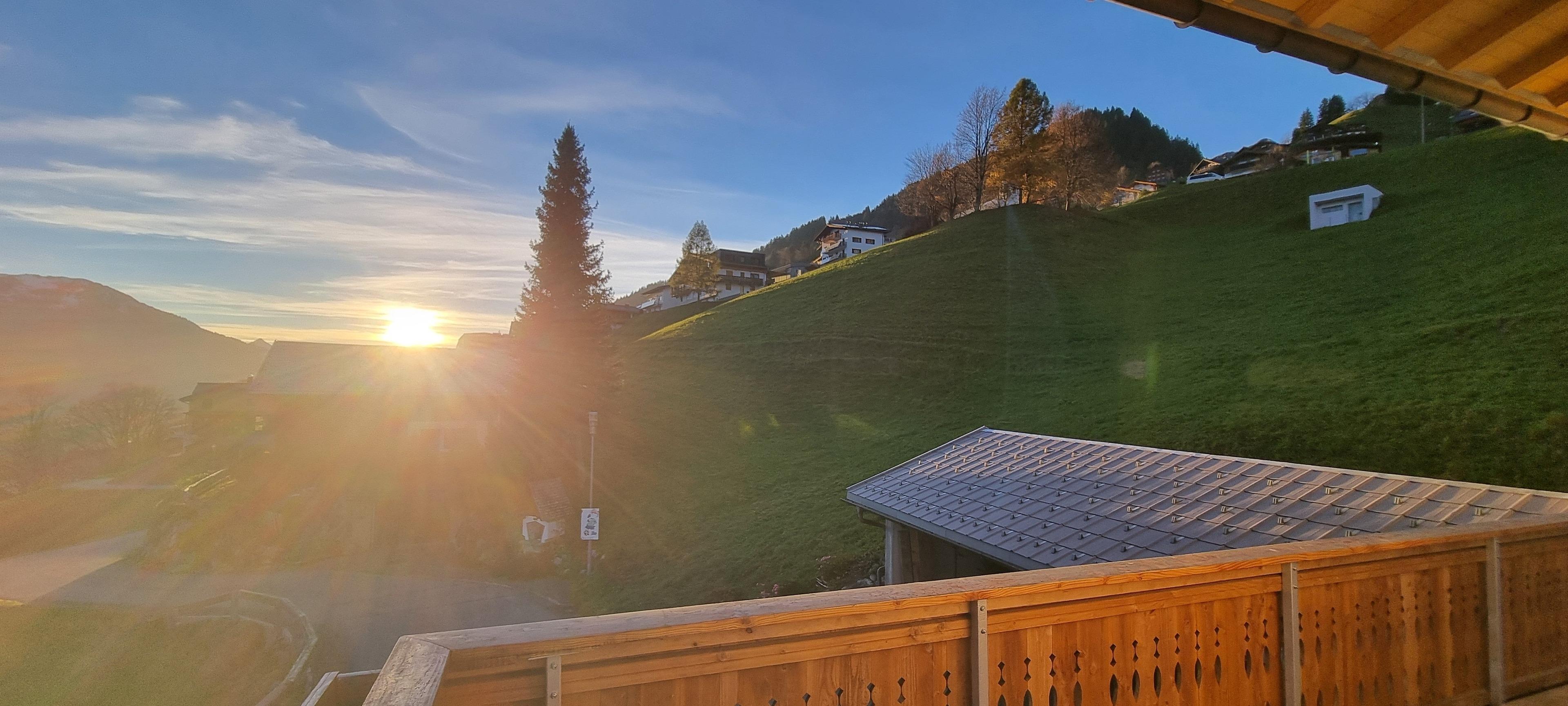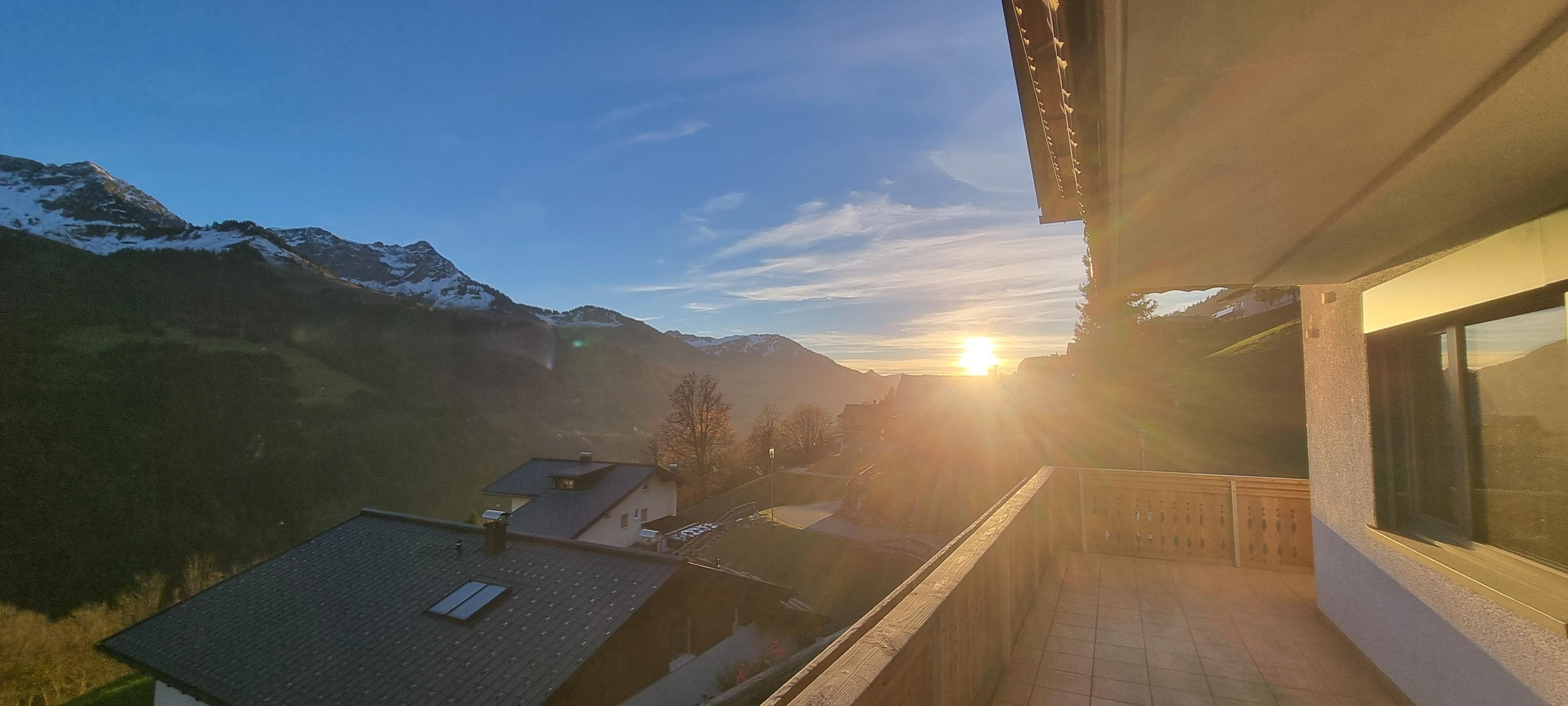 An der Grenze zwischen den Gemeinden Fontanella und Sonntag, auf rund 1.100 Metern Höhe, erwartet dich ein atemberaubender Ausblick auf die imposante Bergkette des Biosphärenparks Großes Walsertal.