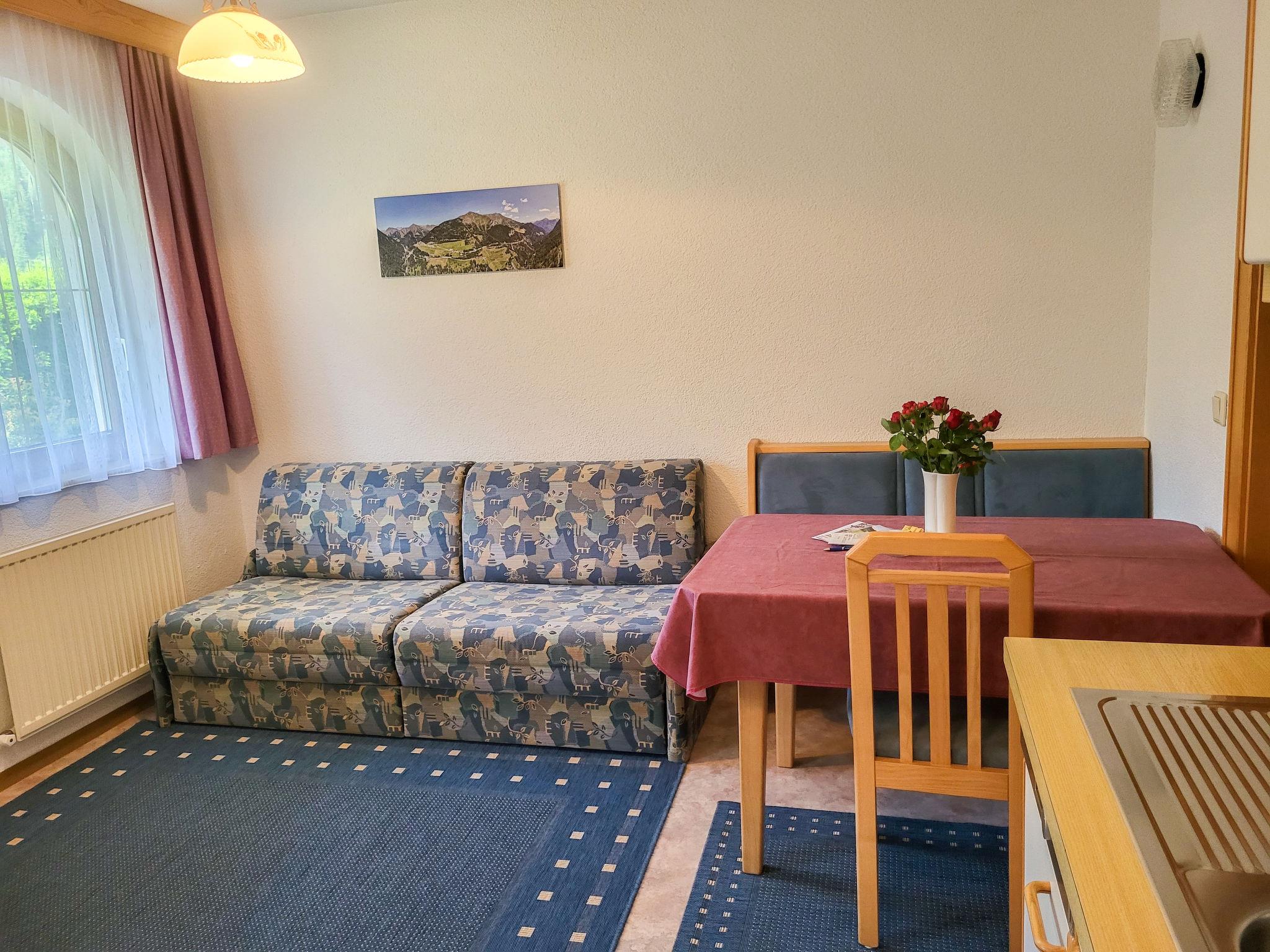 "Sonnenschein B", 2-room apartment 40 m2, on the lower ground floor. Object suitable for 2 adults + 2 children. Spacious and bright, comfortable and cosy furnishings: 1 double bedroom. Kitchen-/living room (4 hot plates, oven, dishwasher, toaster, kettle, microwave, electric coffee machine) with 1 double sofabed, dining table and satellite TV (flat screen). Shower/WC. Heating. Small patio. Terrace furniture. Please note: suitable for families. Non-smokers only. Maximum 1 pet/ dog allowed. Private entrance.
