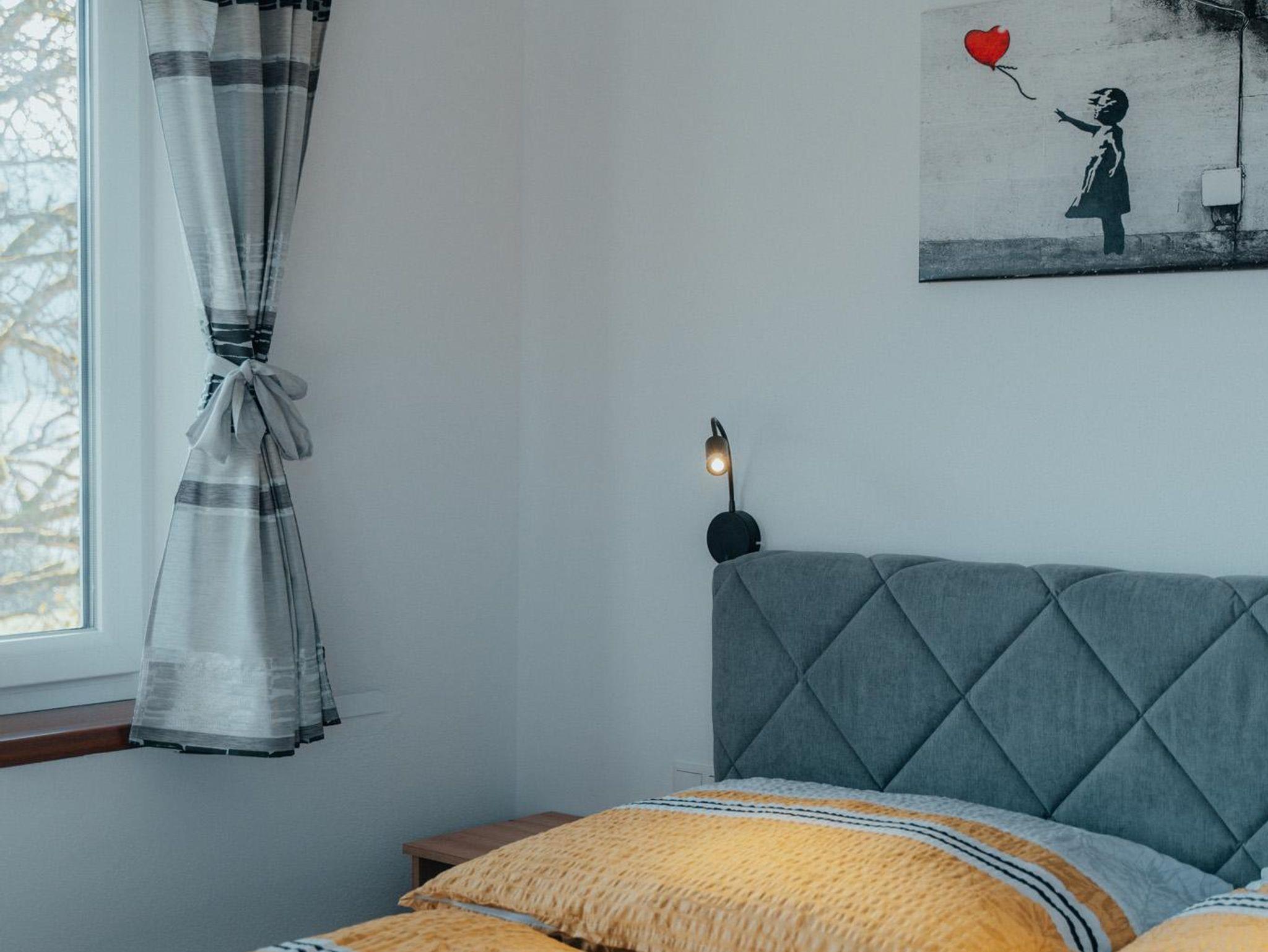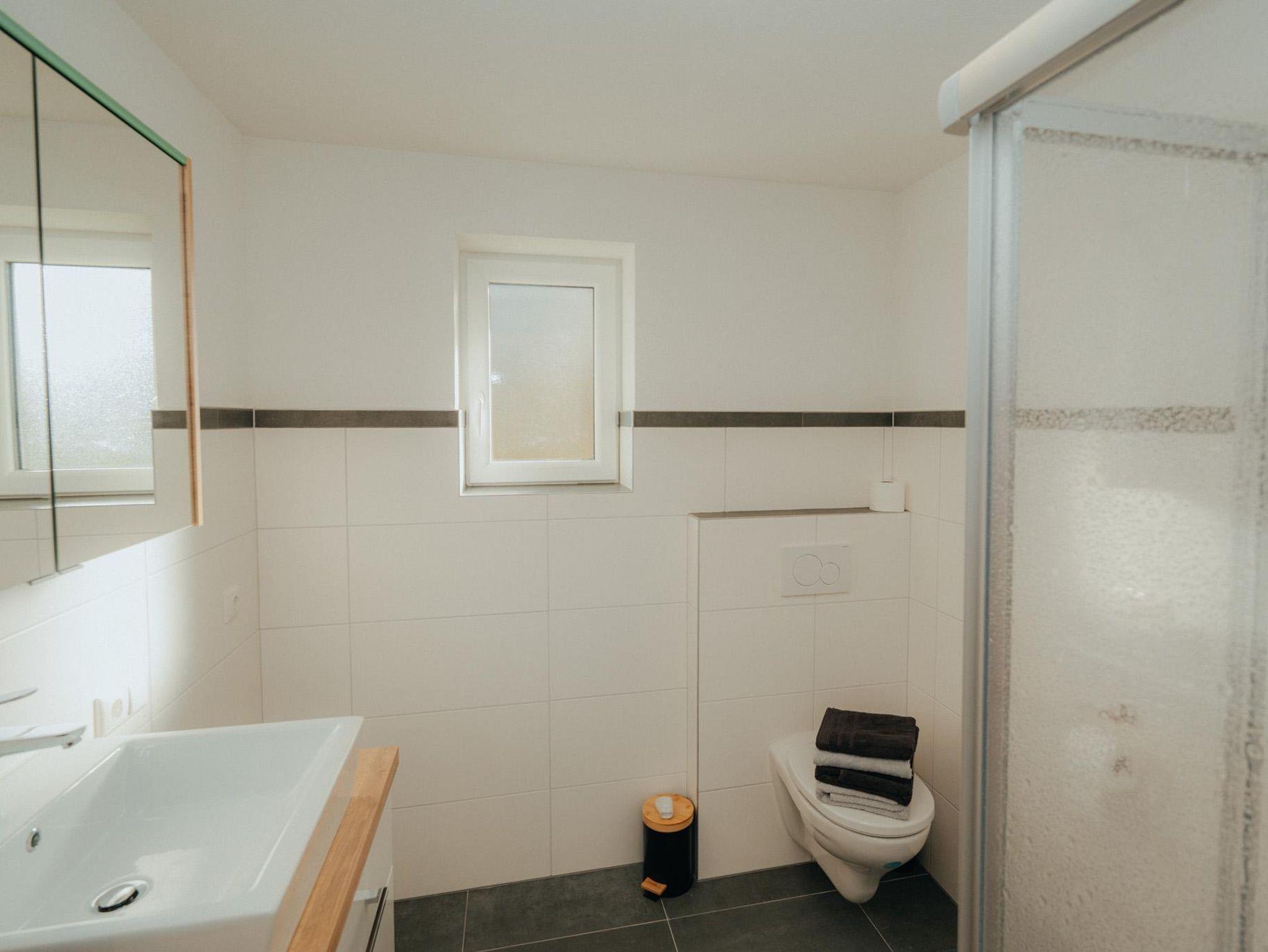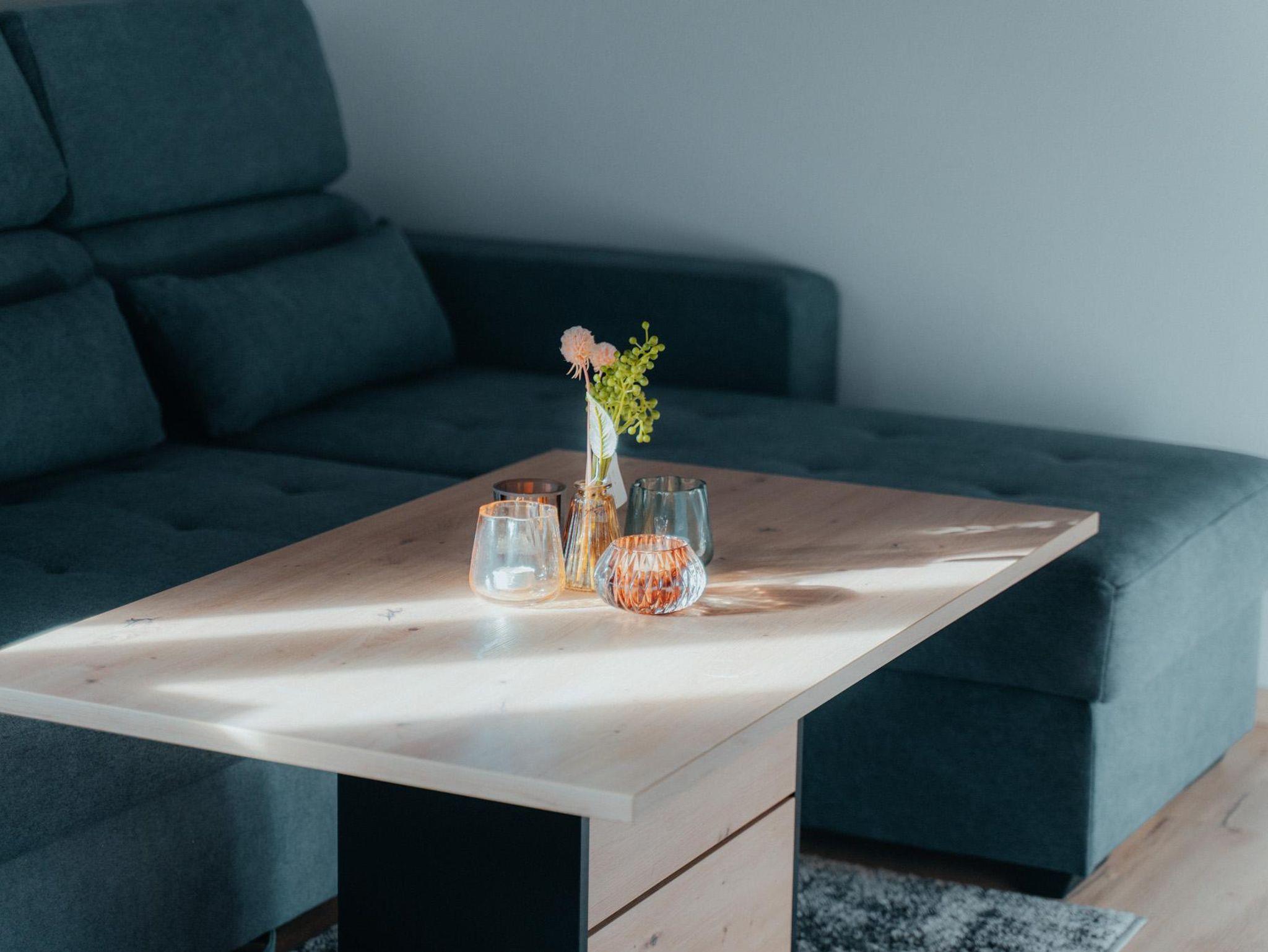 Diese geräumige Wohnung bietet 55m² Wohnfläche und ist in zwei Schlafzimmer aufgeteilt. Das erste Schlafzimmer verfügt über ein komfortables Boxspringbett und einen geräumigen Kleiderschrank. Das zweite Schlafzimmer ist als Kinderzimmer eingerichtet und bietet eine Schlafcouch sowie einen weiteren Kleiderschrank. Die Wohnküche ist mit einer Garderobe, einer gemütlichen Wohnlandschaft und einer Wohnwand inklusive Fernseher ausgestattet. Die Küche selbst ist voll ausgestattet und verfügt über einen E-Herd, einen Kühlschrank, einen Geschirrspüler und einen Dunstabzug. Das Badezimmer bietet eine Dusche, ein WC und einen Handtuchtrockner. Ein besonderes Highlight ist die Fußbodenheizung, die in der gesamten Wohnung für angenehme Wärme sorgt. Zudem gibt es einen großen Balkon mit Sitzmöglichkeiten, auf dem man die frische Luft genießen kann.