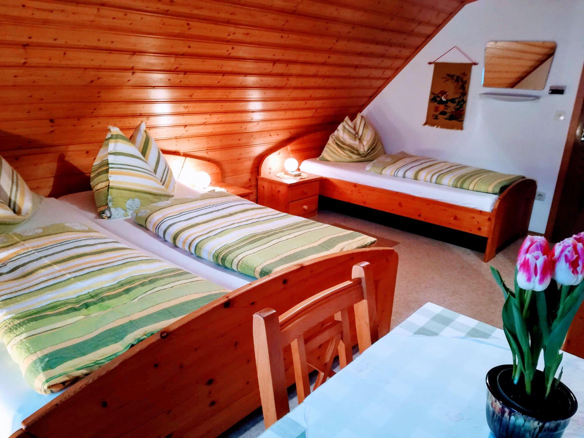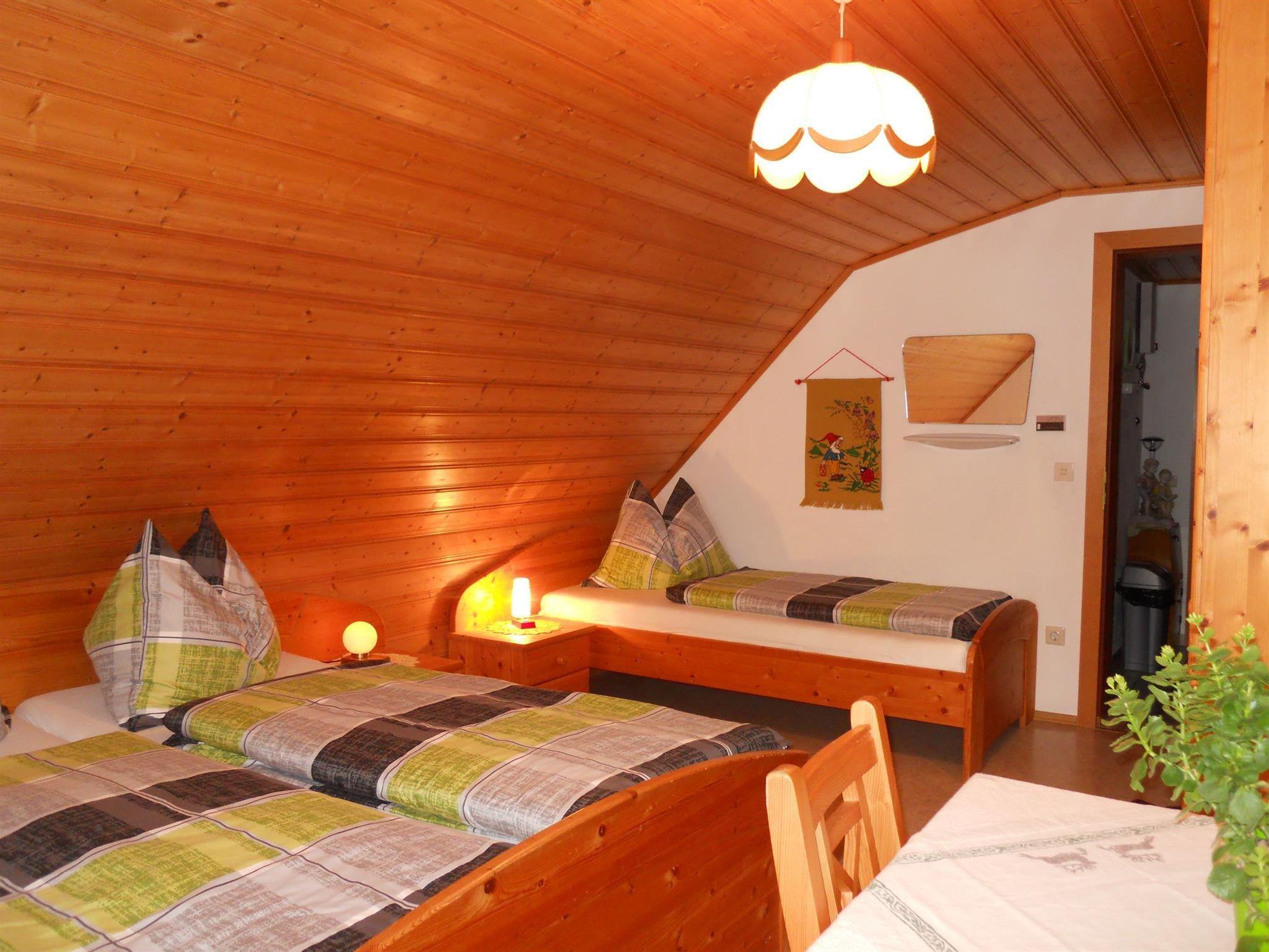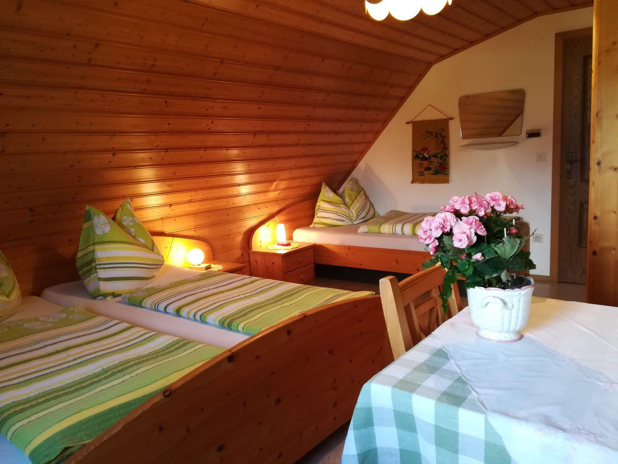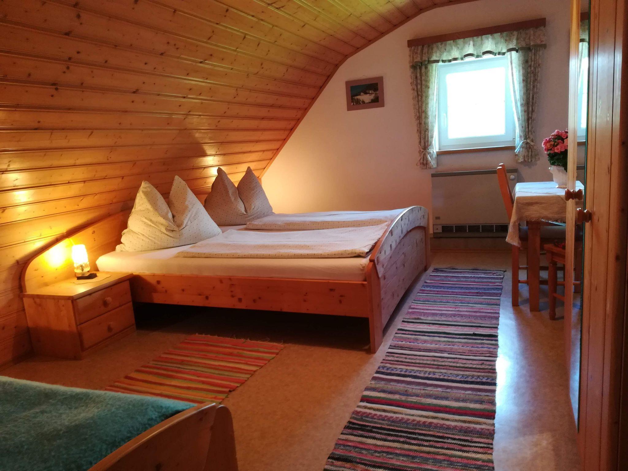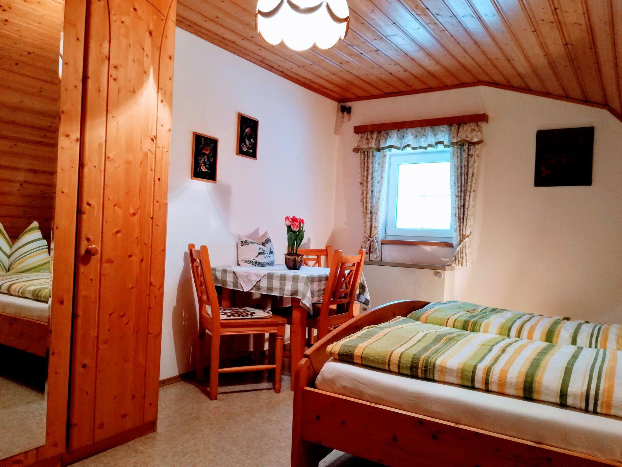 Ob Groß oder Klein, jeder findet seinen Lieblingsplatz in den 2 Zweibettzimmern oder den 2 Dreibettzimmern. Herrlich, bei jeden Zimmerfenster - dieser Ausblick, dieses traumhaft schöne Bergpanorama, die frische Bergluft genießen, der Sonne zusehen, wie sie langsam über den Berggipfeln hervor kommt, die weidenden Rinder auf den Wiesen und ab und zu kann man auch Rehe beobachten. Der Alltagshektik entfliehen und Ruhe finden.