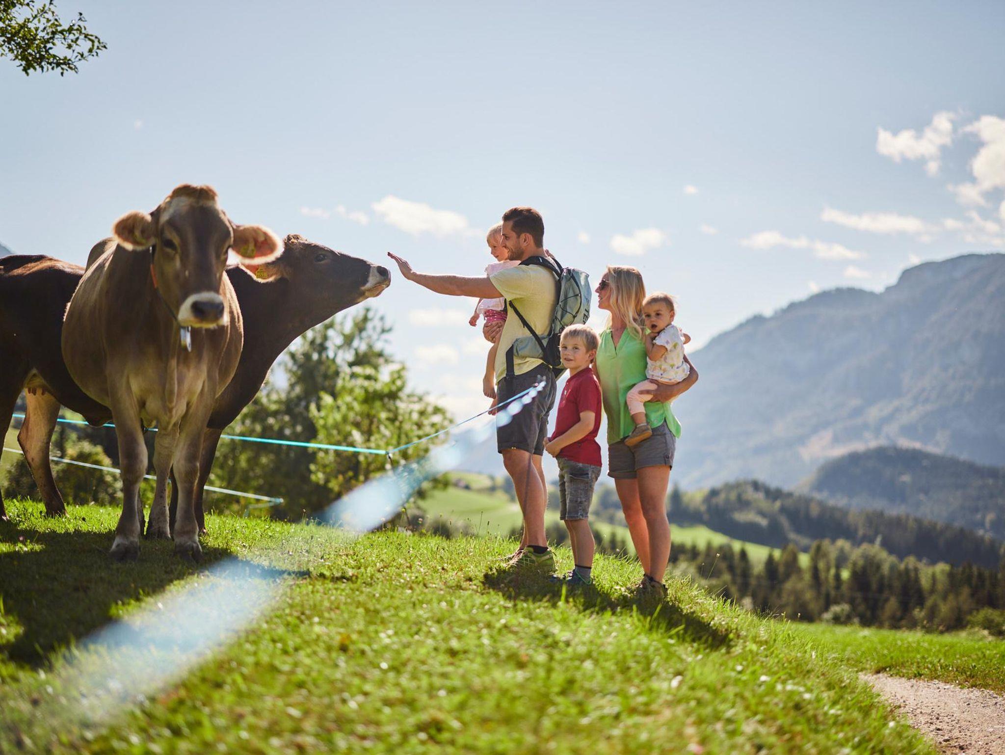 Muh und Milch für dich - Kinderbauernhof Dansbach Griaß eich am Dansbach! Schen, dass da seits! Kummst glei mit in unseren Stall. Unsere Kühe warten schon auf Euch! Werde wieder Kind und erlebe ein Kinderlachen im Stall. Füttern, streicheln, zu schauen - jede Hilfe ist Willkommen! Oder? Melke dir beste Biomilch von deiner Lieblingskuh! Muh und Milch für Dich. So wie Du es magst. Deine Eltern? Auf dem Hausbankerl genießen sie die Sonnenstrahlen. Spür die Kraft der Natur und das Glück des einfachen Lebens! Runterkommen und sich selbst wieder finden. Freiheit genießen!Durchatmen! Dansbach Raus aus dem Stall? Mitten in unsere herrliche Natur. Unverfälscht im Nationalpark Kalkalpen. Wir schätzen das aktive Leben mit und in der Natur. Was macht glücklicher als die eigenen Grenzen zu überwinden? Beim Schluchting mit Ferdinand - das pure Erlebnis in einer einsamen, idyllischen Schlucht, mit kristallklarem Bergwasser seinen Mut zu messen oder doch das innere Gleichgewicht beim Balancieren zwischen zwei alten Birnbäumen finden. Einfach Stolz auf sich sein. Was immer es ist. Tauch ein in unser Leben! Auf Muh und Milch! Die Bauernsleut Veronika und Ferdinand mit Jakob und Simon!