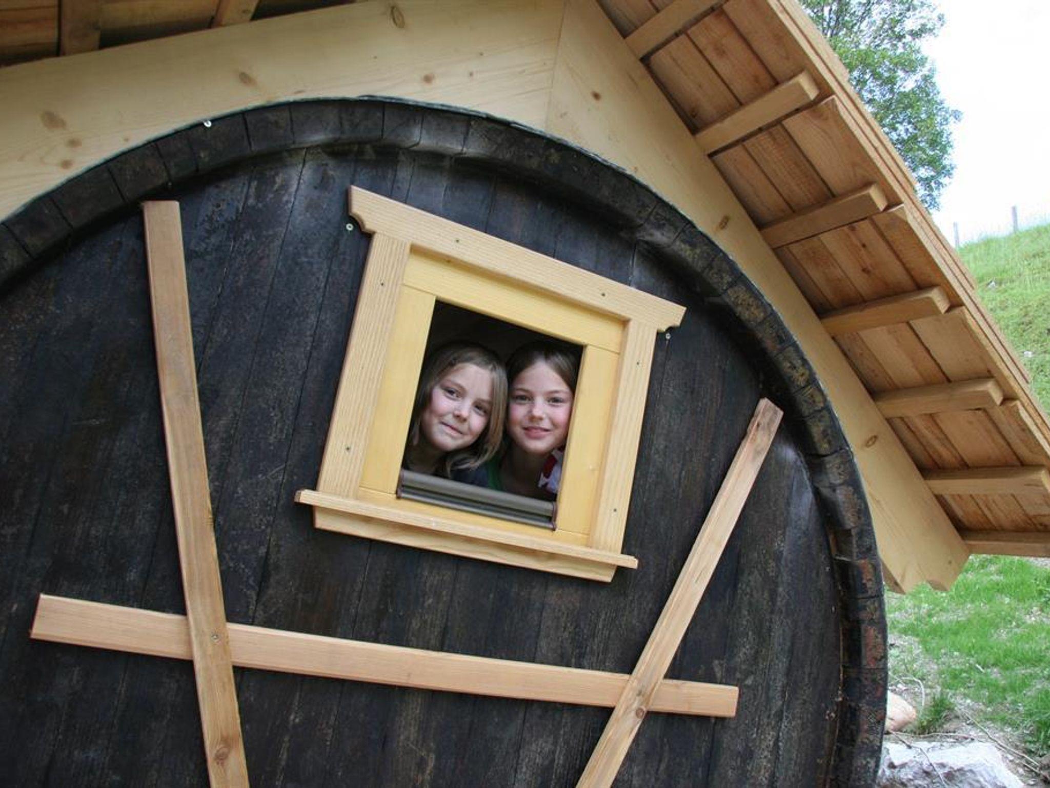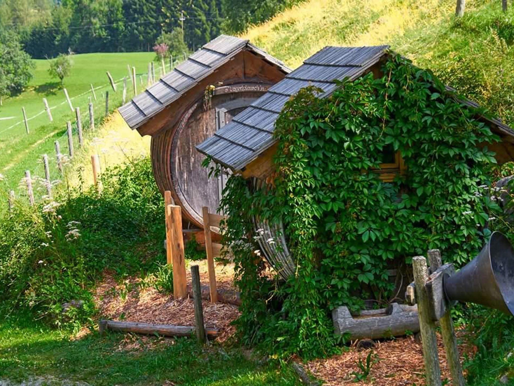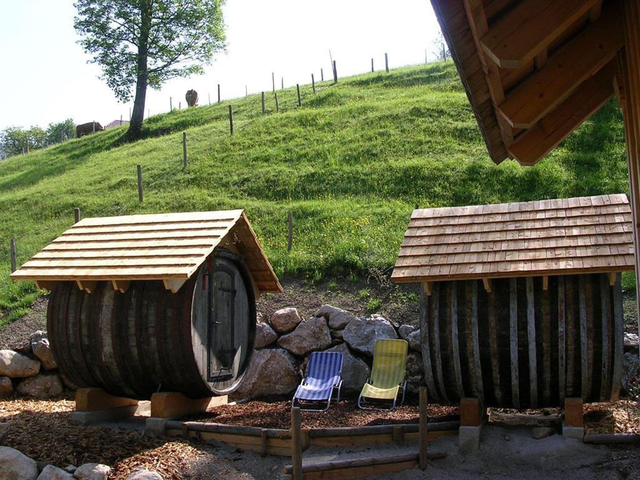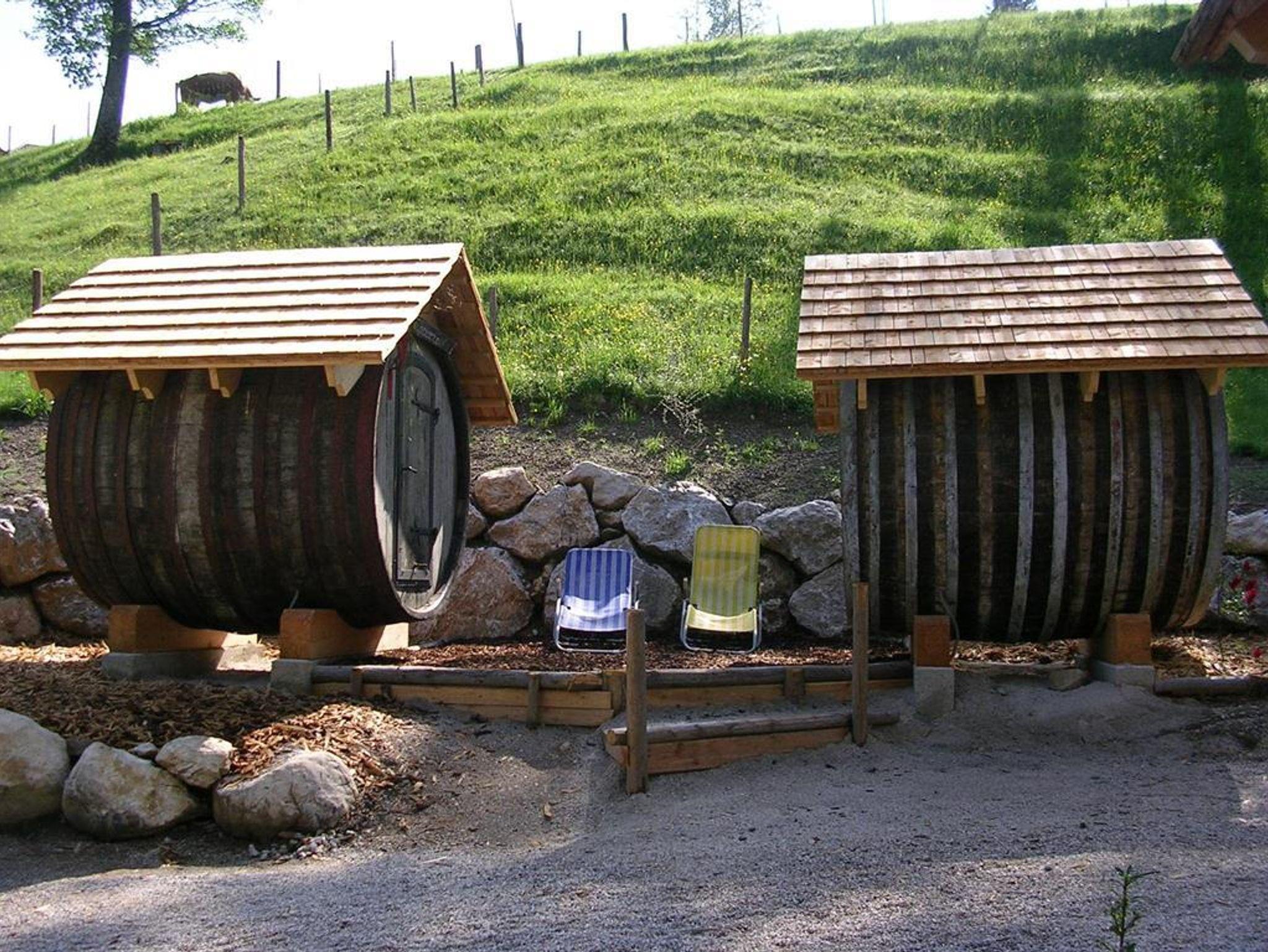 Vogerlplauschen und Bacherlrauschen - das Schlaferlebnis der besonderen Art. Das ist bestens geeignet für verschiedene Anlässe als Geschenk oder Gutschein oder wenn man einmal etwas anderes machen möchte mit der Familie oder zu zweit. Es gibt 2 Holzfässer die ca. 150 m vom Bauernhaus am Barfußweg stehen. Verpflegung gibt es natürlich in der Jausnstube, für die Katzenwäsche gibt es den Bach und die ausgiebige Dusche gibt es in der Sauna am Hof.
