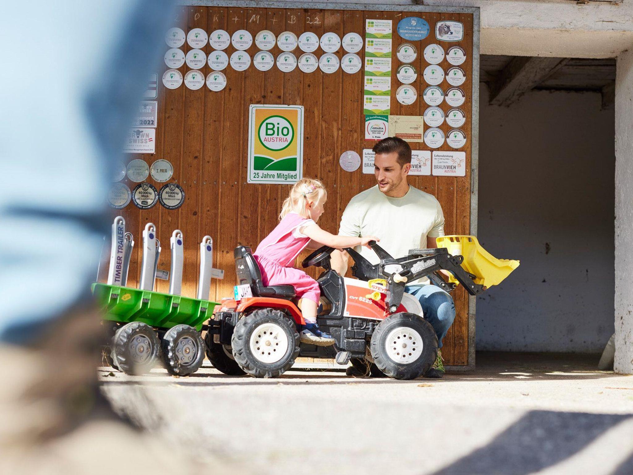 Muh und Milch für dich - Kinderbauernhof Dansbach Griaß eich am Dansbach! Schen, dass da seits! Kummst glei mit in unseren Stall. Unsere Kühe warten schon auf Euch! Werde wieder Kind und erlebe ein Kinderlachen im Stall. Füttern, streicheln, zu schauen - jede Hilfe ist Willkommen! Oder? Melke dir beste Biomilch von deiner Lieblingskuh! Muh und Milch für Dich. So wie Du es magst. Deine Eltern? Auf dem Hausbankerl genießen sie die Sonnenstrahlen. Spür die Kraft der Natur und das Glück des einfachen Lebens! Runterkommen und sich selbst wieder finden. Freiheit genießen!Durchatmen! Dansbach Raus aus dem Stall? Mitten in unsere herrliche Natur. Unverfälscht im Nationalpark Kalkalpen. Wir schätzen das aktive Leben mit und in der Natur. Was macht glücklicher als die eigenen Grenzen zu überwinden? Beim Schluchting mit Ferdinand - das pure Erlebnis in einer einsamen, idyllischen Schlucht, mit kristallklarem Bergwasser seinen Mut zu messen oder doch das innere Gleichgewicht beim Balancieren zwischen zwei alten Birnbäumen finden. Einfach Stolz auf sich sein. Was immer es ist. Tauch ein in unser Leben! Auf Muh und Milch! Die Bauernsleut Veronika und Ferdinand mit Jakob und Simon!